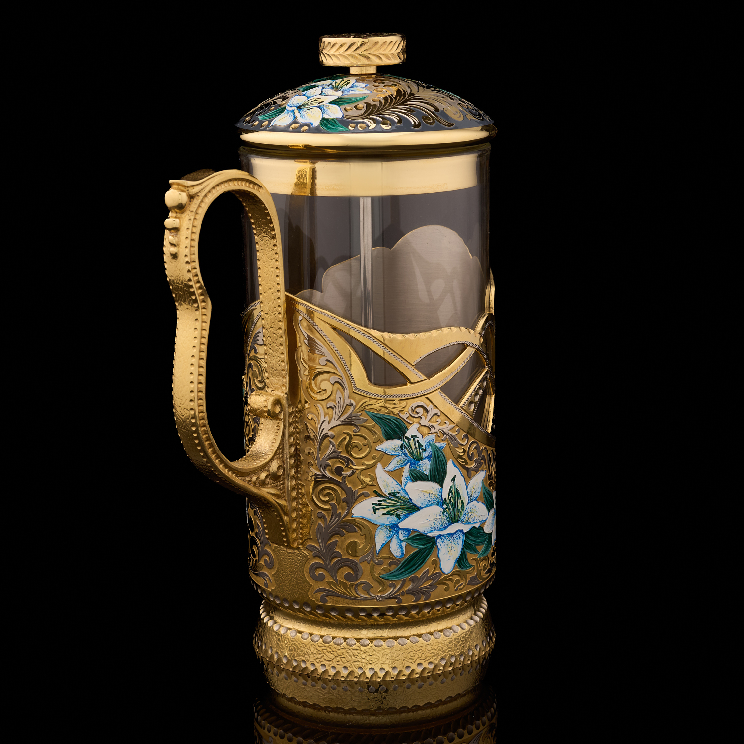 Чайный набор с френч-прессом и подстаканниками "Малахит". Златоуст
