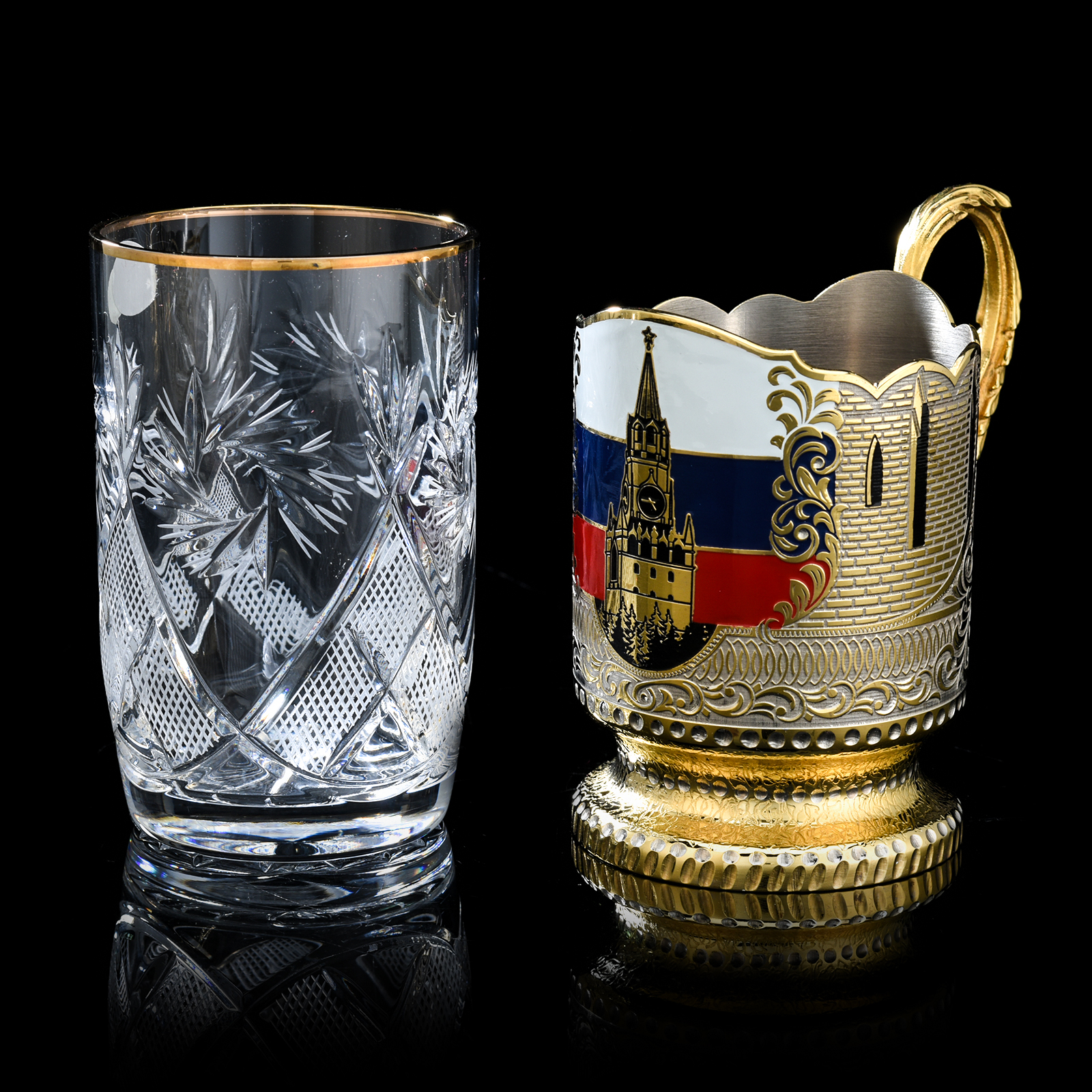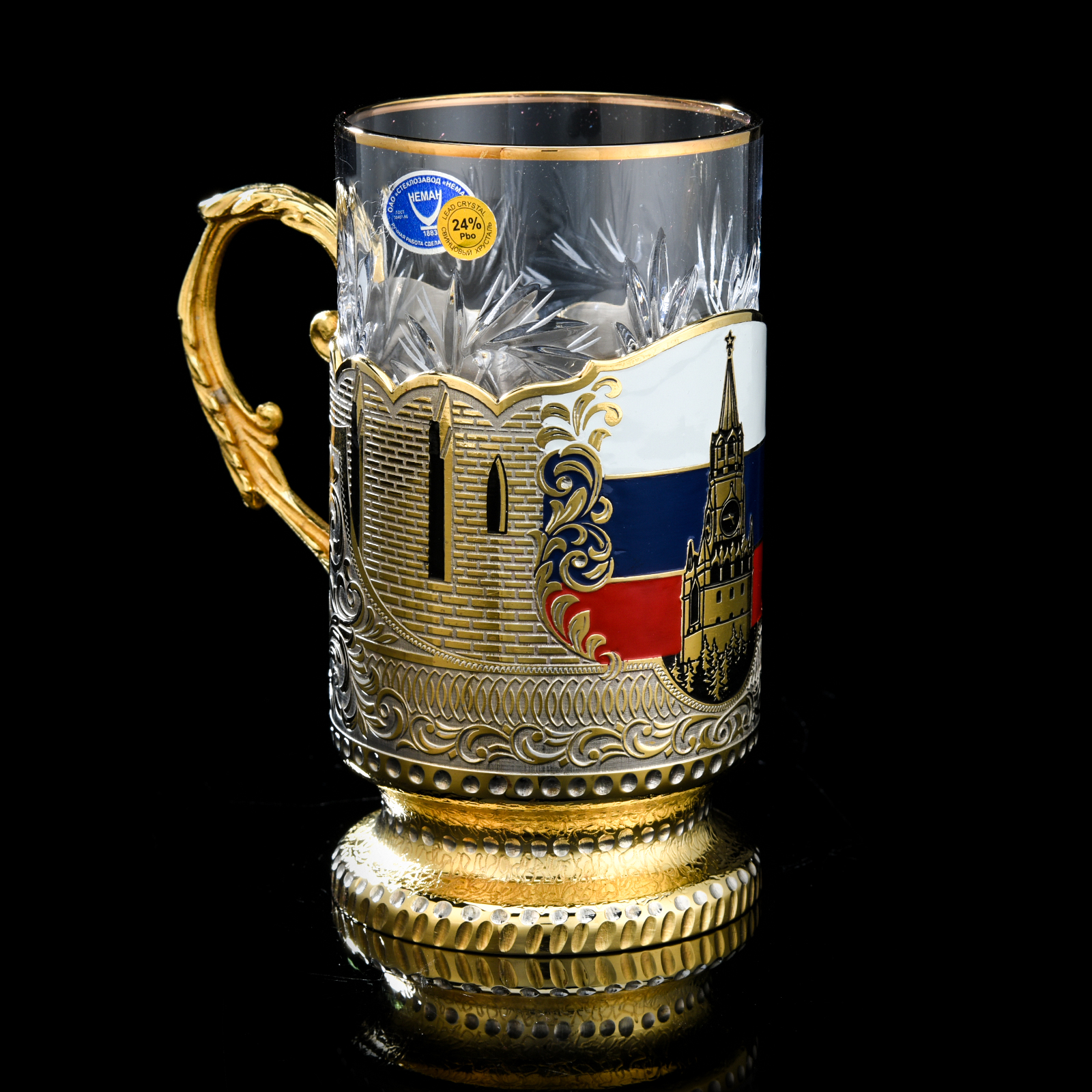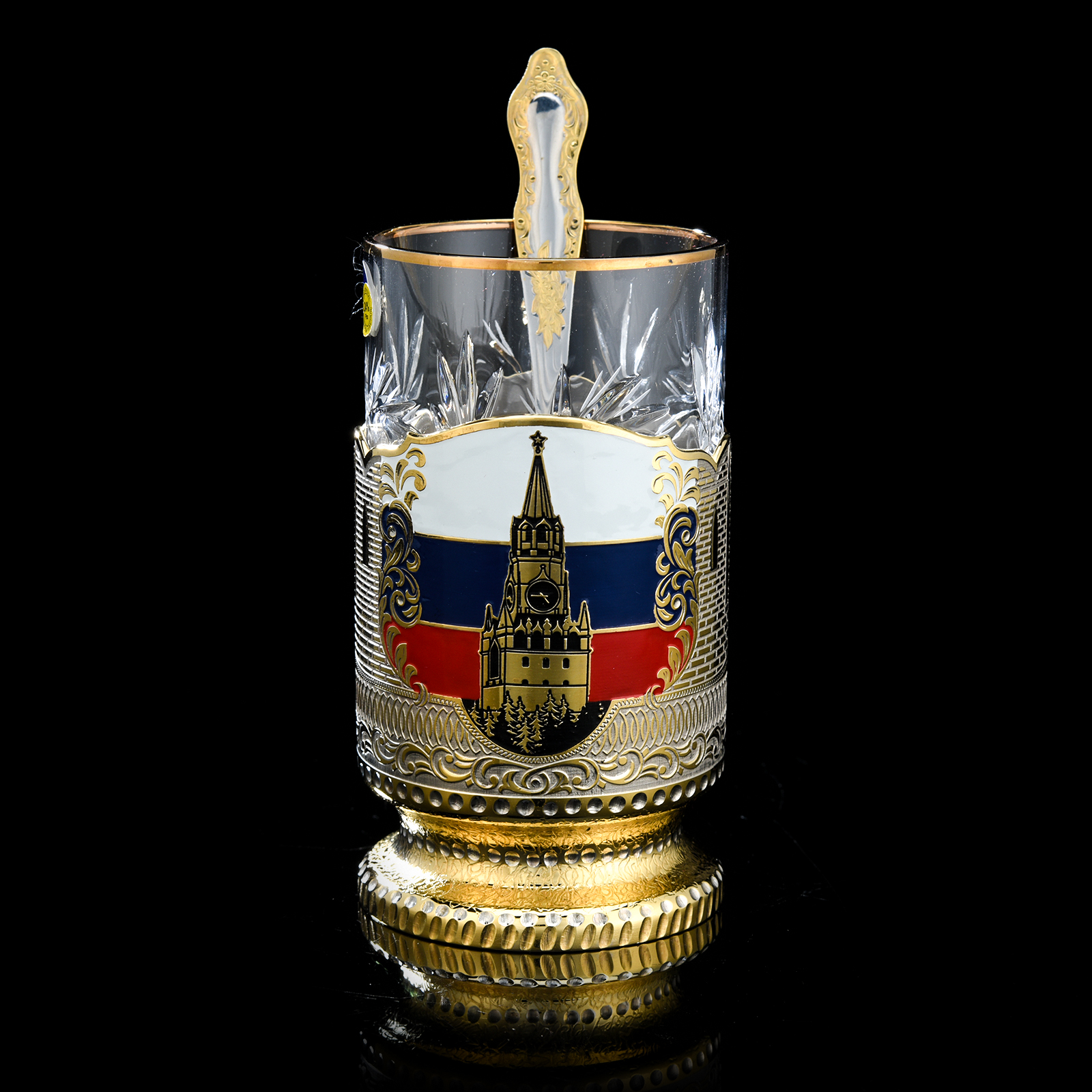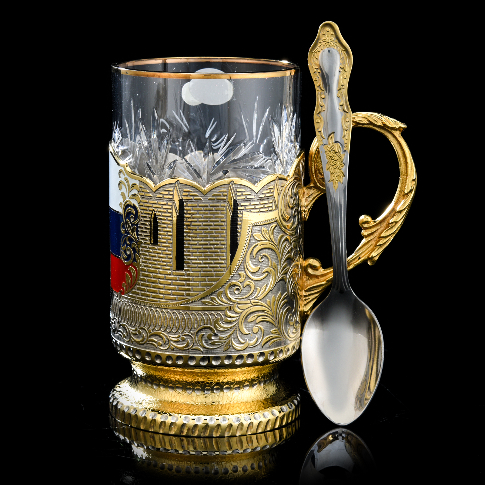 Подстаканник "Кремль". Златоуст.Материалы: латунь, никель, золото 999,9*, эмаль.