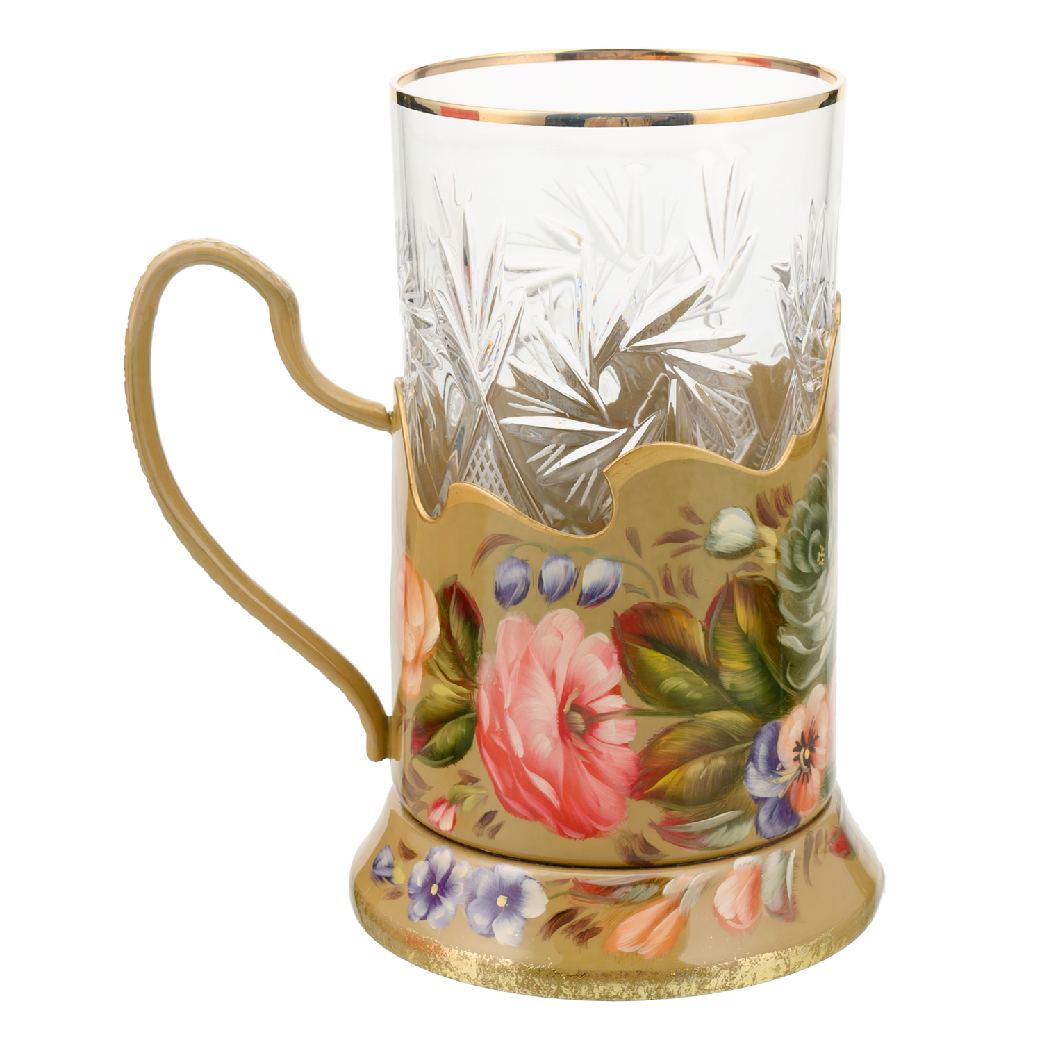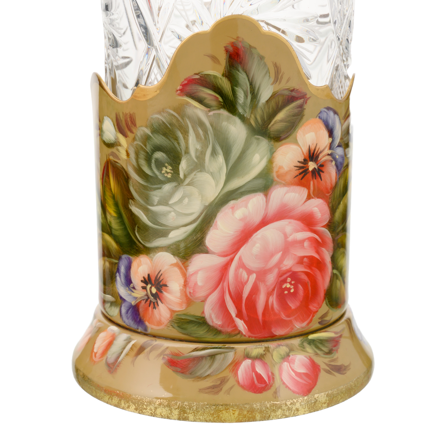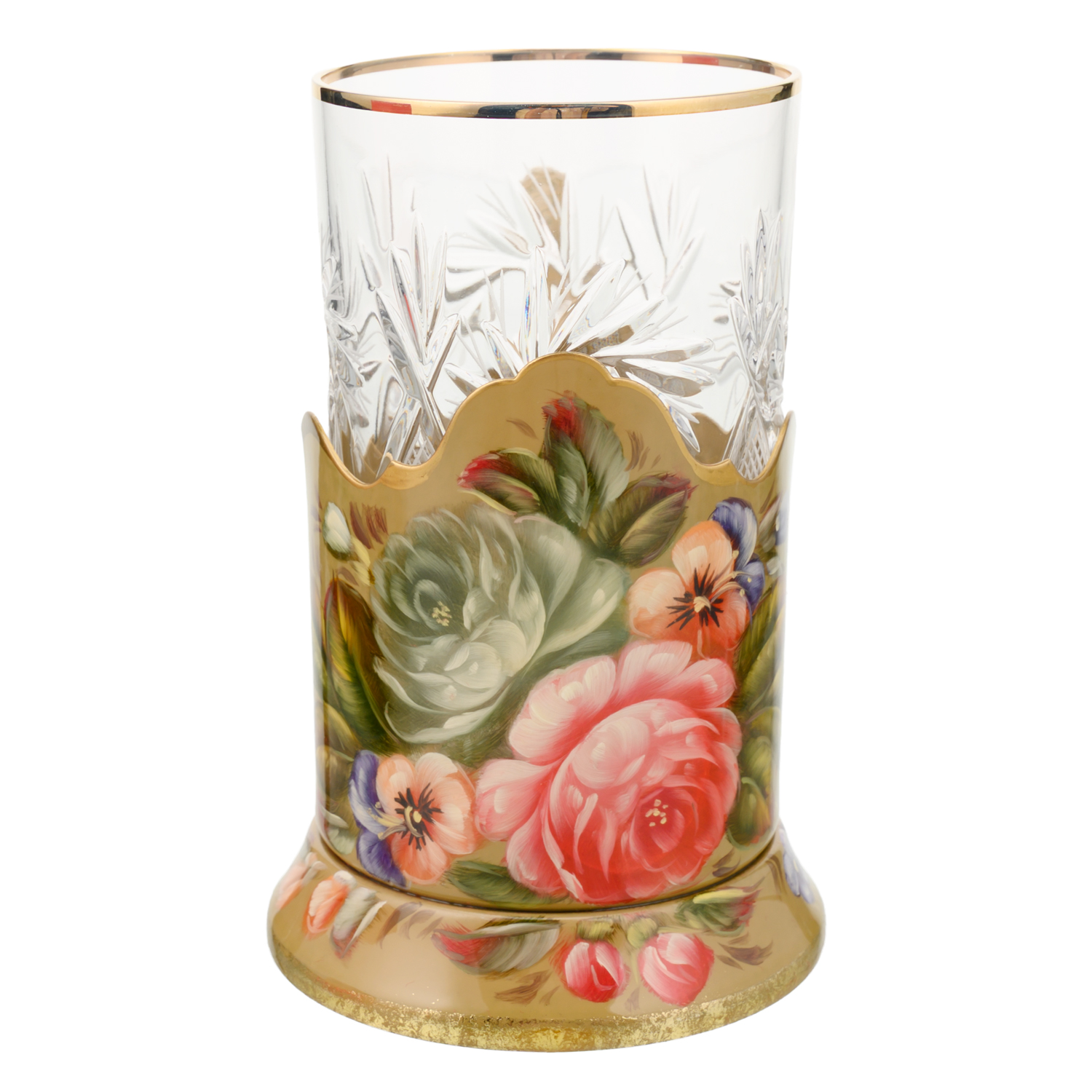 Подстаканник с ручной росписью. Жостово.Материалы: латунь, краски, лак.