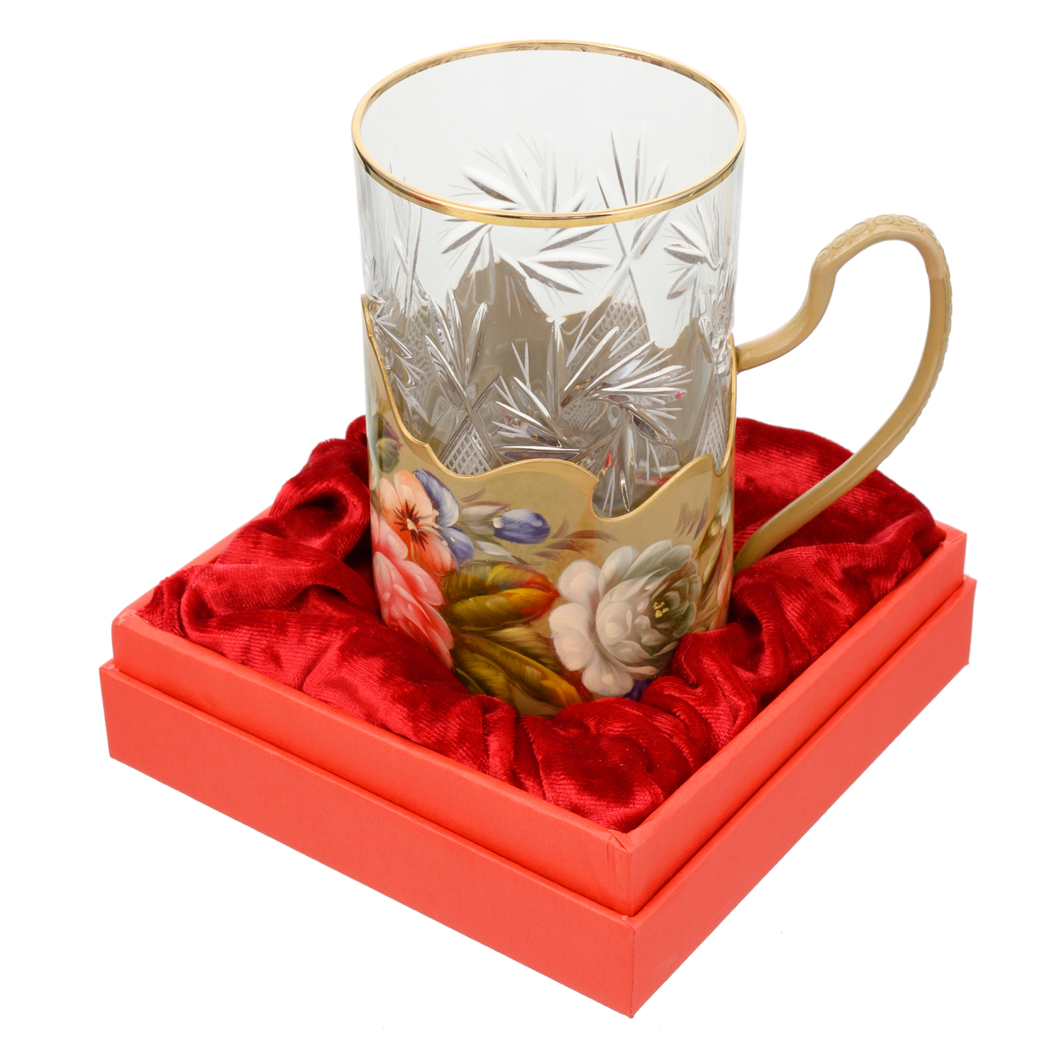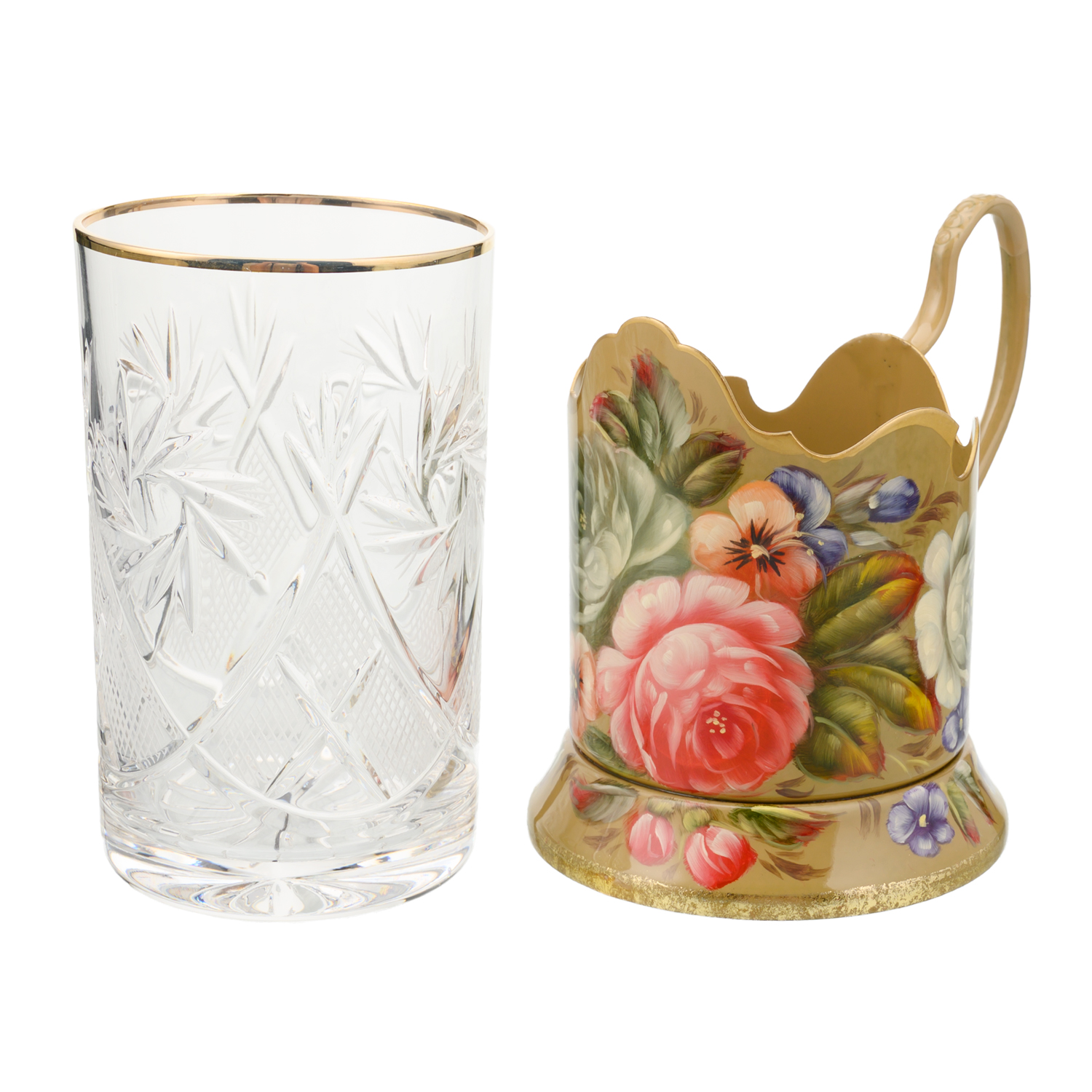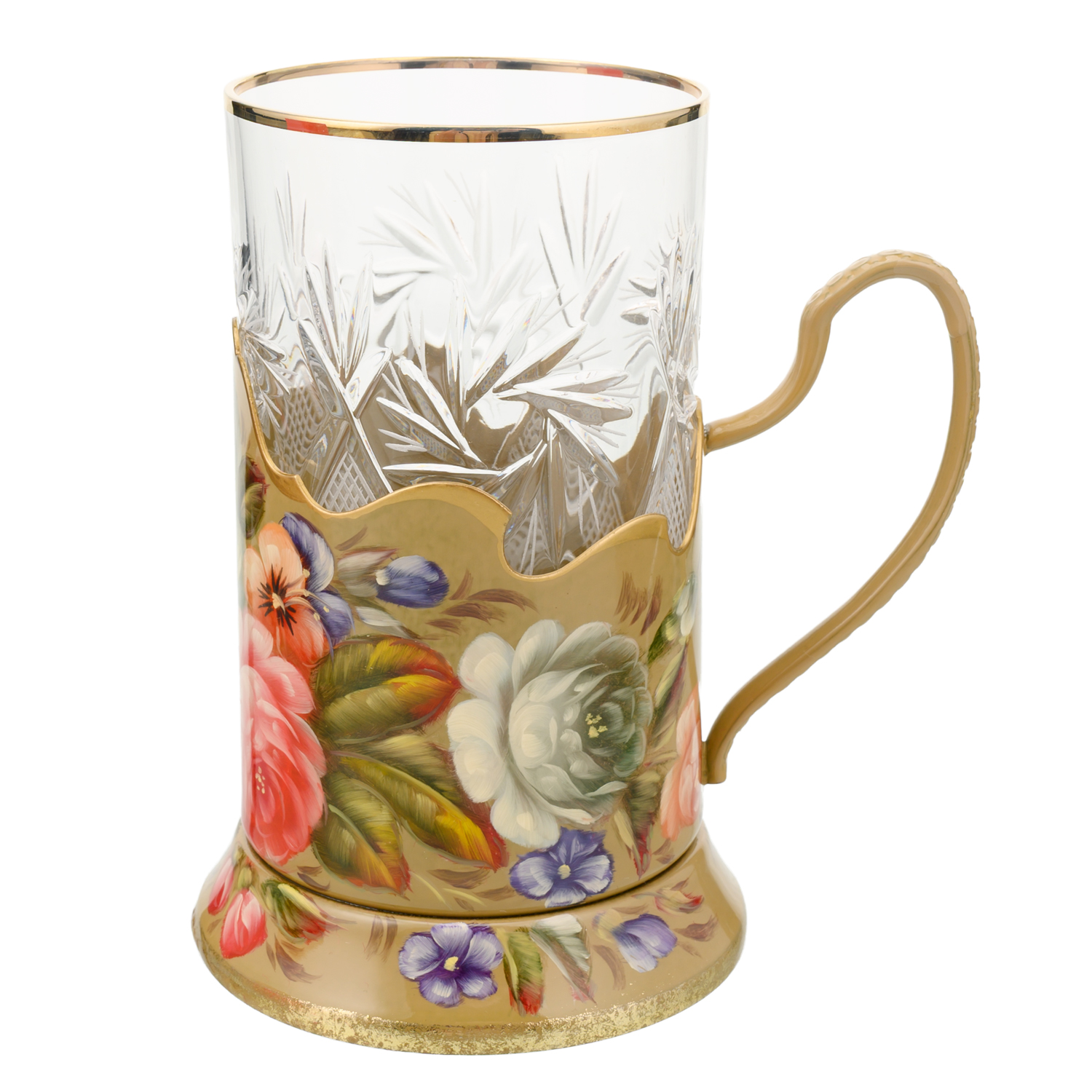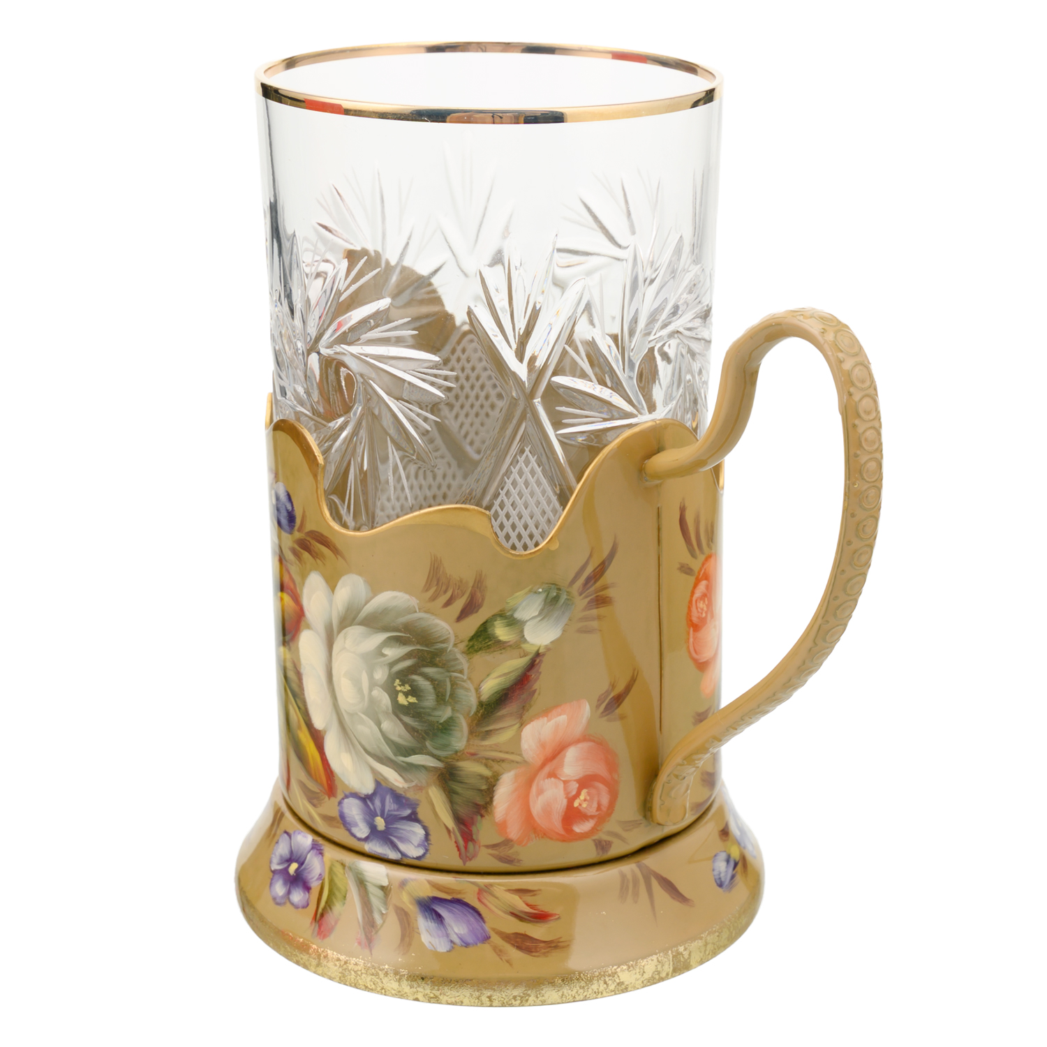 Подстаканник с ручной росписью. Жостово.Материалы: латунь, краски, лак.