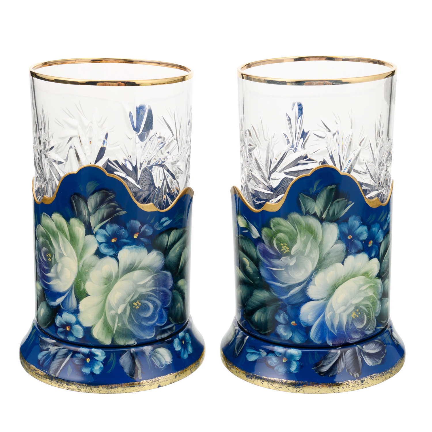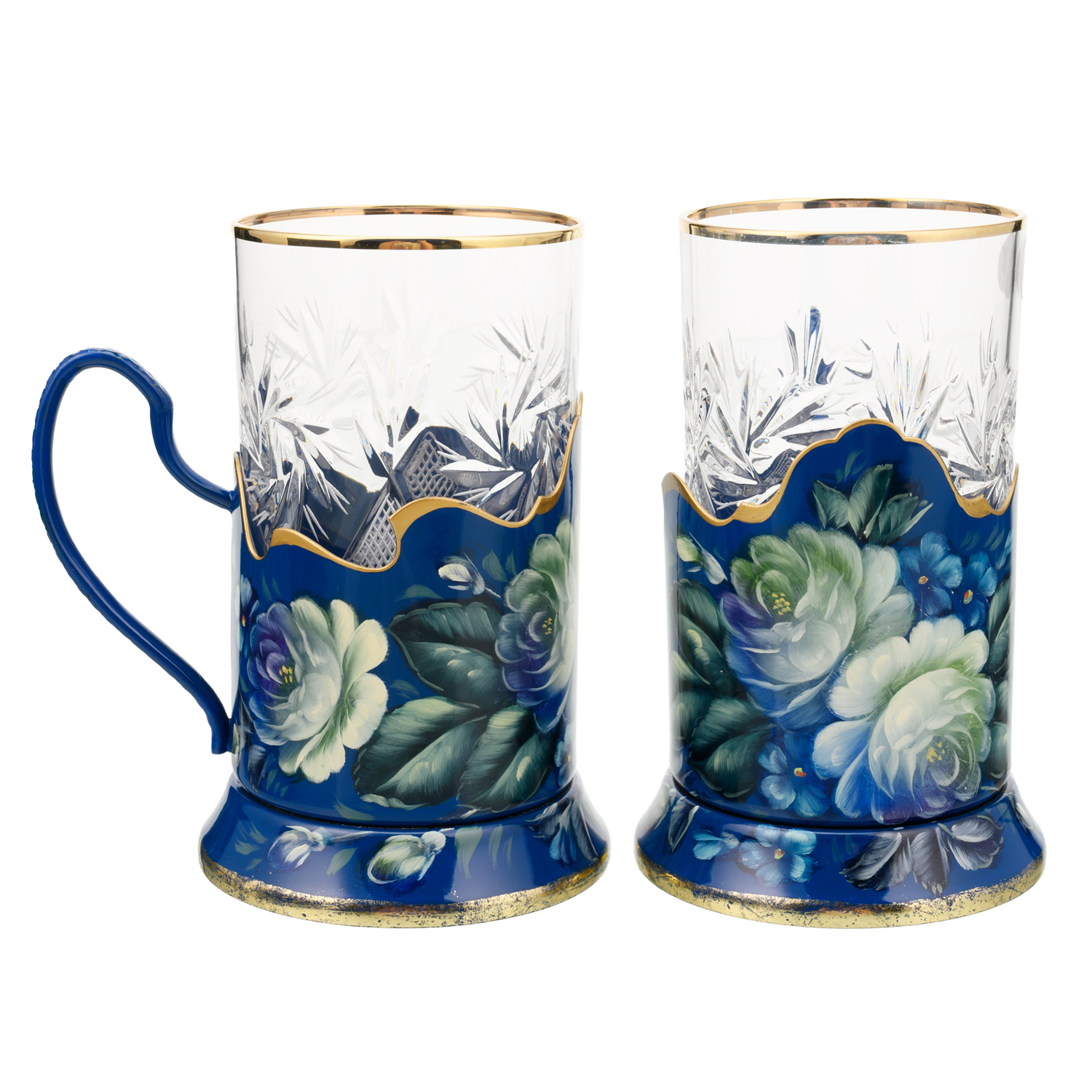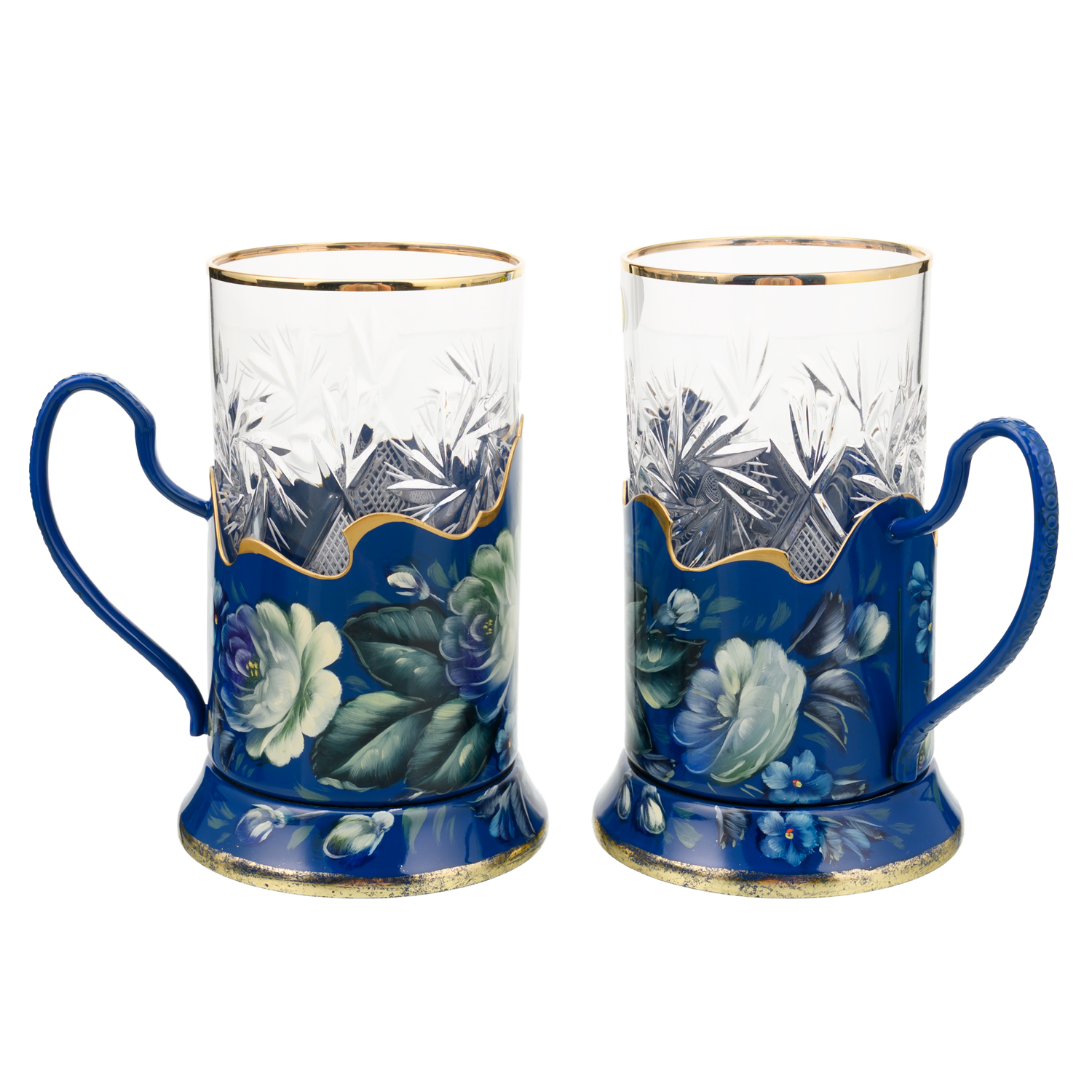 Набор подстаканников с ручной росписью. Жостово.Материалы: латунь, краски, лак.