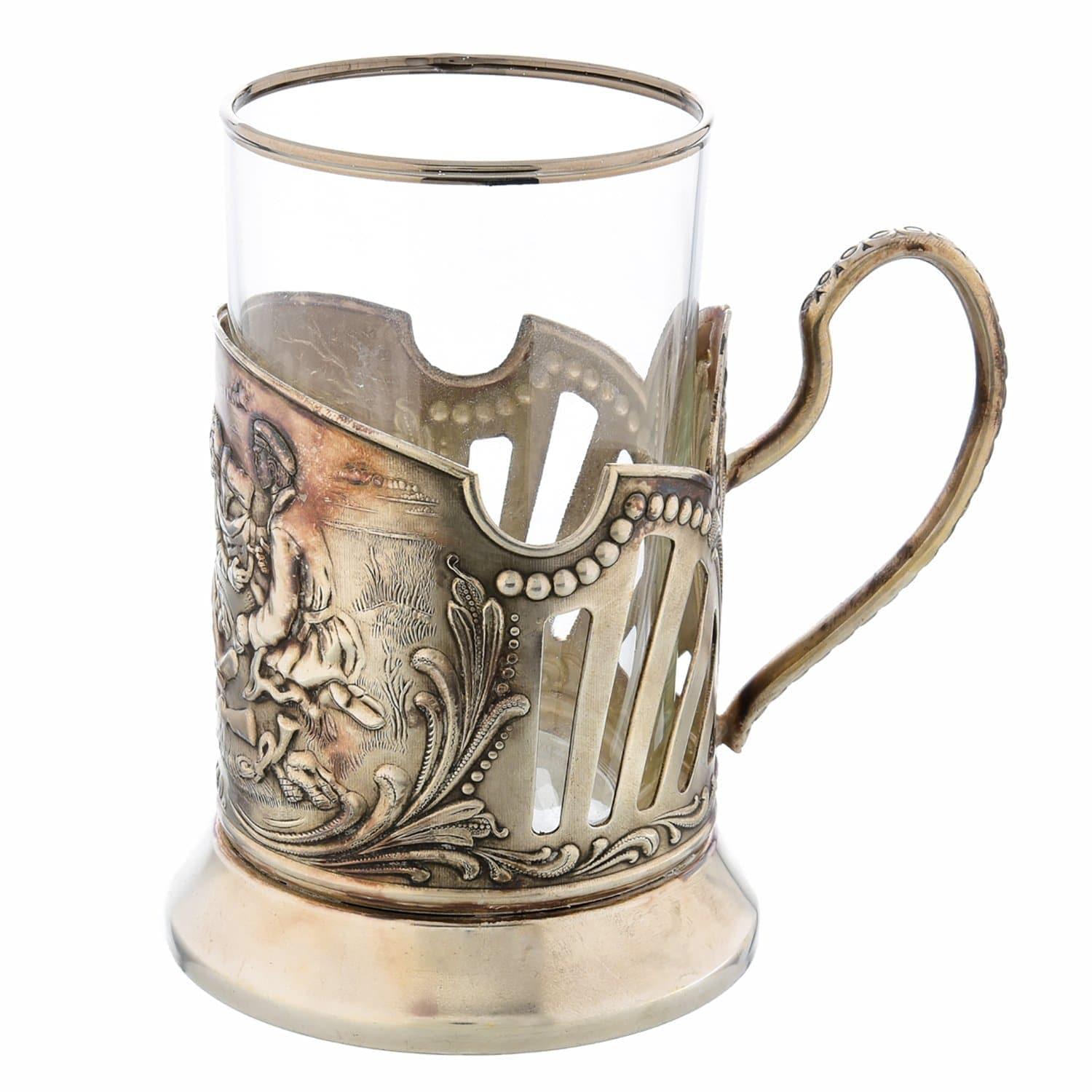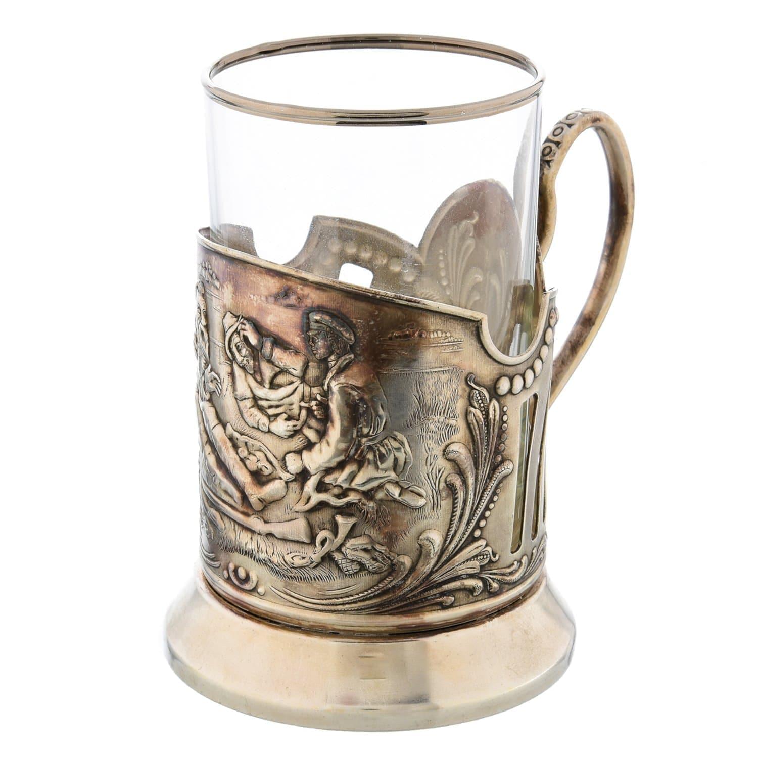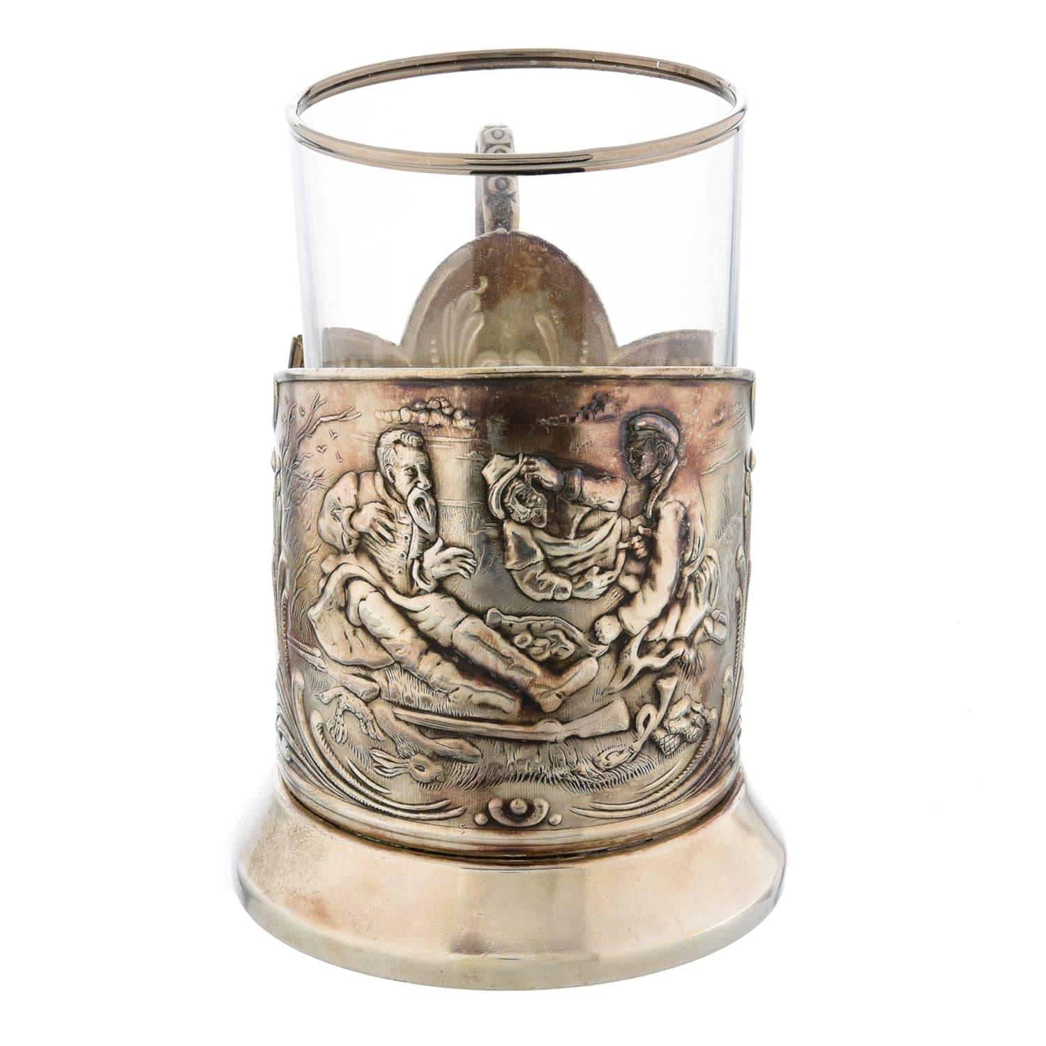 06023 Подстаканник "Охотники на привале" посеребренный .