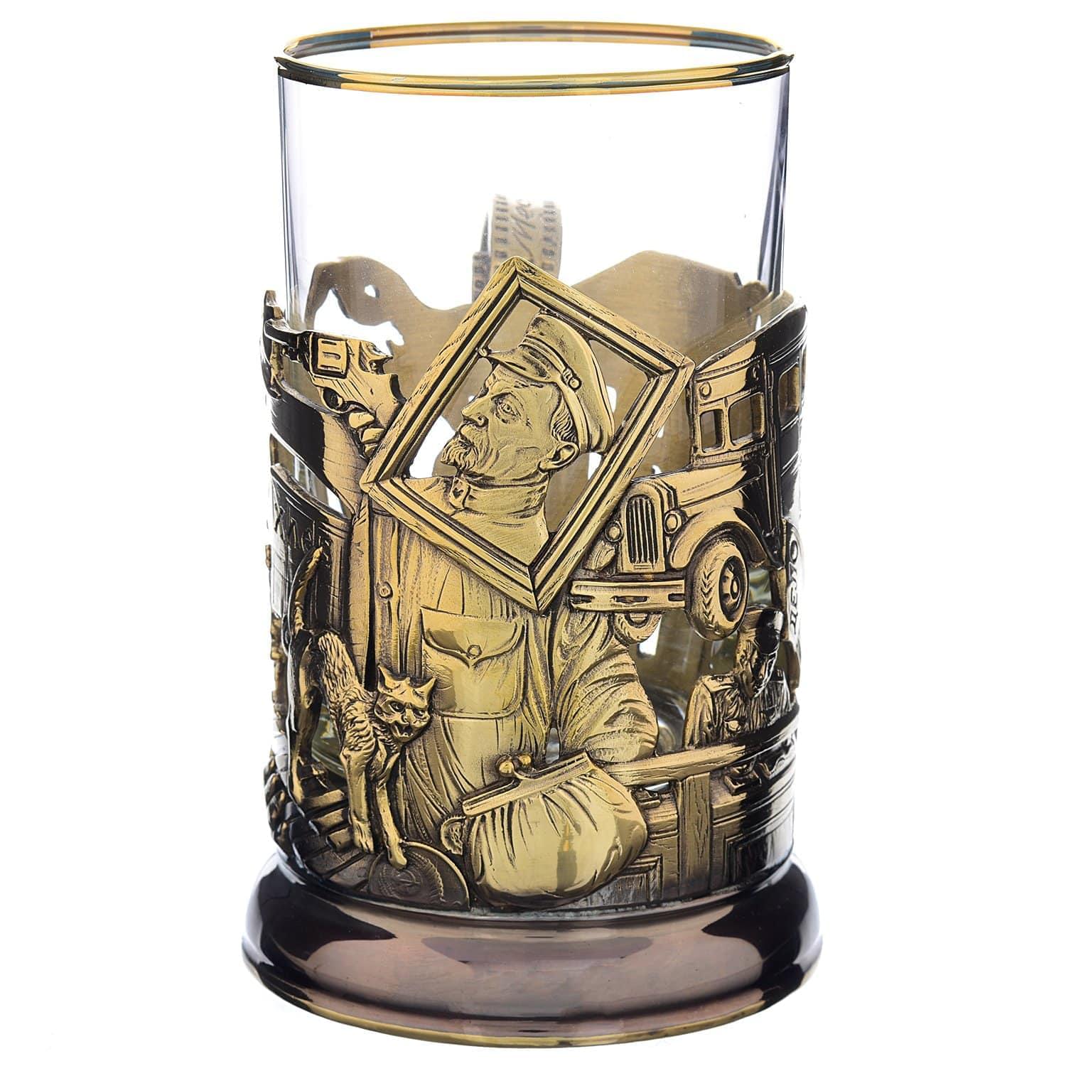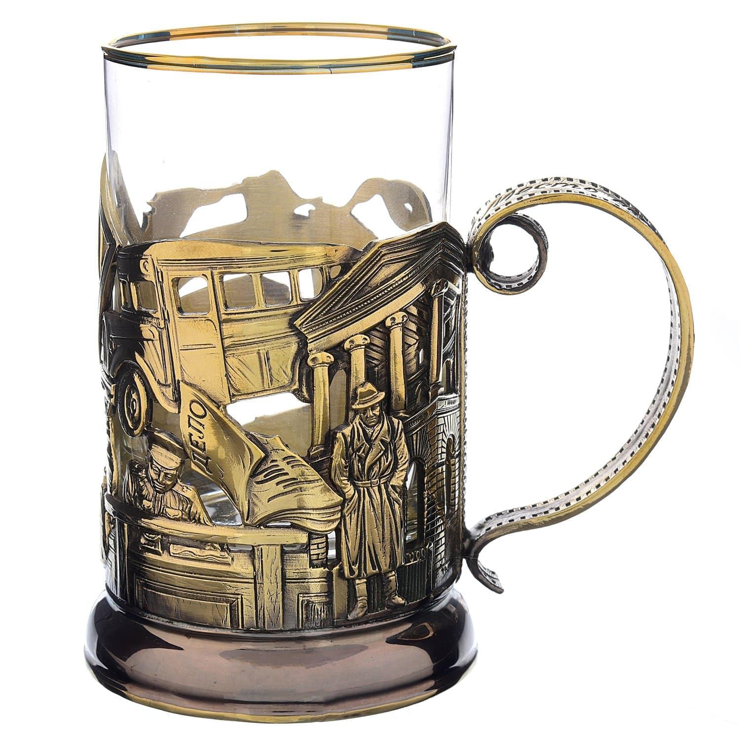 Образы и символы из легендарного советского фильма 1797 года с участием актеров Высоцкого и Конкина, которые сыграли сотрудников МУРа, обезвредивших банду "Черная кошка", - на литом корпусе предлагаемого подстаканника. Вашему вниманию - дизайнерский предмет утвари в русском стиле, подстаканник со вставным стаканом.