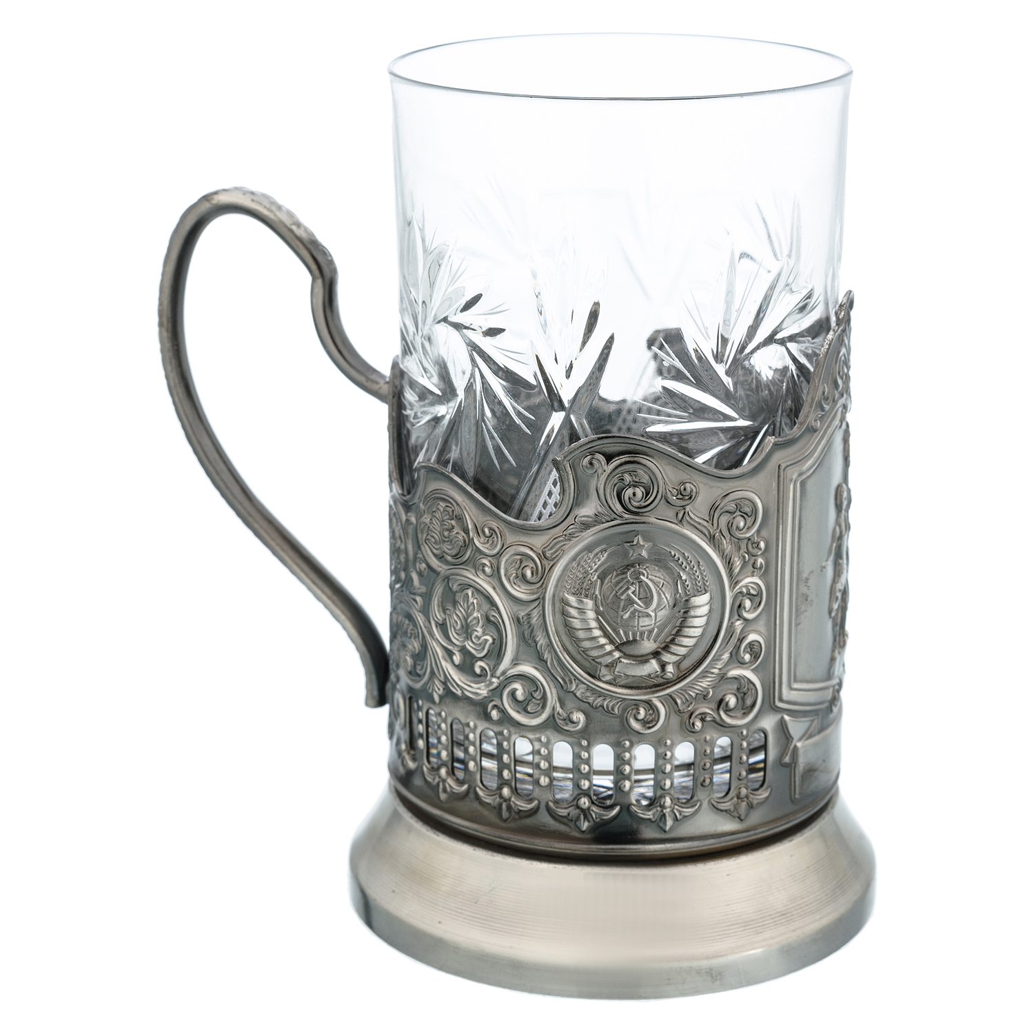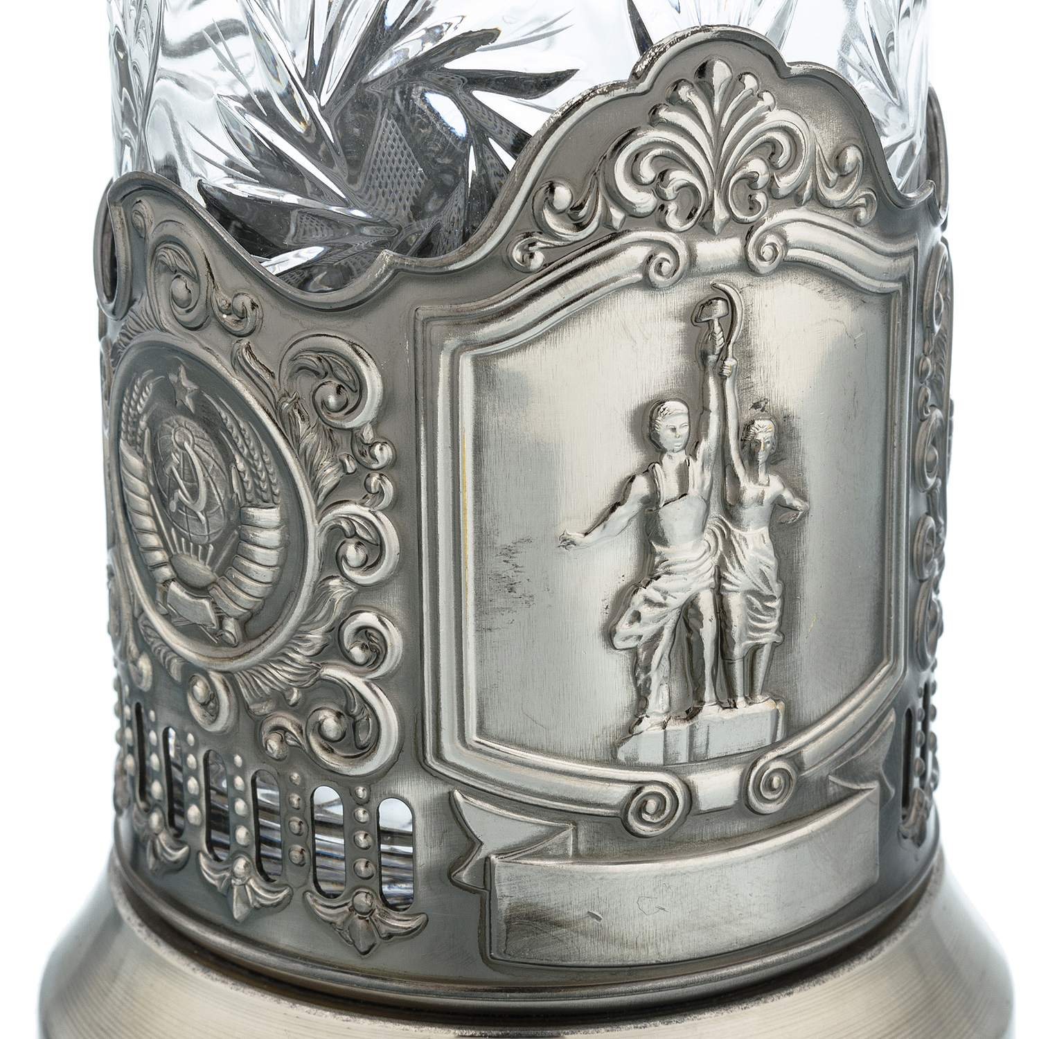 Русские подарки и сувениры → Посуда → Подстаканники → Подстаканник никелированный "Рабочий и колхозница"