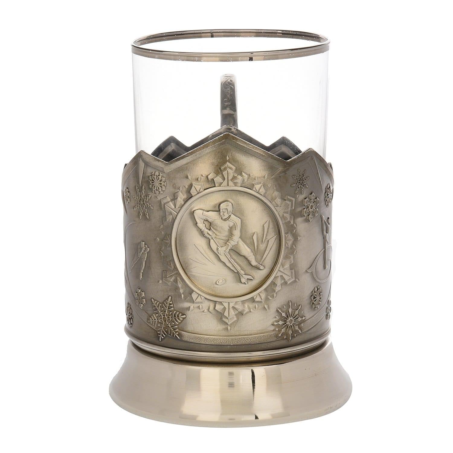 Русские подарки и сувениры → Посуда → Подстаканники → Подстаканник "Хоккей с шайбой". Латунь. Никелированный