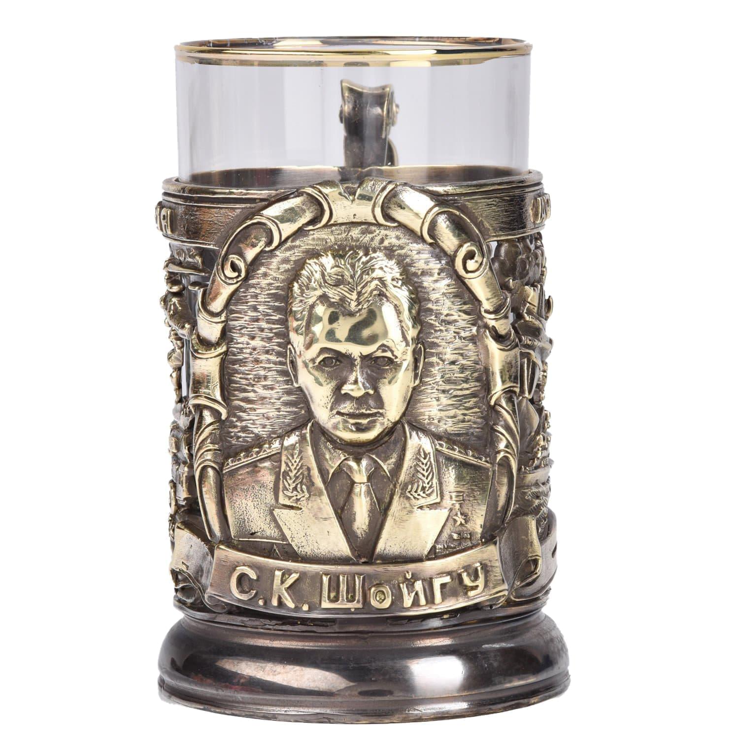 Образ министра обороны РФ изображен на латунном корпусе предмета утвари, который крайне популярен сегодня благодаря удобству в использовании и авторскому дизайну. Подстаканник - прекрасная альтернатива кружке. Он украсит рабочий стол, подчеркнет должностной статус и вкус обладателя и, конечно же, не раз напомнит о дарителе.