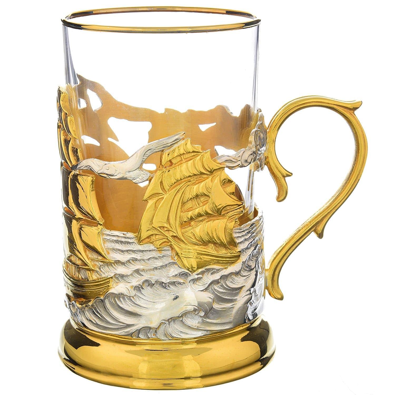 Подстаканник "Парус" с золотым покрытием