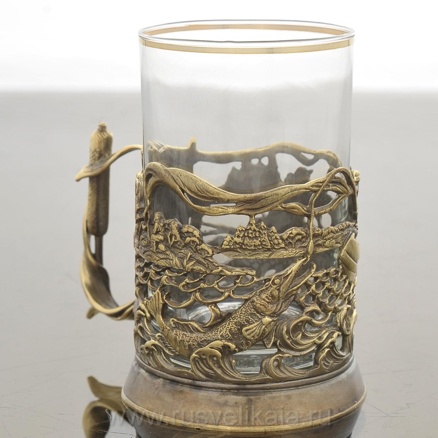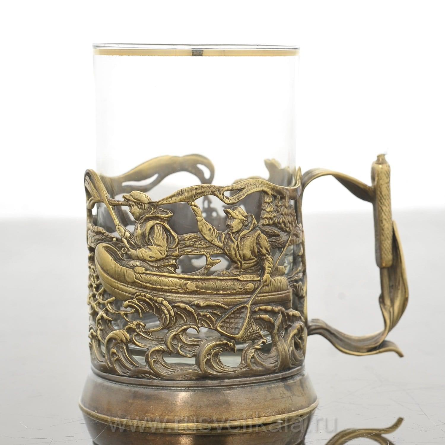 Перед Вами - адресный подарок для рыбака, функциональный сувенир в русском стиле, подстаканник со съемным  стаканом, который порадует  почитателя авторской посуды.  Этот предмет обихода из металла и стекла оригинального дизайна известен  с 19 века. Первые подстаканники появились во времена активной государственной деятельности министра Витте. Сегодня подстаканники - это романтические  символы, напоминающие о  поездах дальнего следования, и  стильные авторские подарки...