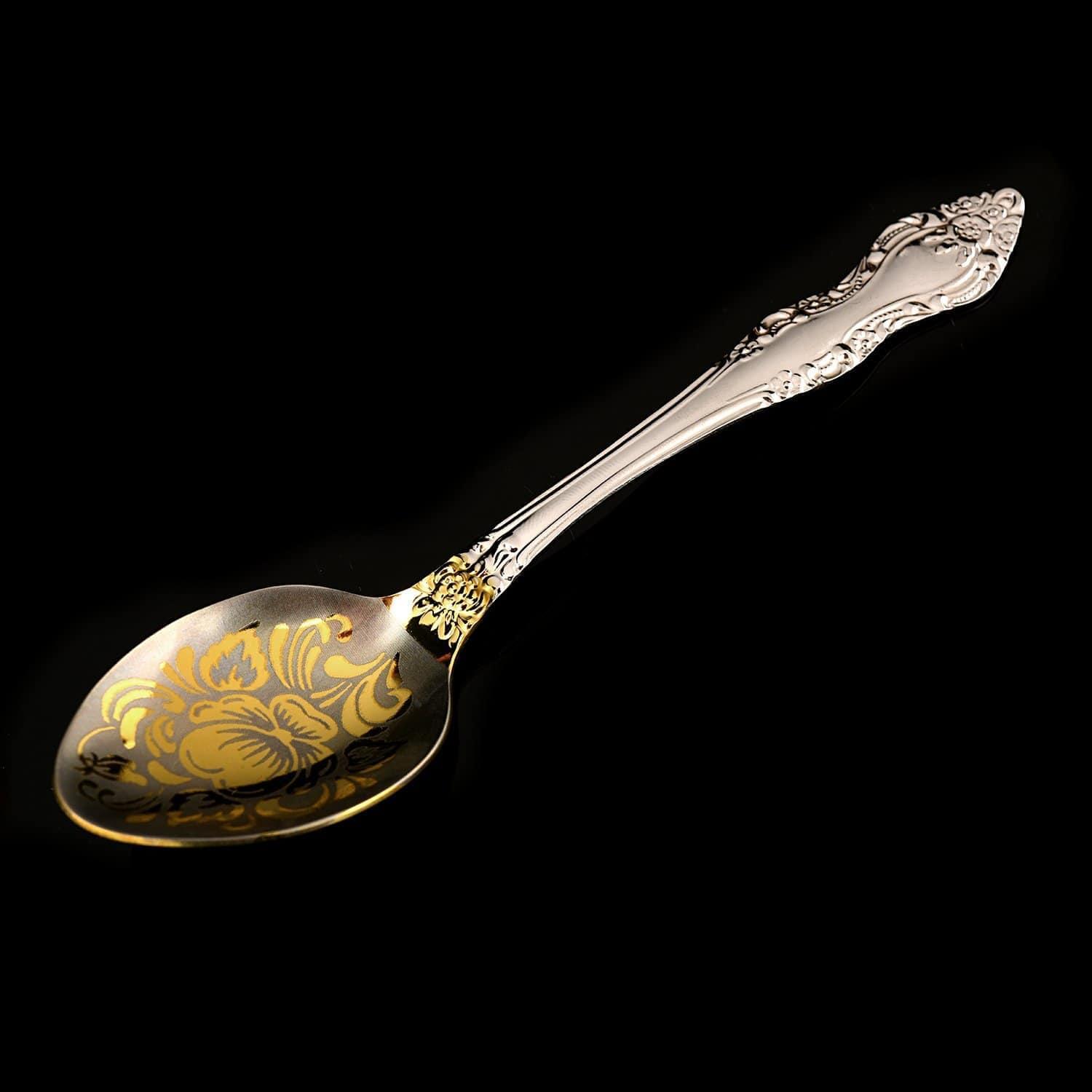 Корпуса подстаканника и ложки декорированы вручную развернутым авторским орнаментом в техниках ручной гравировки на металле. К этапам создания Златоустовской гравюры на металле относятся токарные работы, рисовка кистью, гравировка иглой по лаку, травление, гравировку резцом, полировка. Красоту оформления и детали подчеркивают никелировка, серебрение, эмалировка и эффектная позолота (использовалось золото 999,9).