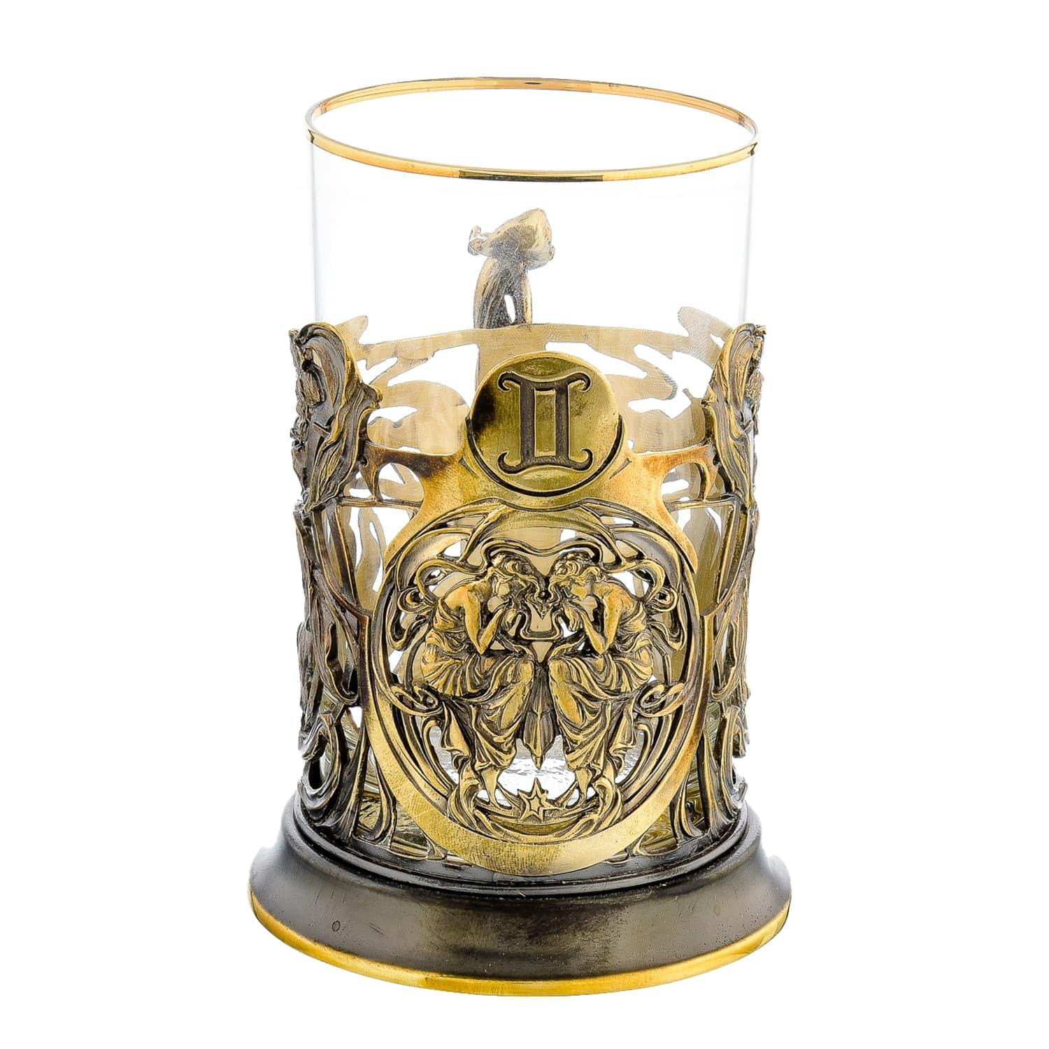 Корпус двухчастный: в литое основание вставлен стакан из стекла. На корпусе изображены Близнецы в фантасмагорической композиции.