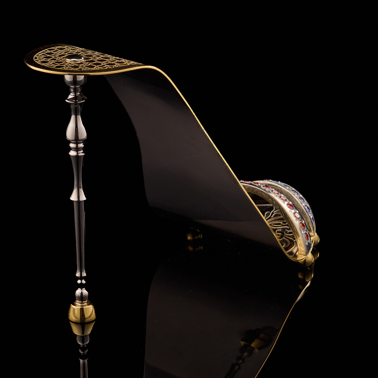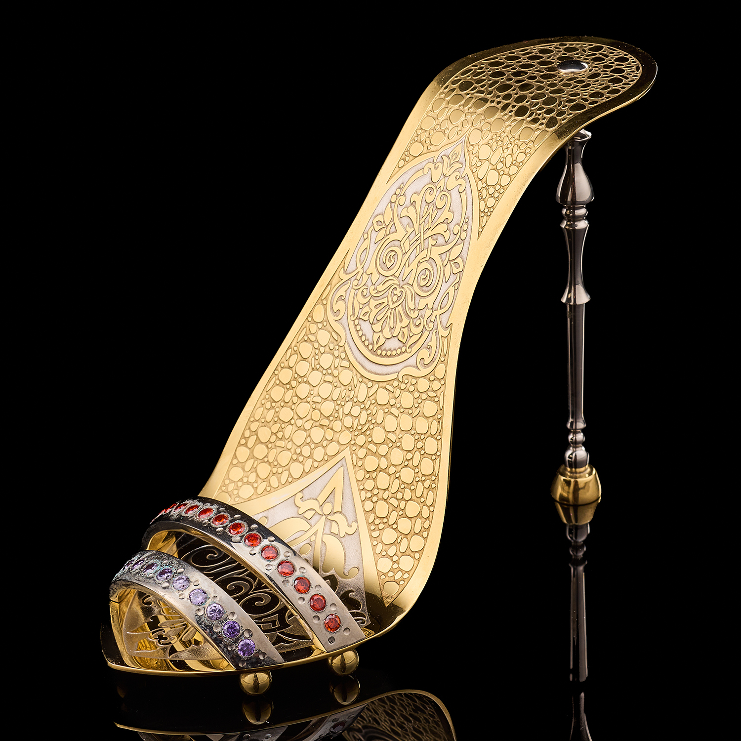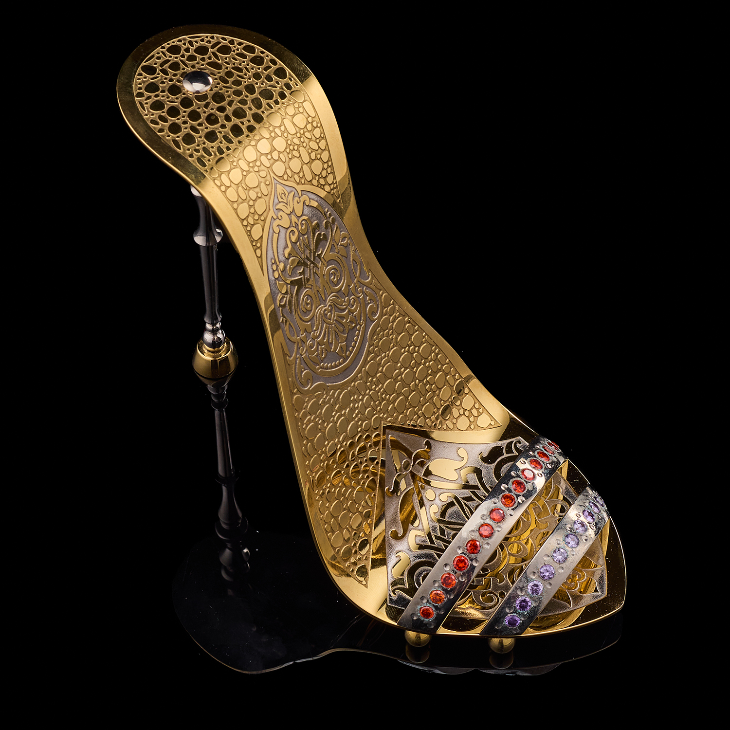 Подставка под мобильный телефон "Туфелька". Златоуст.Материалы: латунь, никель, золото 999,9*, фианиты.
