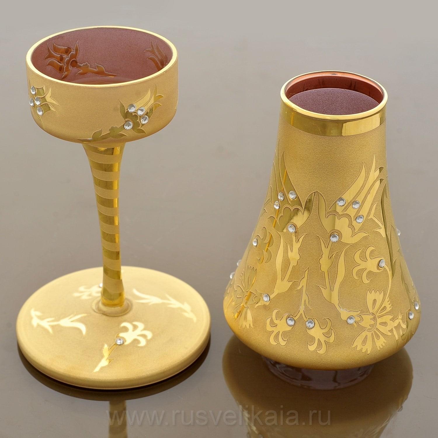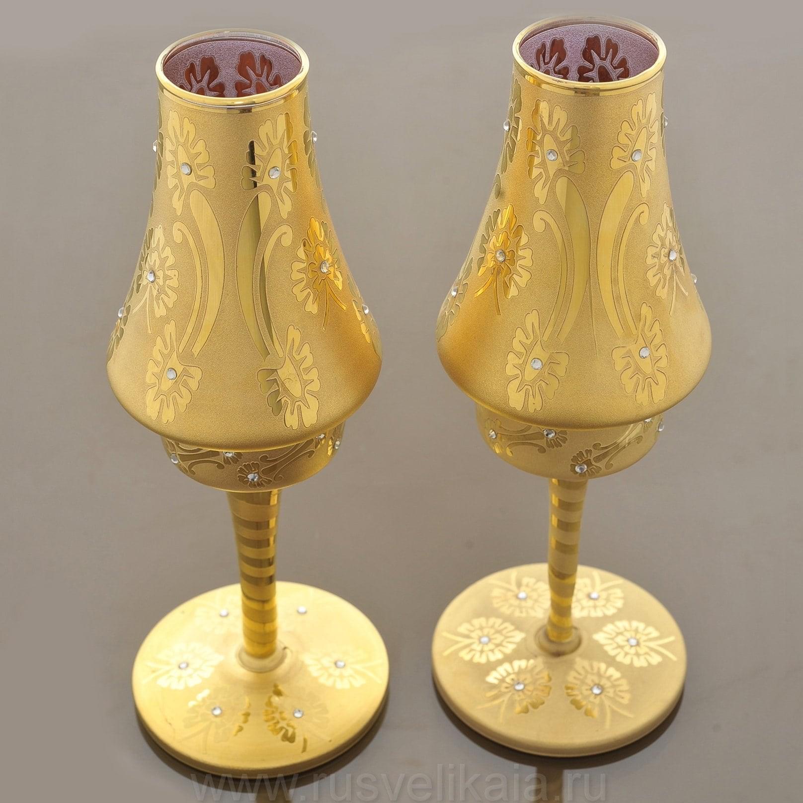 0016960/Нб  НАБОР ПОДСВЕЧНИКОВ 2шт стекло, стразы,позолота ....