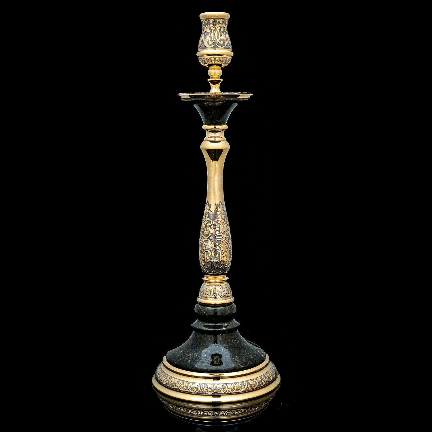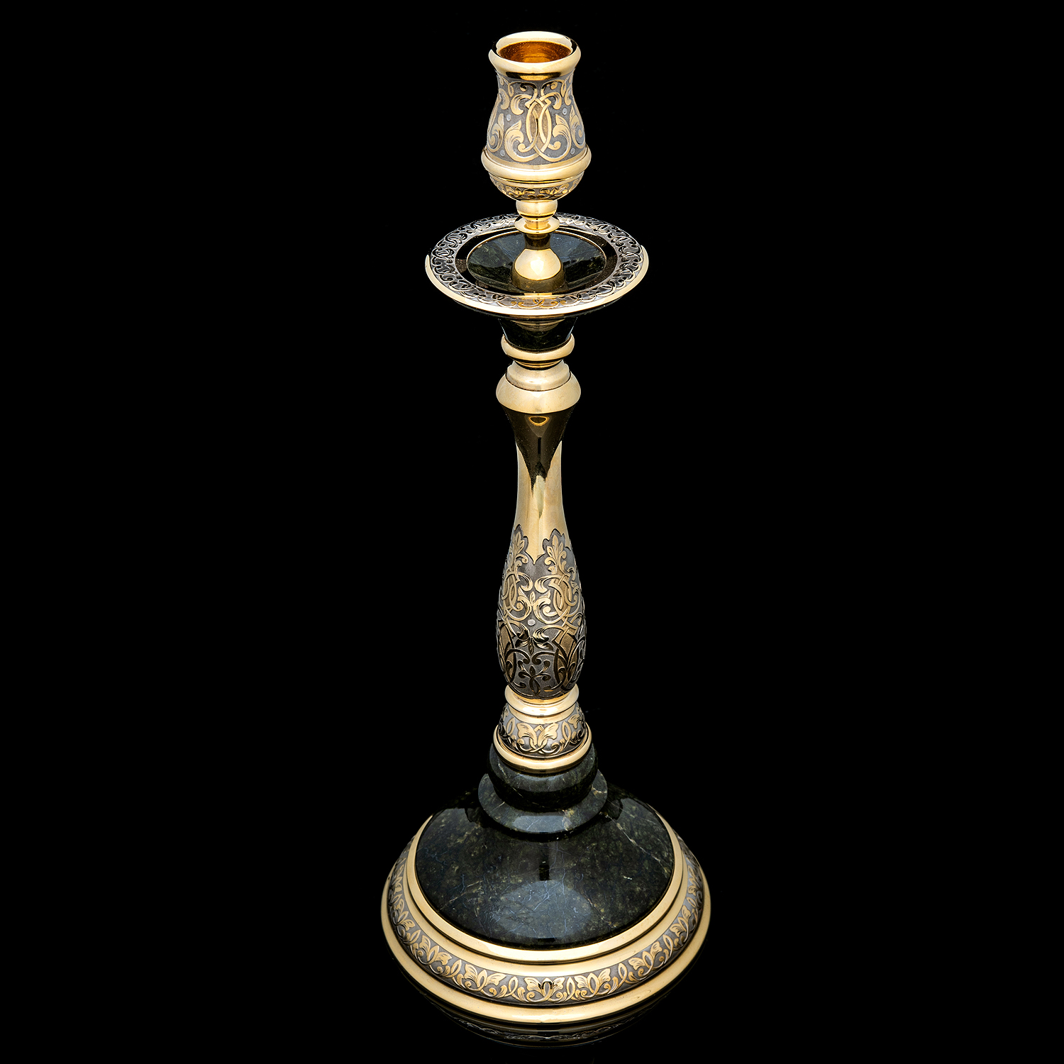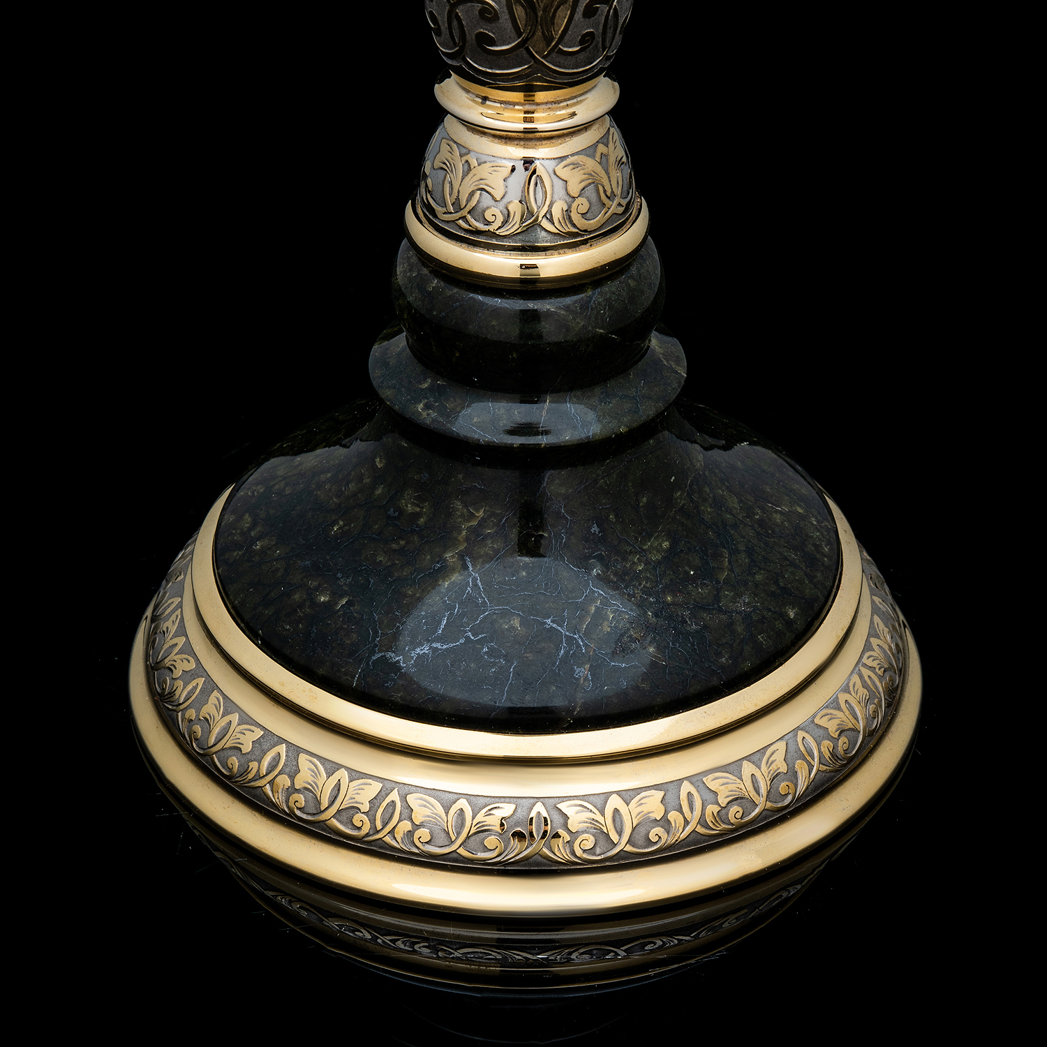 Подсвечник из камня с позолотой. Златоуст.Материалы: латунь, никель, золото 999,9*, змеевик.