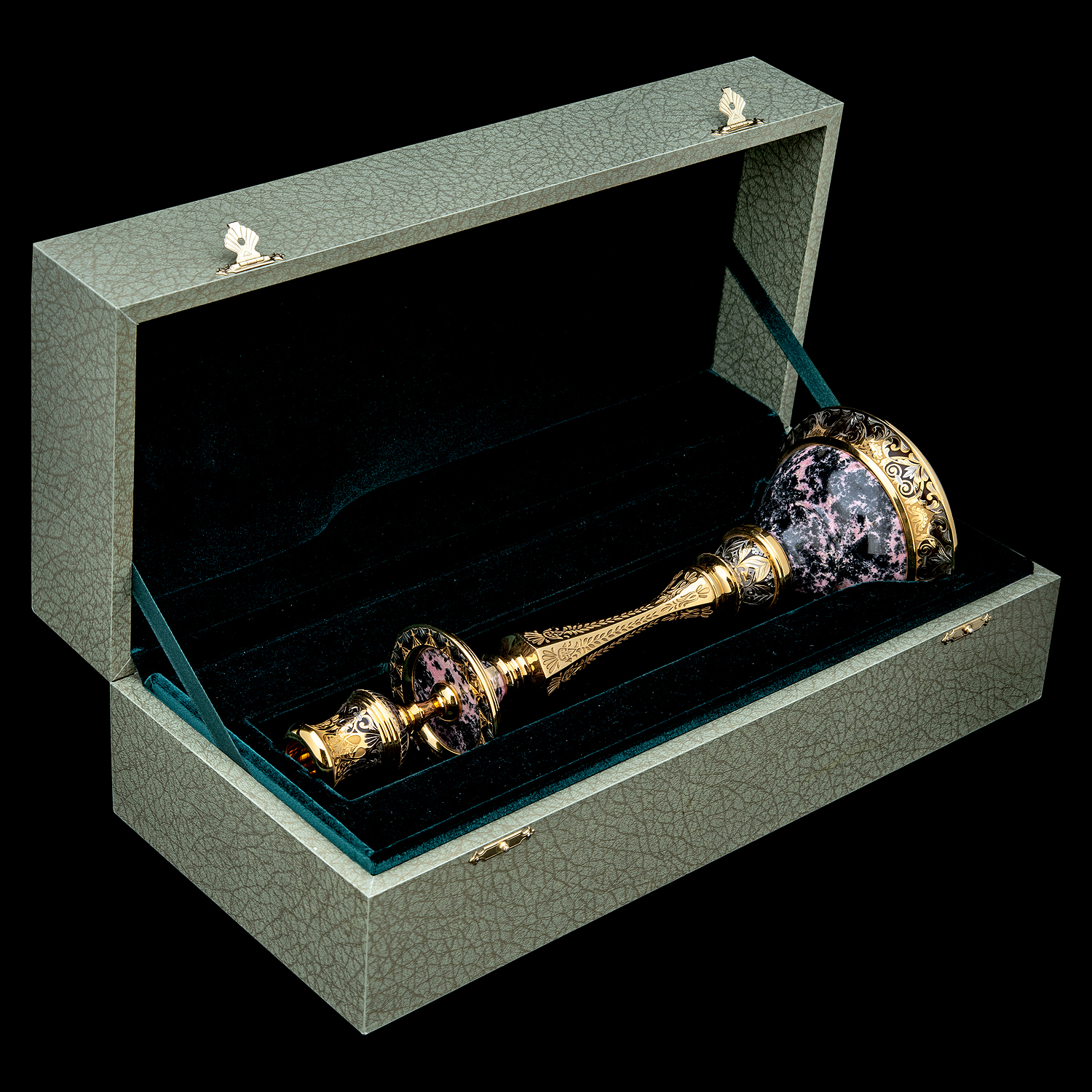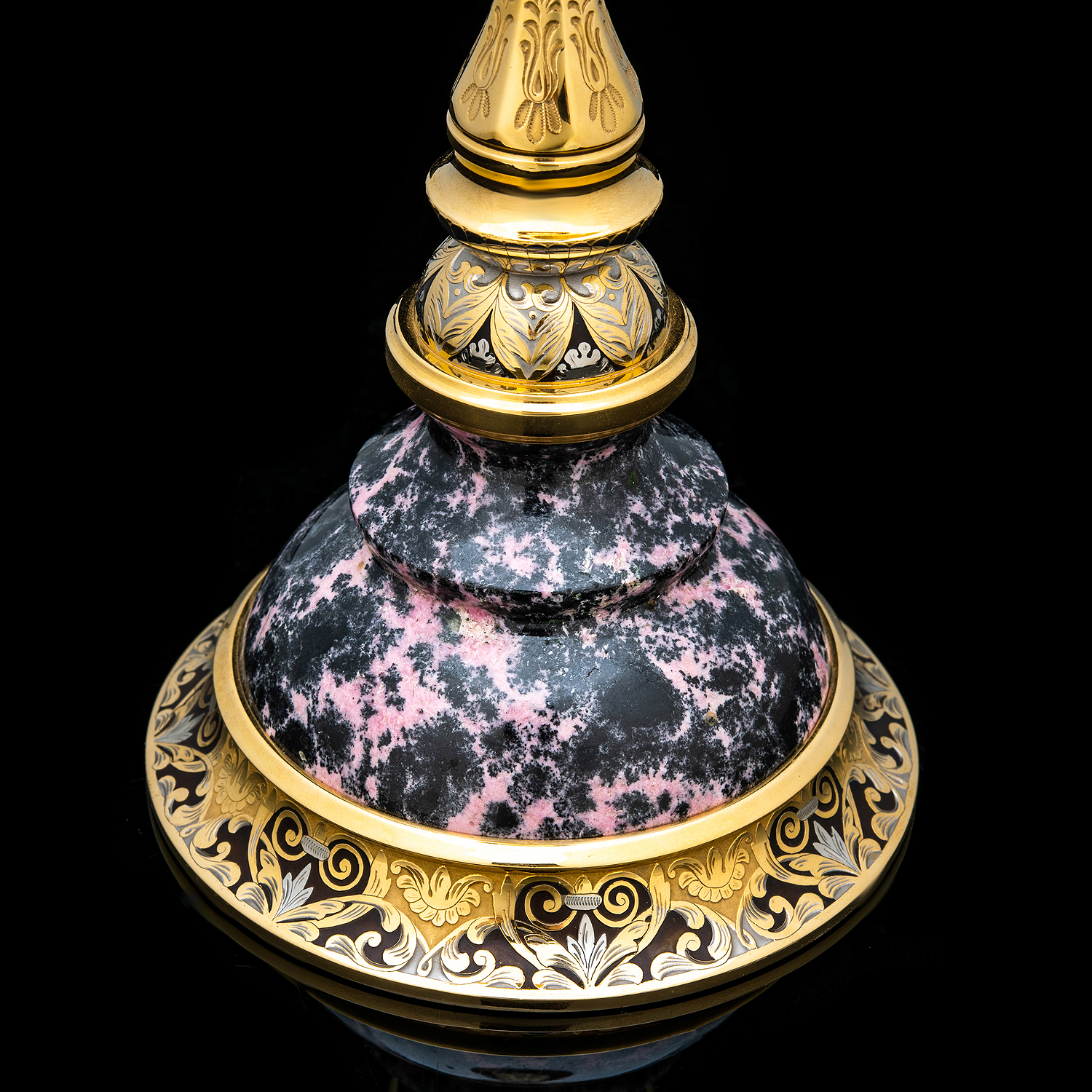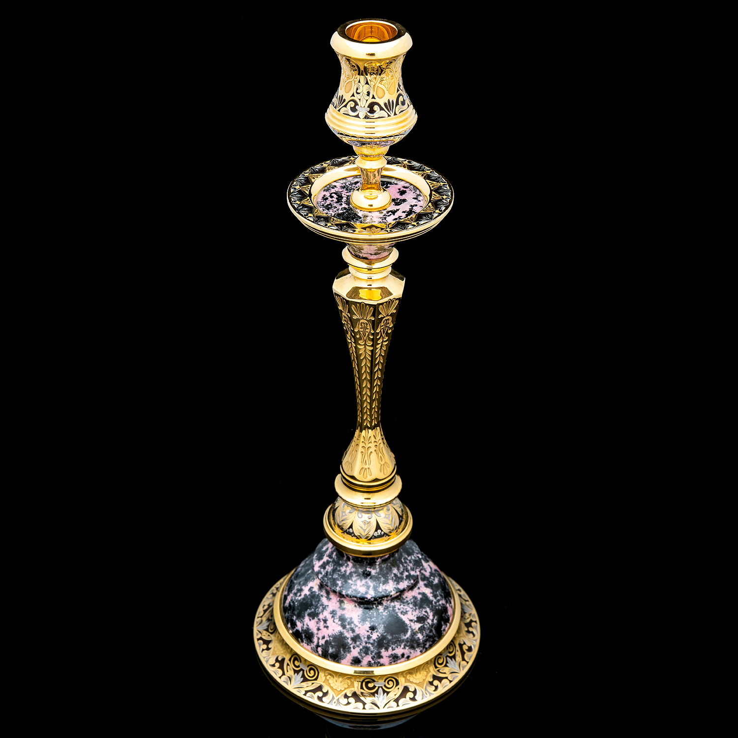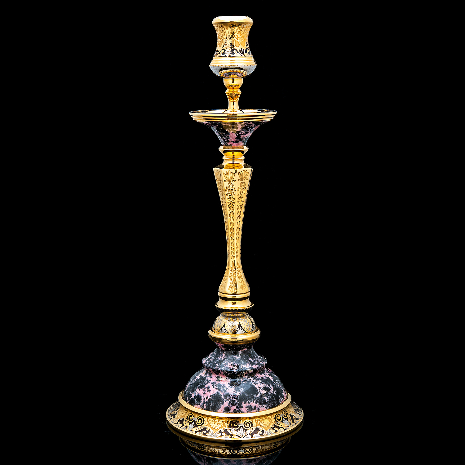 Подсвечник из камня с позолотой. Златоуст.Материалы: латунь, никель, золото 999,9*, родонит.