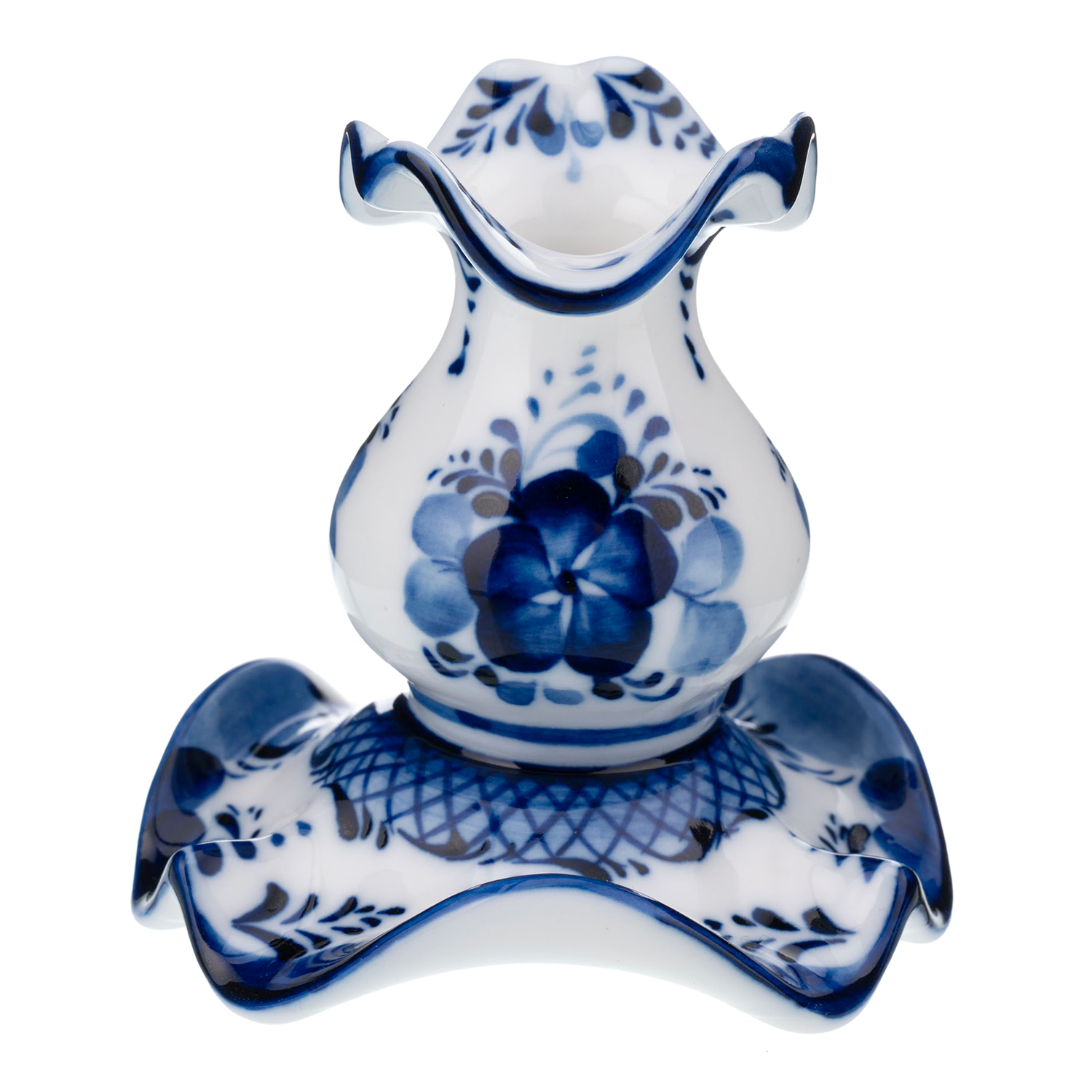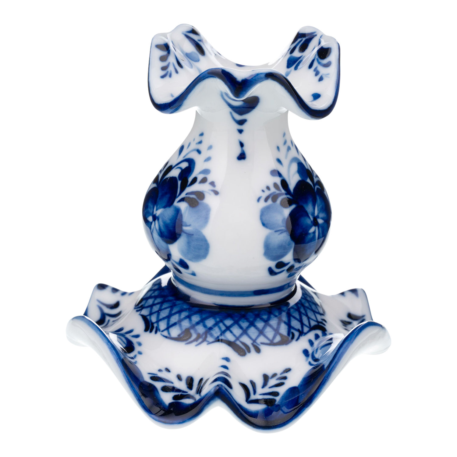 Русские подарки и сувениры → Интерьерные изделия → Подсвечники → Подсвечник фарфоровый для церковной свечи. Гжель