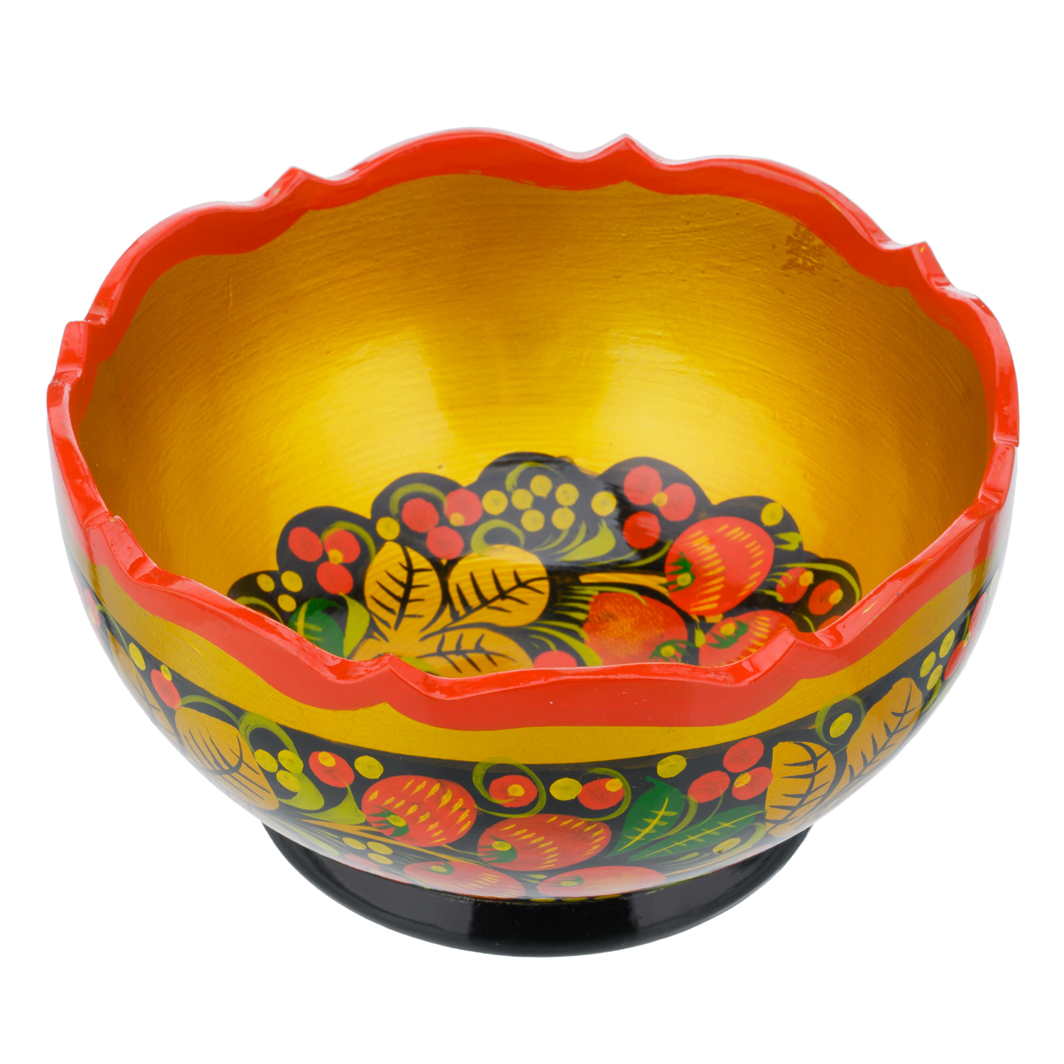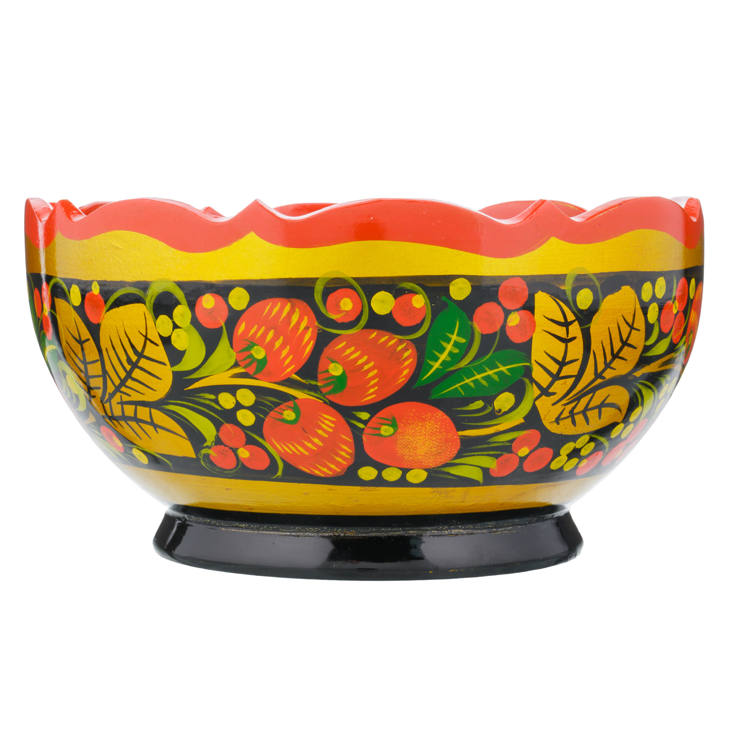 Чаша деревянная с росписью "Клубника". Хохлома