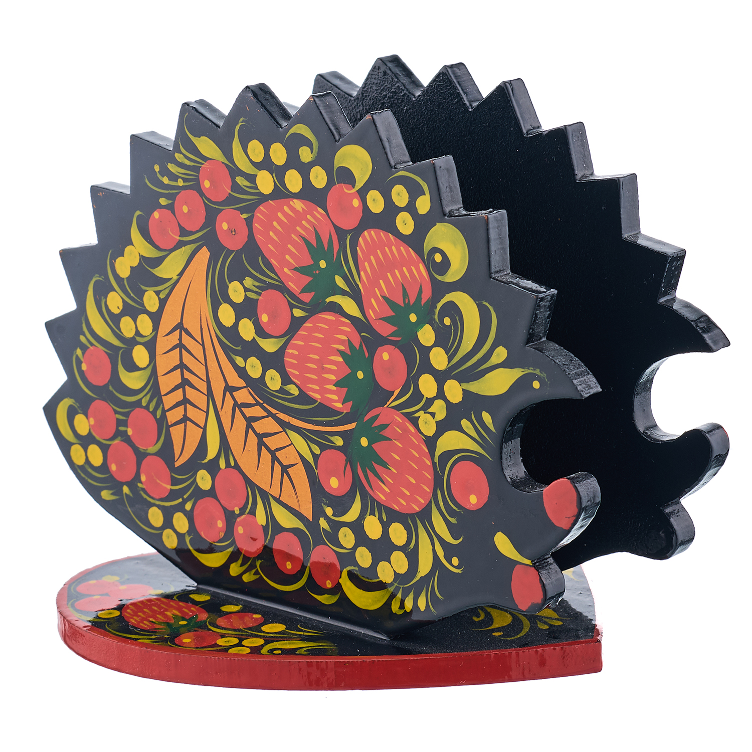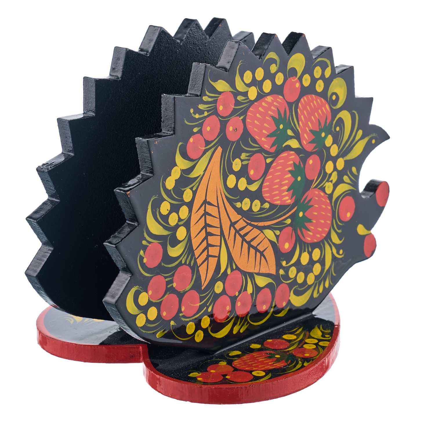 Салфетница деревянная с росписью "Ежик". Хохлома