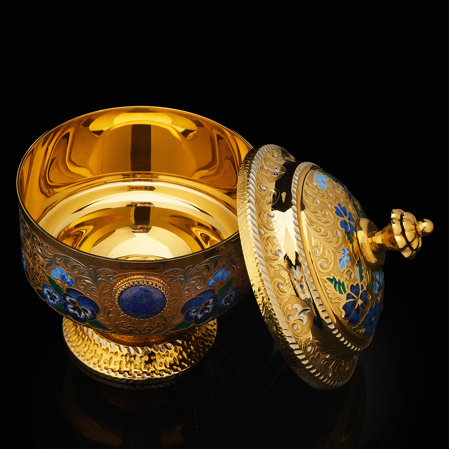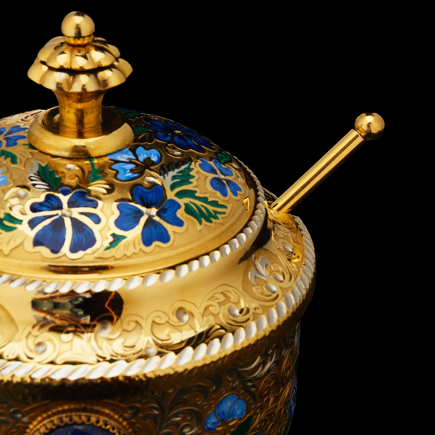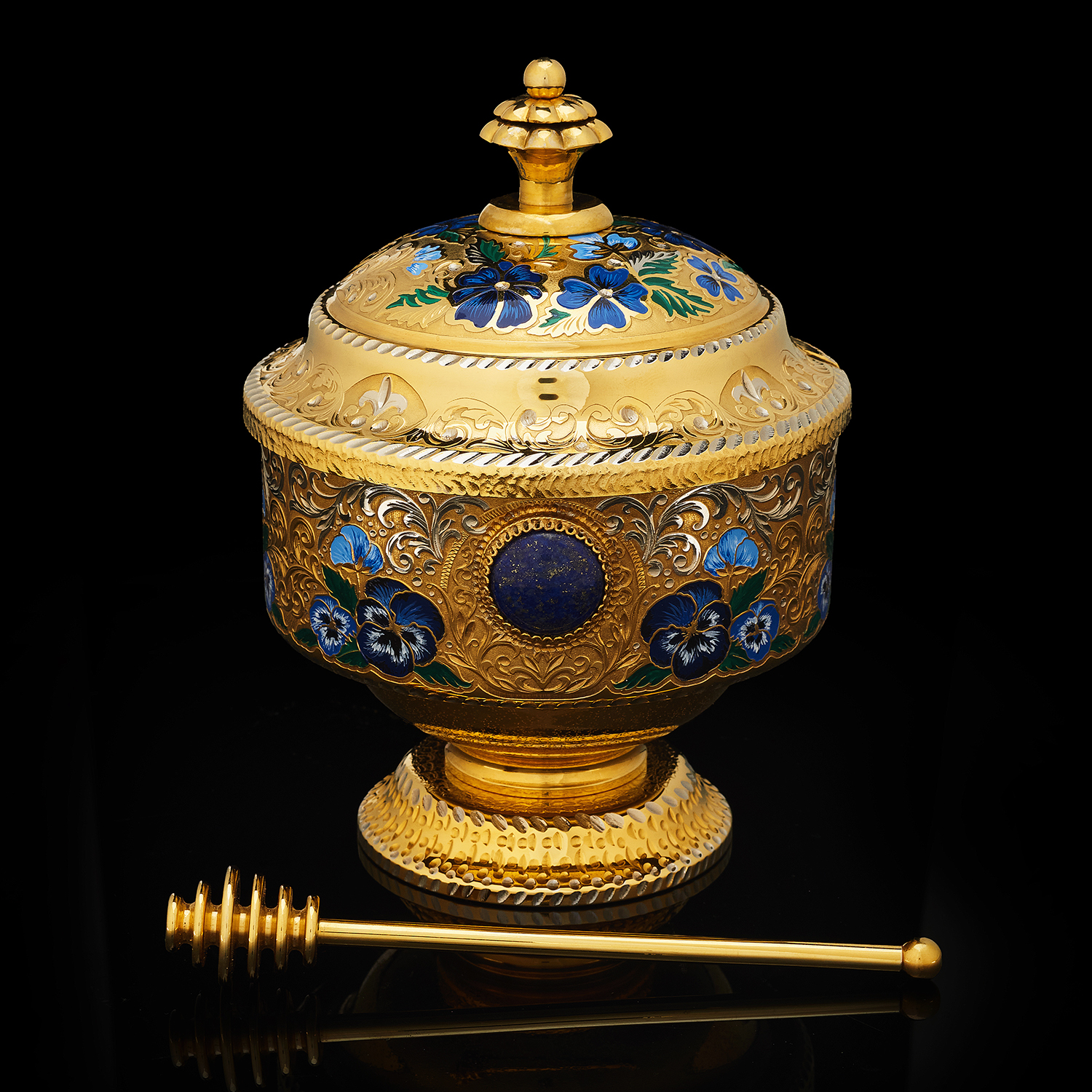 Медовница "Цветы". Златоуст.Материалы: латунь, никель, золото 999,9*, эмаль.