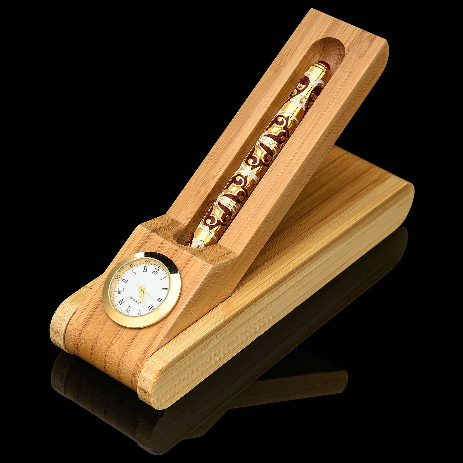 Письменный мини-набор с ручкой. Златоуст.Материалы: латунь, золото 999,9*, дерево, эмаль.