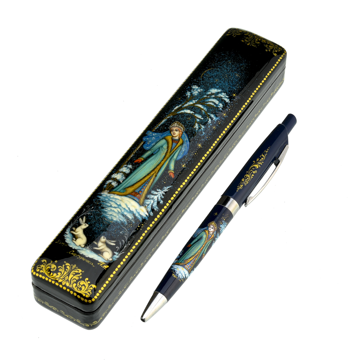 Ручка в шкатулке с росписью "Снегурочка"