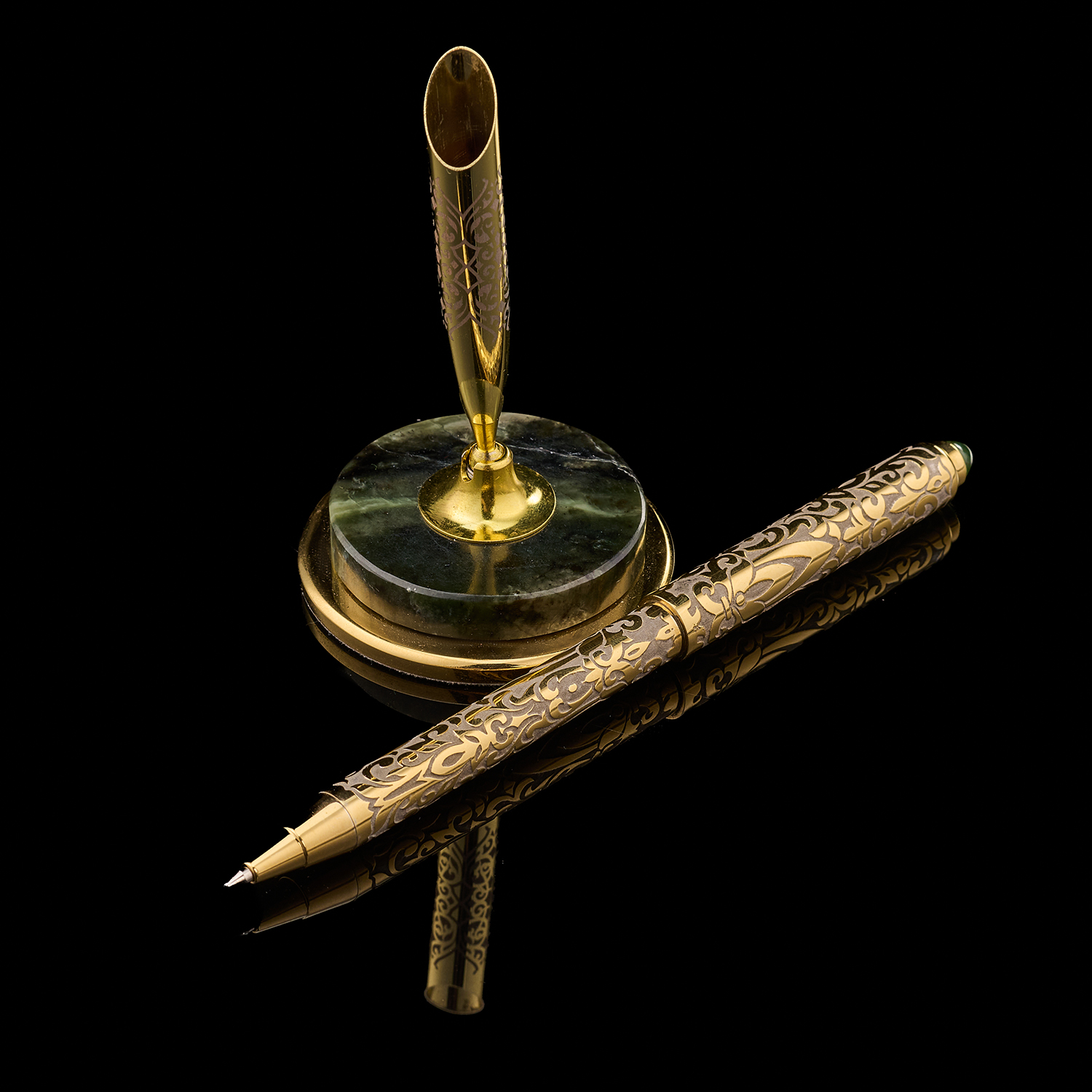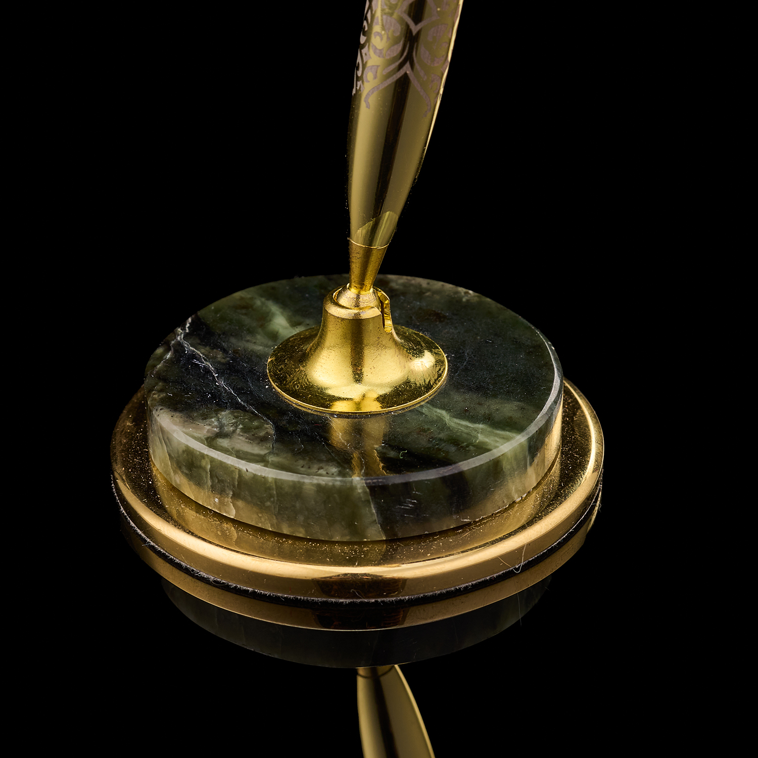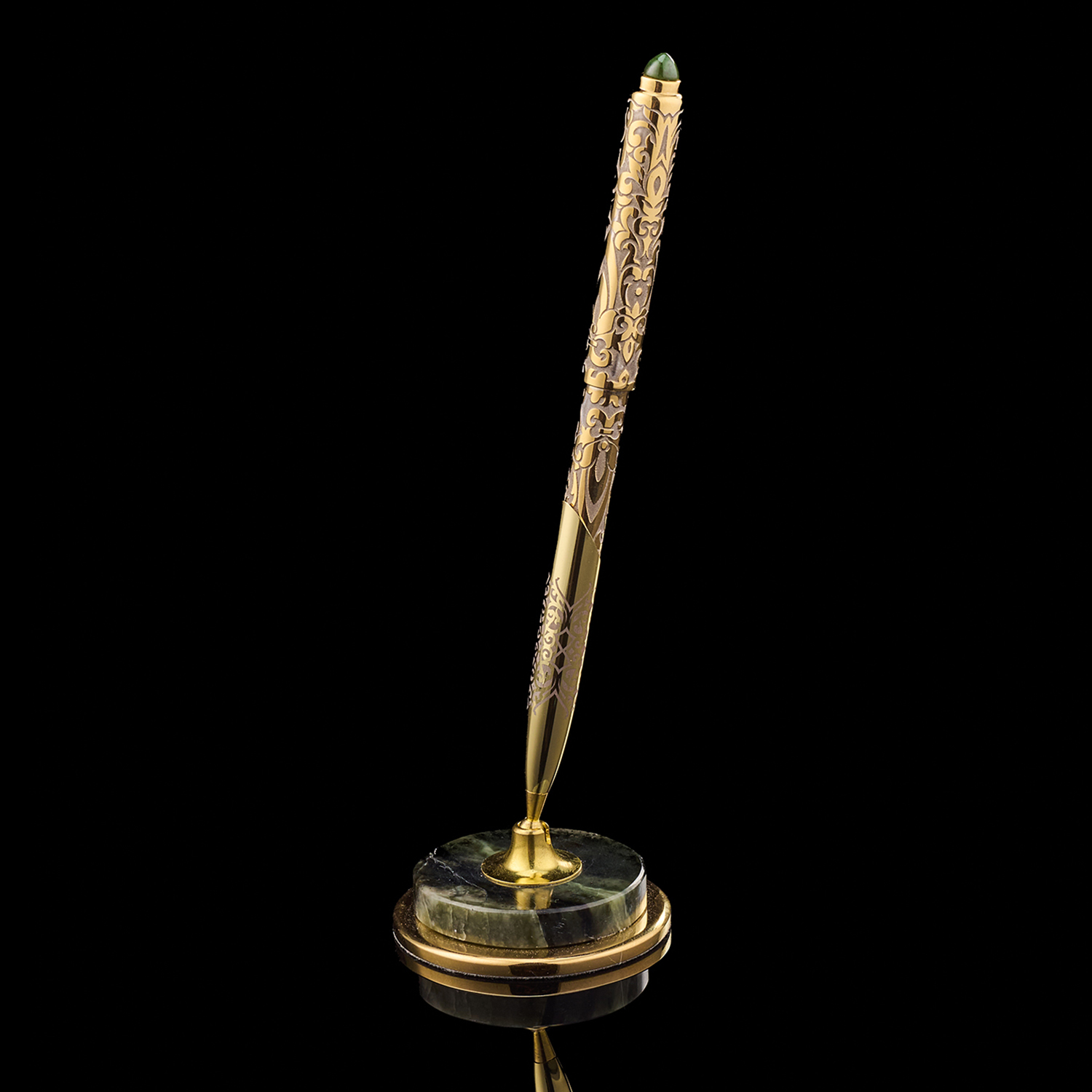 Ручка подарочная с подставкой из нефрита. Златоуст.Материалы: латунь, никель, золото 999,9*, нефрит.