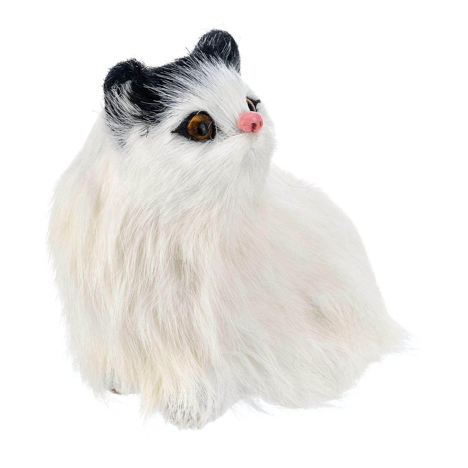 Игрушка из меха "Белая пушистая кошка".Кот - символ 2023 года.