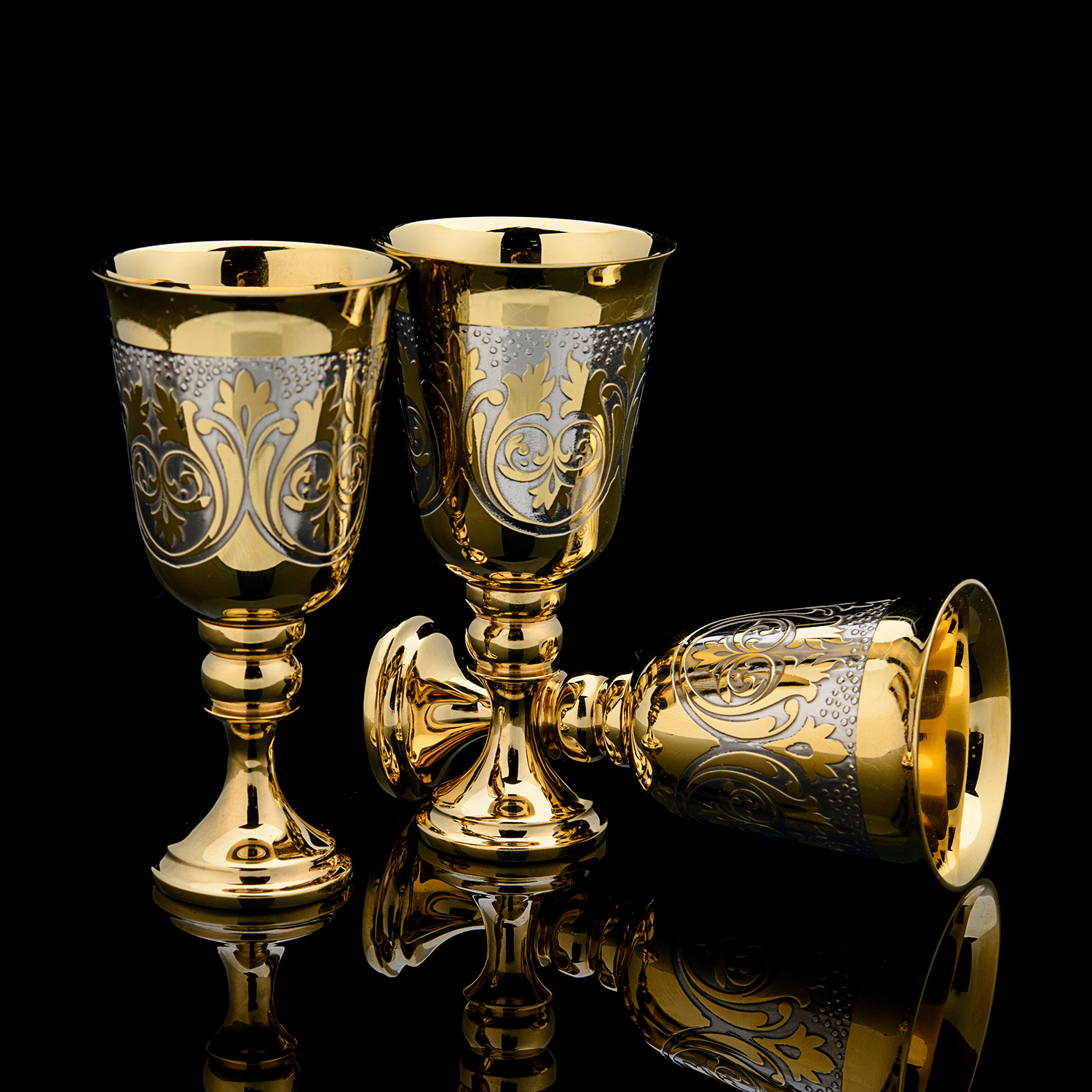 Набор рюмок для водки "Каприз". Златоуст.Материалы: латунь, никель, золото 999,9*.