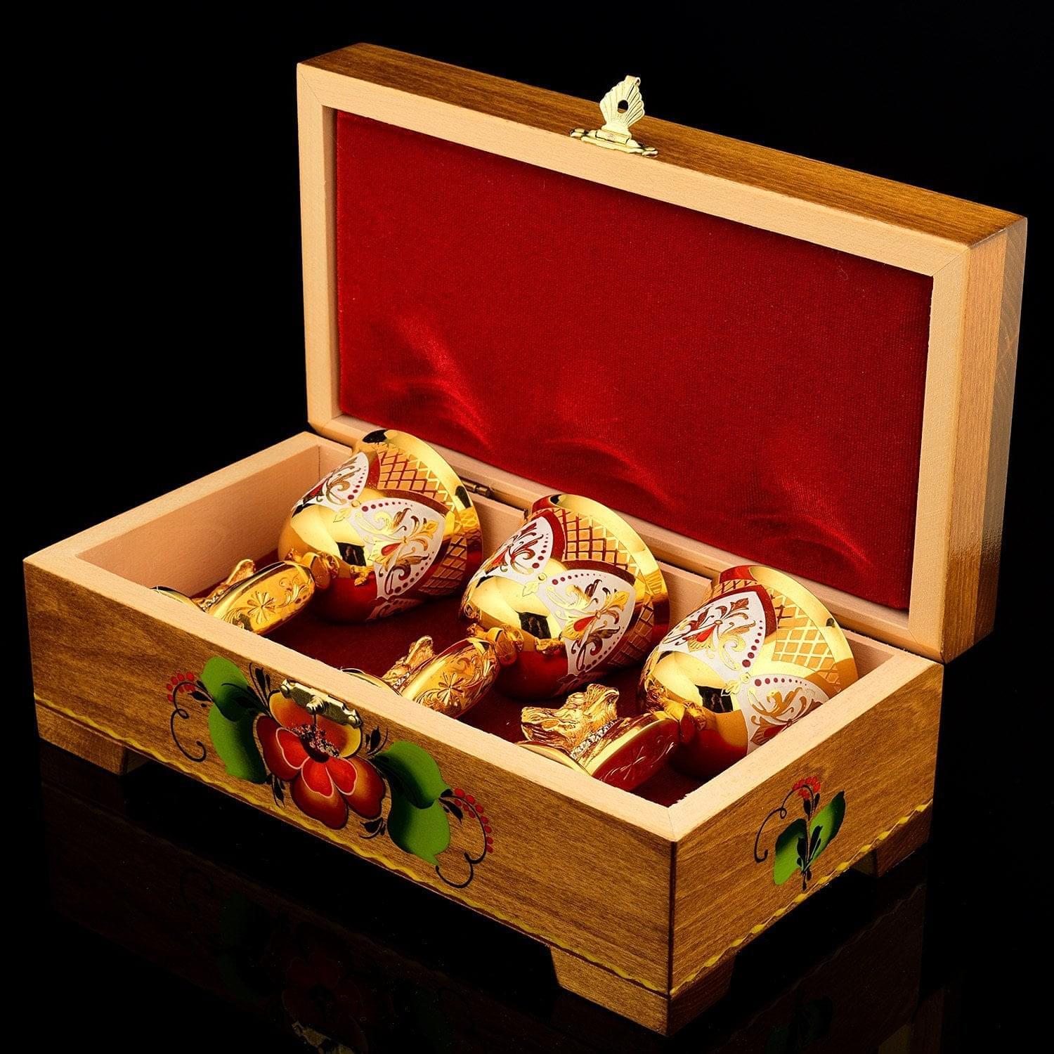 Питейные сосуды уложены в подарочную шкатулку-ларец из дерева с цветочным принтом и готовы к дарению. Эксклюзивная работа златоустовских мастеров, токарей по металлу и художников-граверов, набор для коньяка на 3 персоны "Собачья жизнь" Златоуст - это практичный вариант vip-подарка на 23 февраля, Юбилей, Свадьбу, День рождения, общий или личный, в том числе профессиональный праздник.