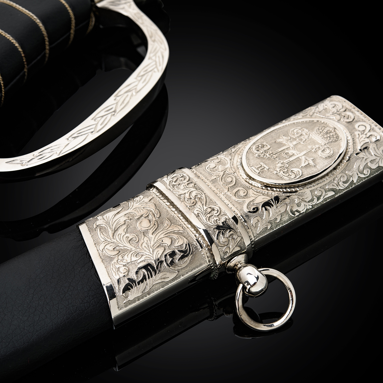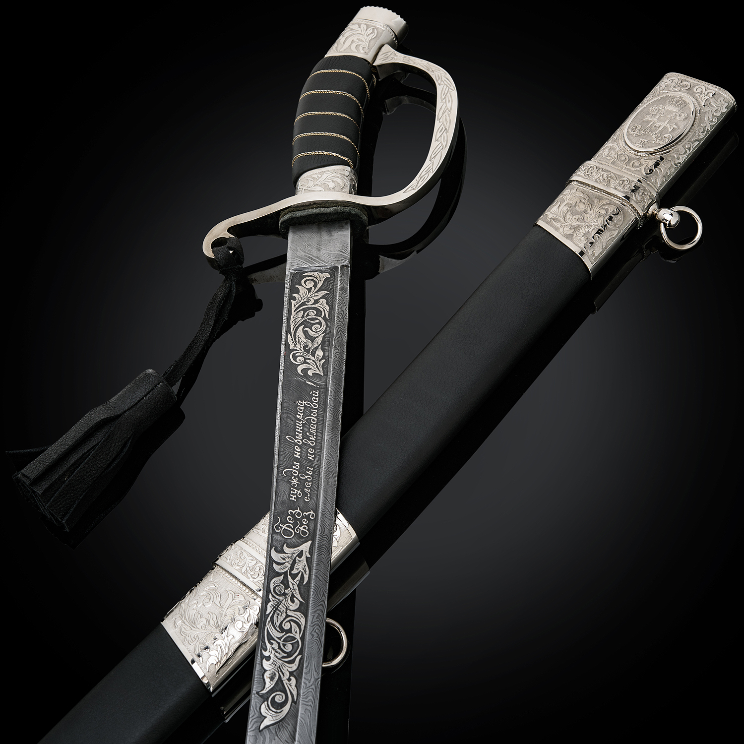 Сабля сувенирная "Драгунская".Материалы: дамасская сталь, латунь, никелирование, кожа. ..