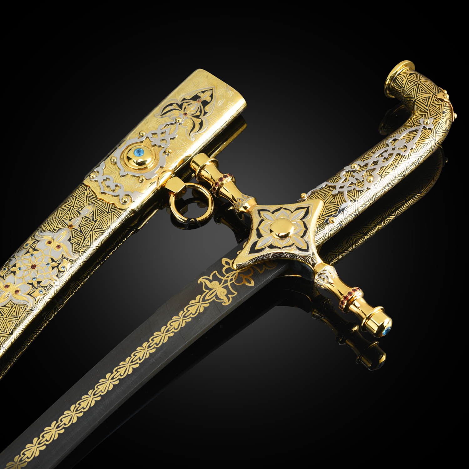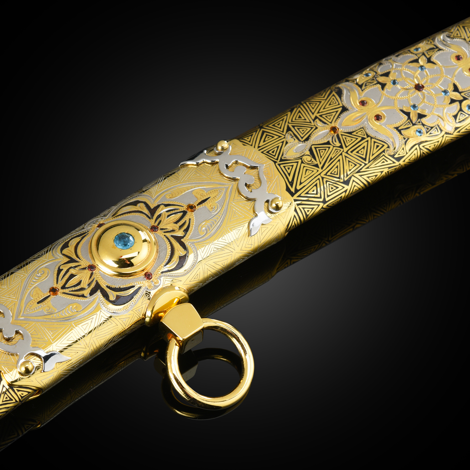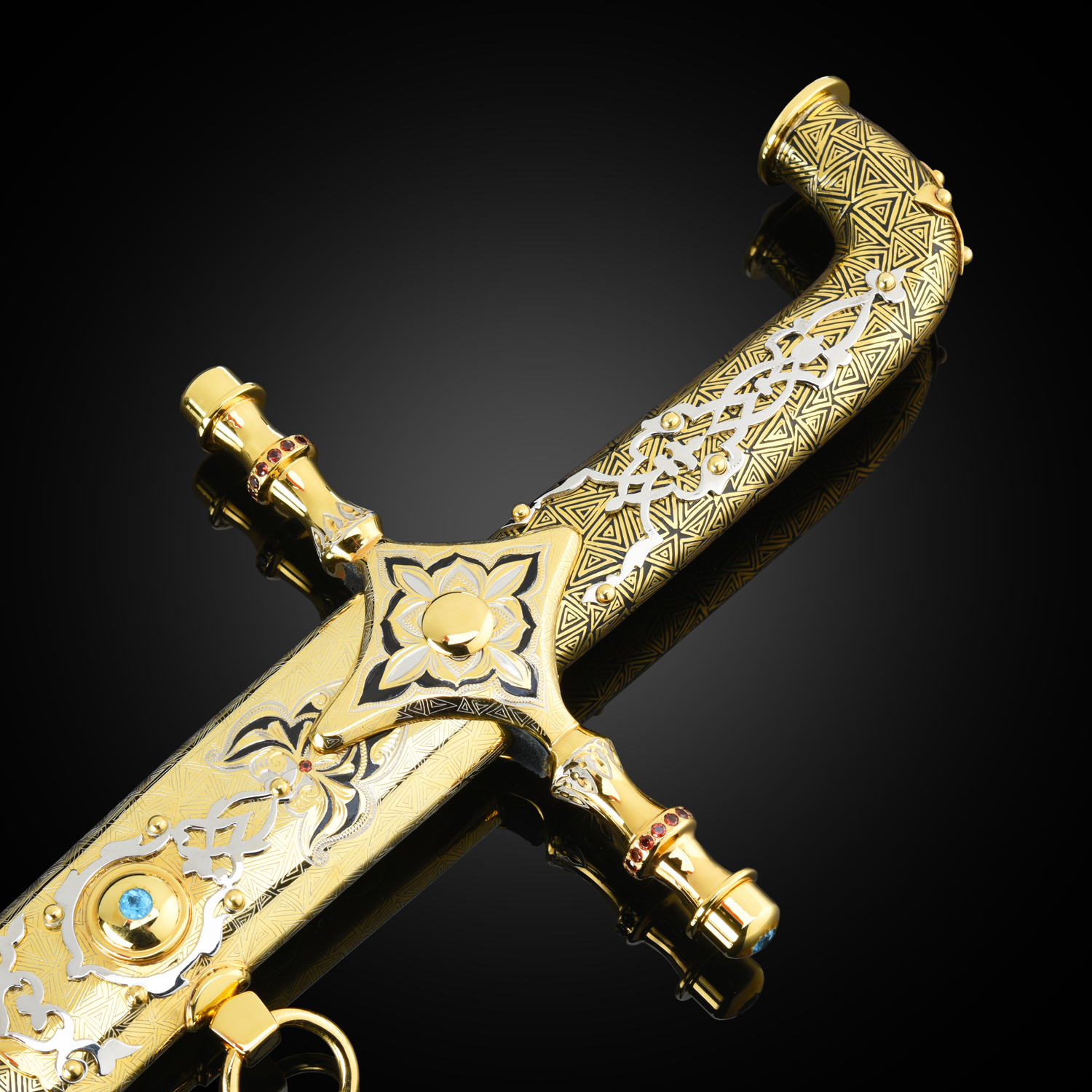 Материалы: дамасская сталь, латунь, никель, золото 999,9*, эмаль, фианиты.