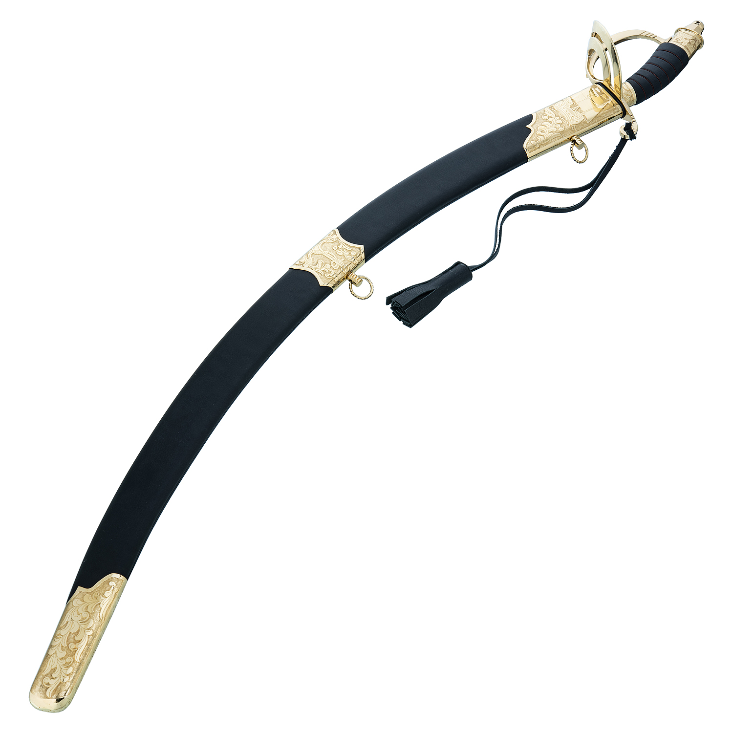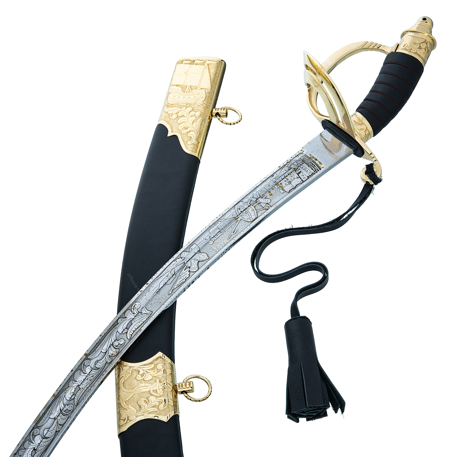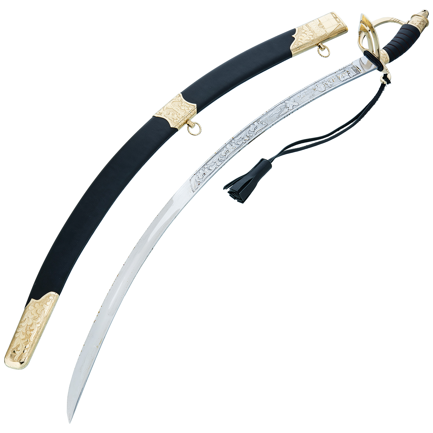 Сабля сувенирная морская "Абордажная".Материал: сталь 95х18, латунь, кожа, золочение.