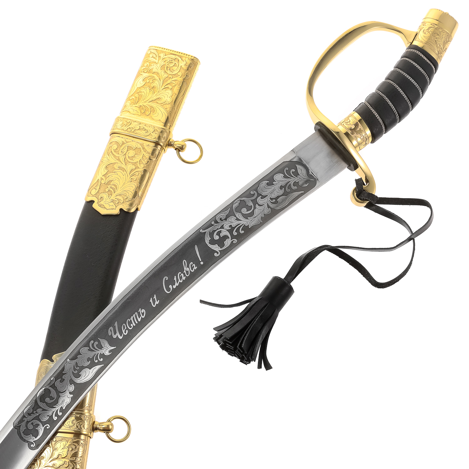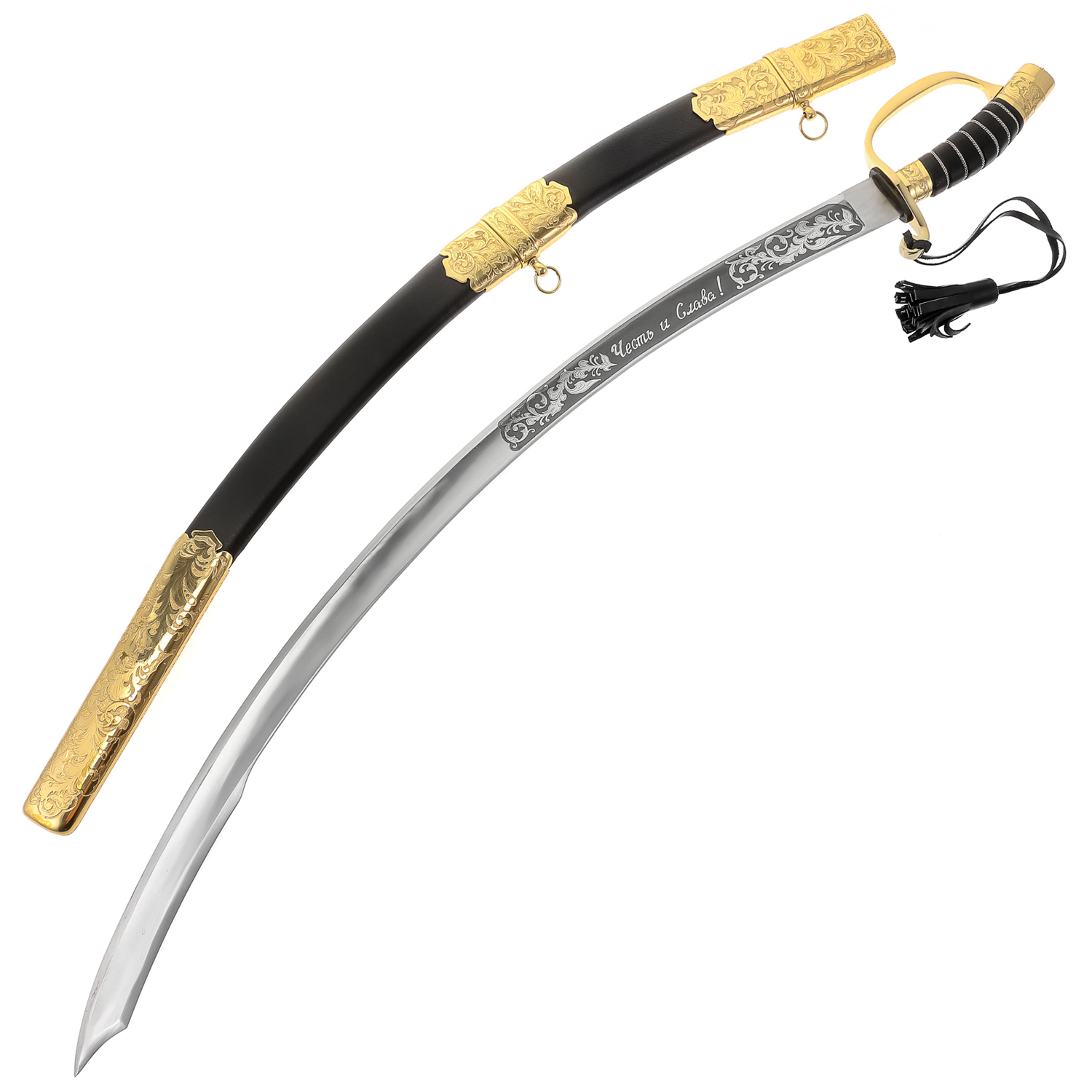 Сабля сувенирная "Сибирская".Материал: сталь 95х18, латунь, кожа, золочение.