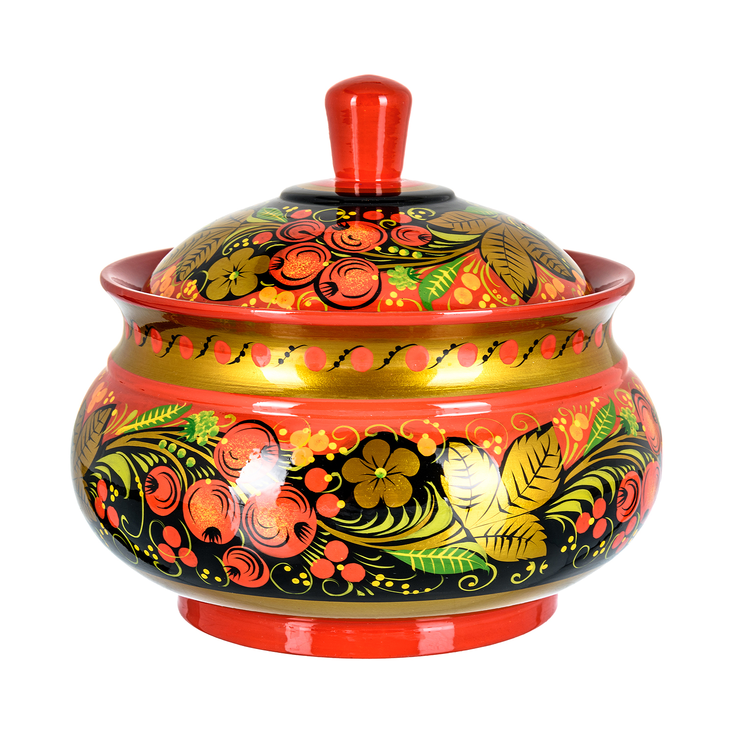 Сахарница "Вишня". Хохлома