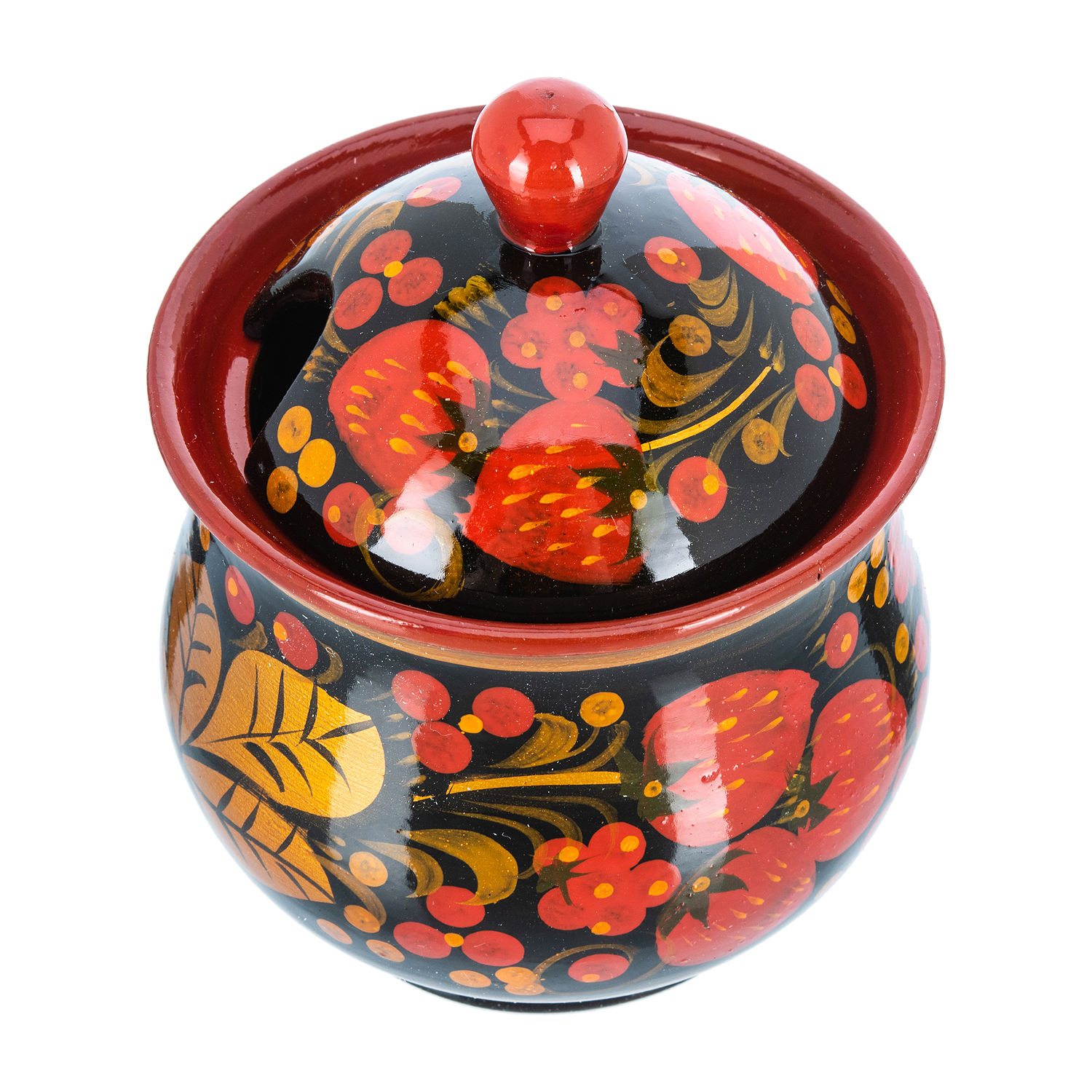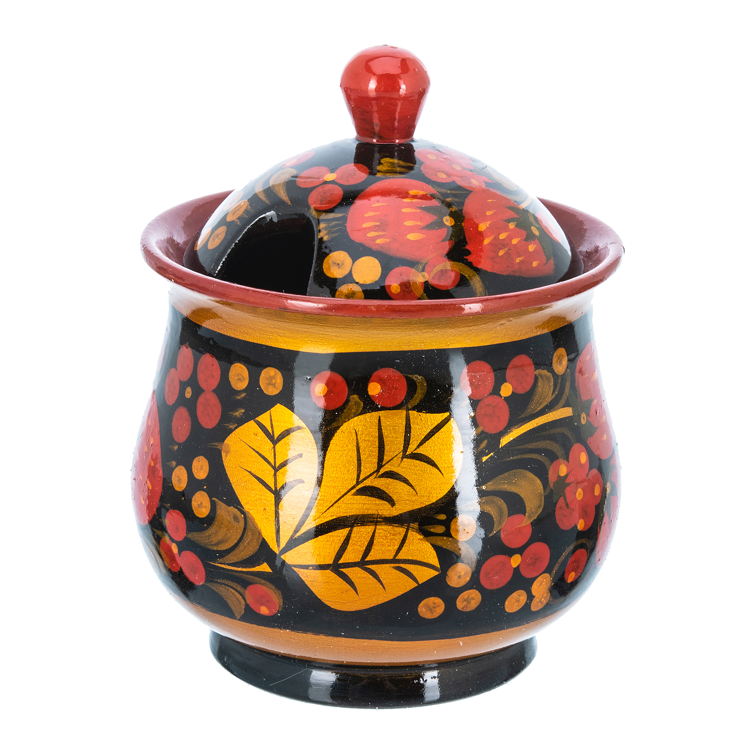 Сахарница с росписью. Хохлома.Материалы: дерево, краски, лак.