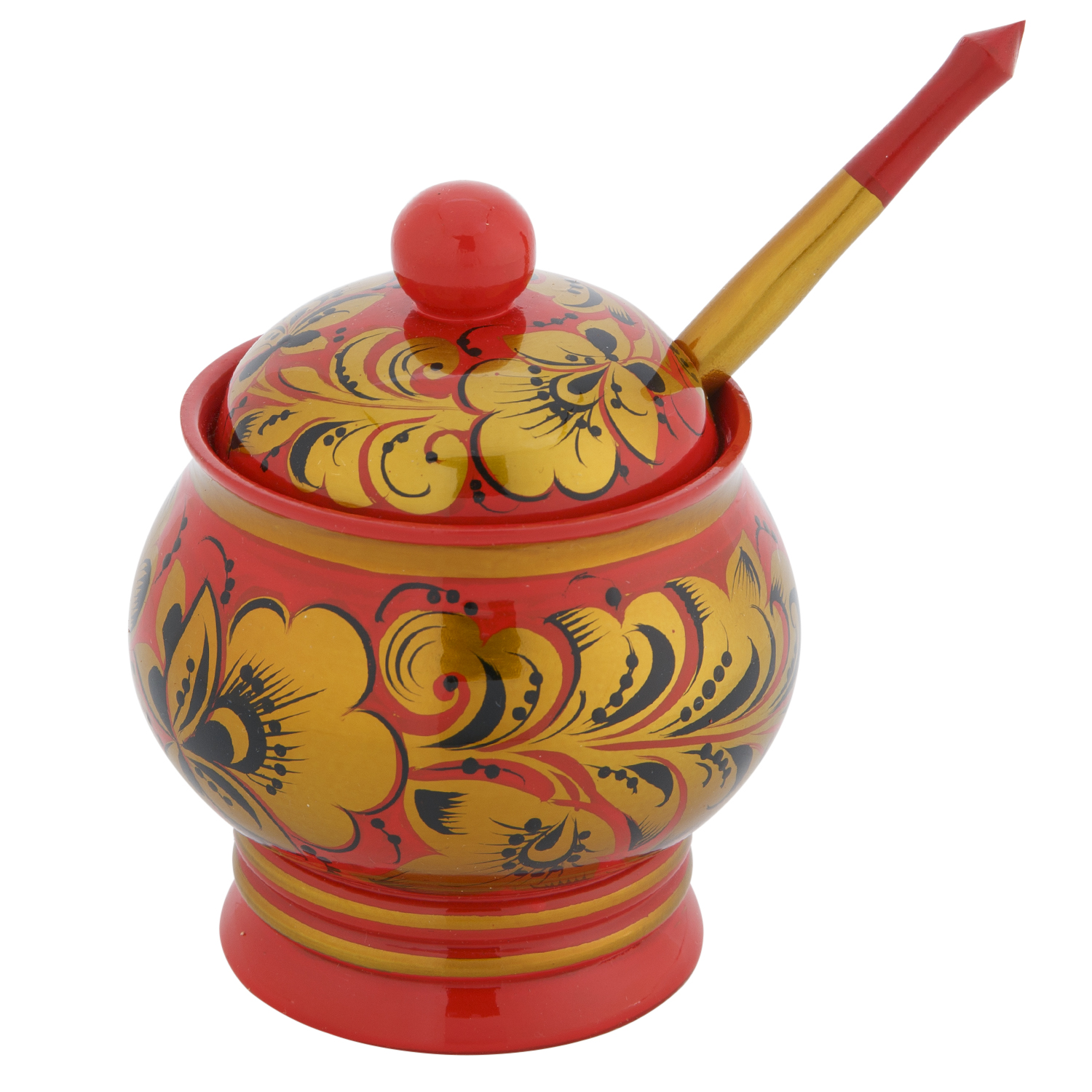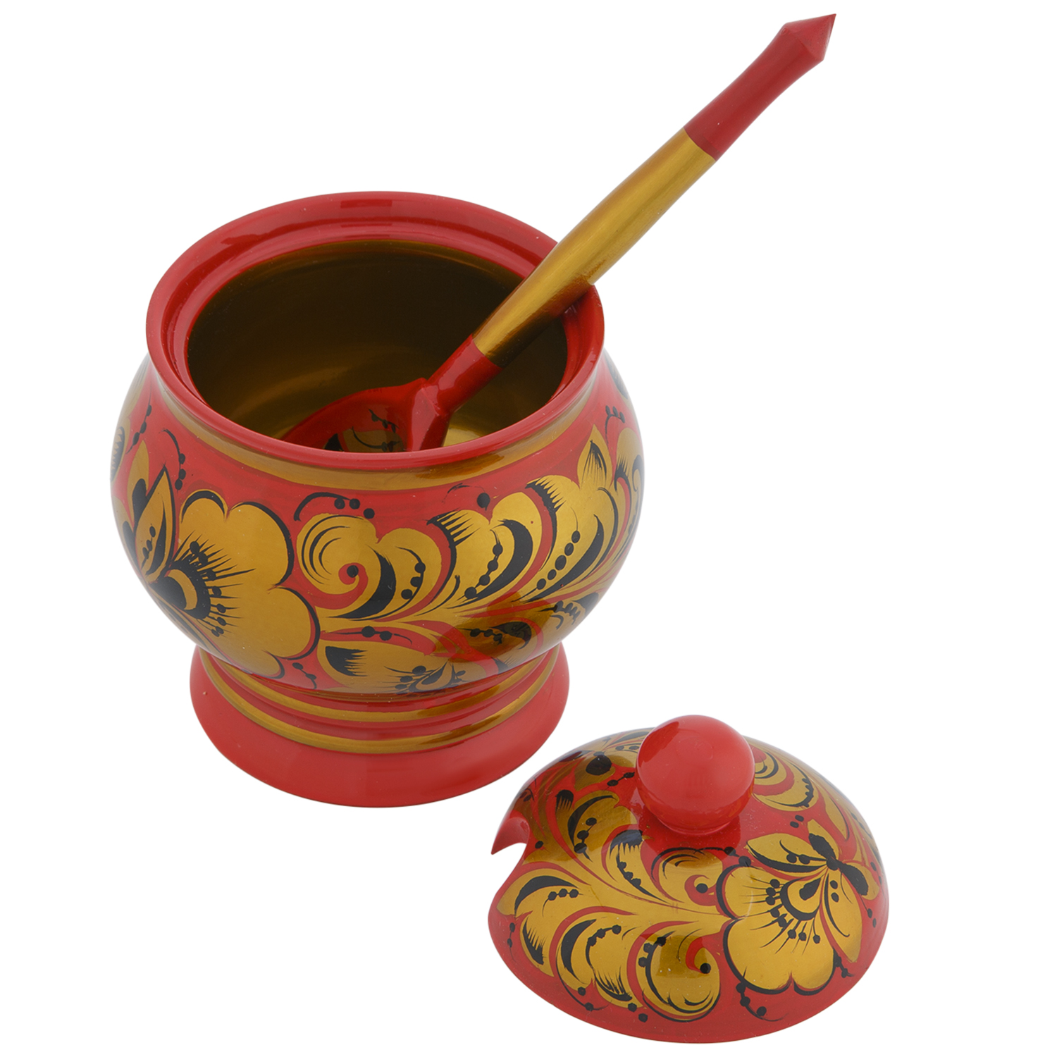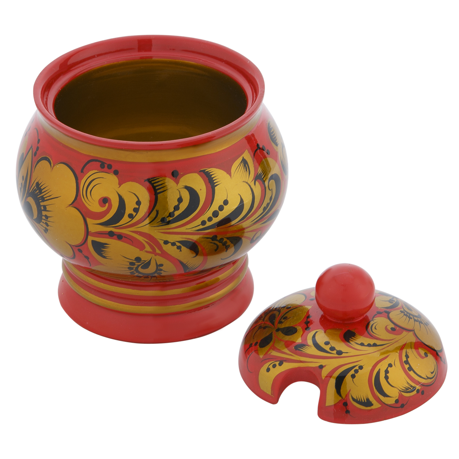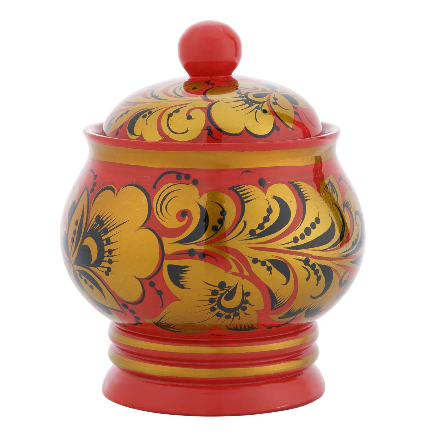 Сахарница "Кудрина красная". Хохлома.Материалы: дерево, краски, лак.