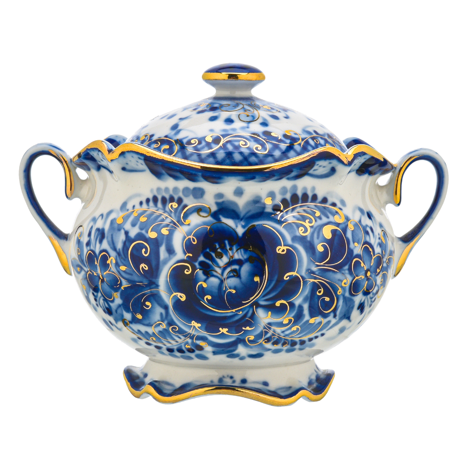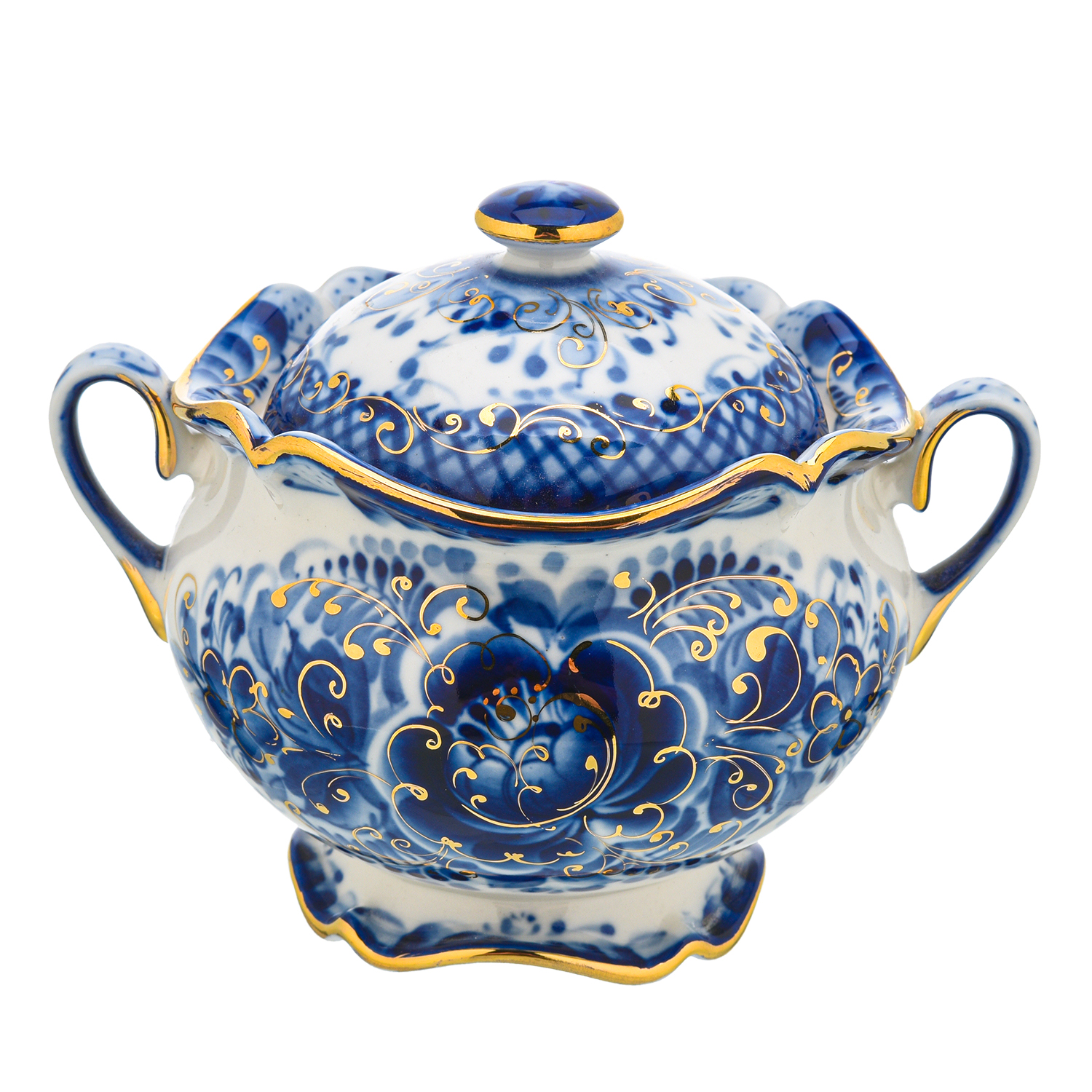 Сахарница "Тюльпан". Гжель в золоте.Материал: фарфор.