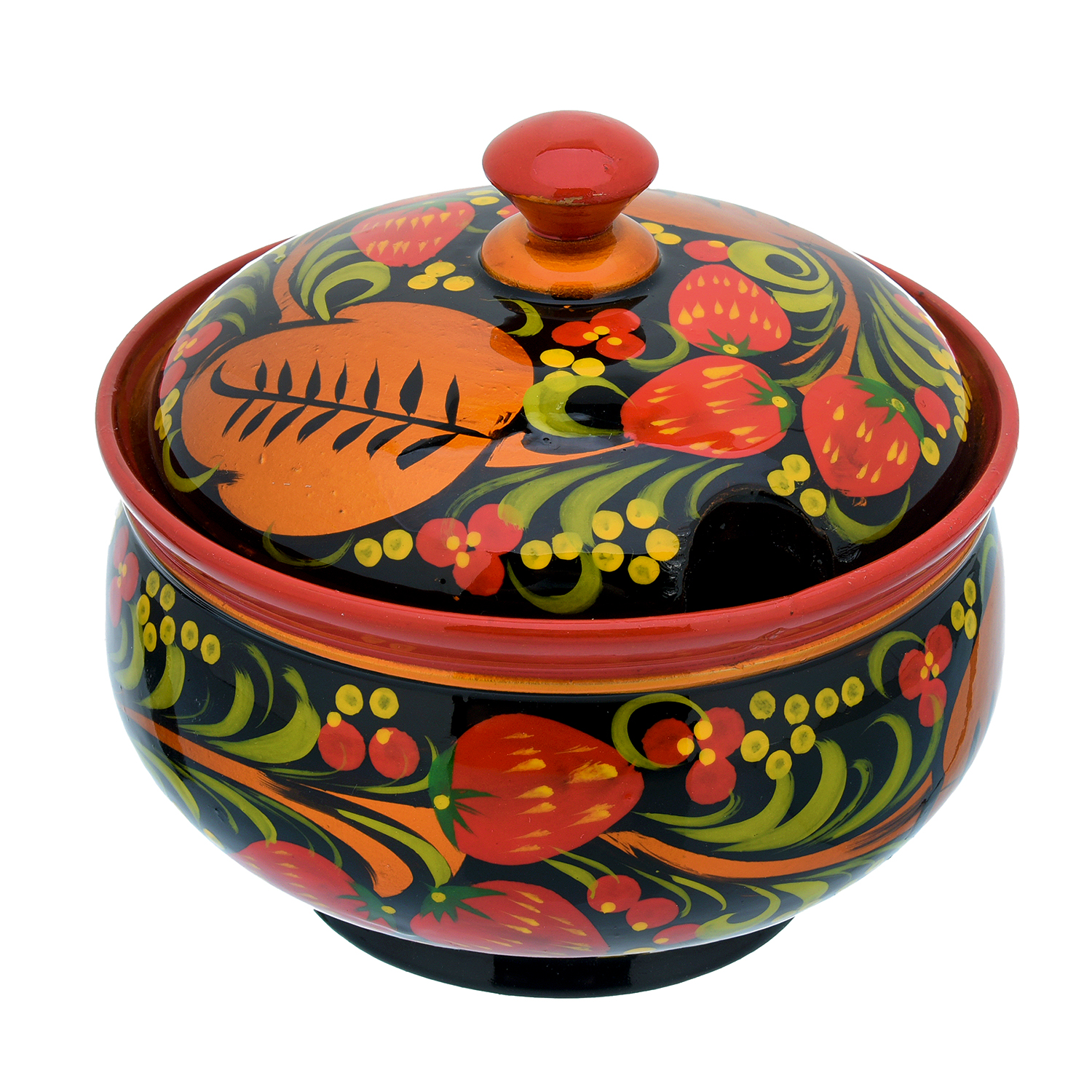 Сахарница "Клубника". Хохлома