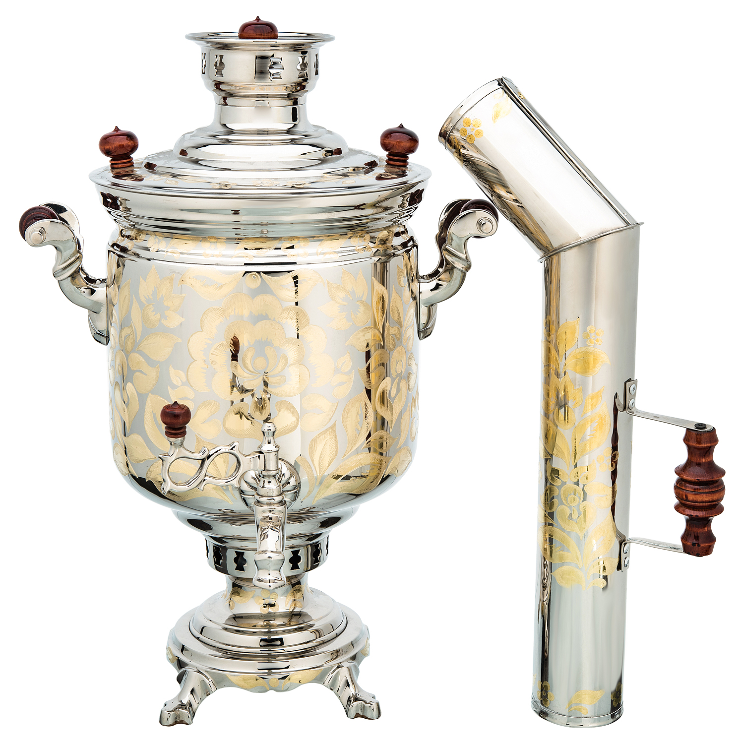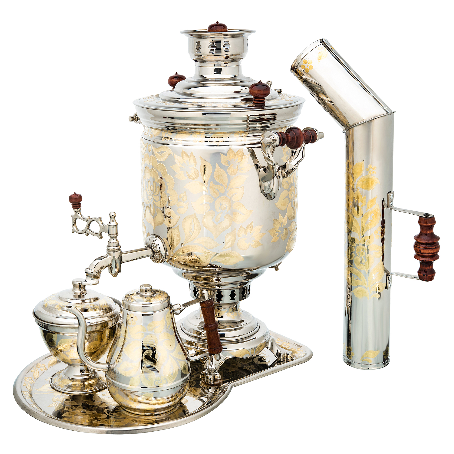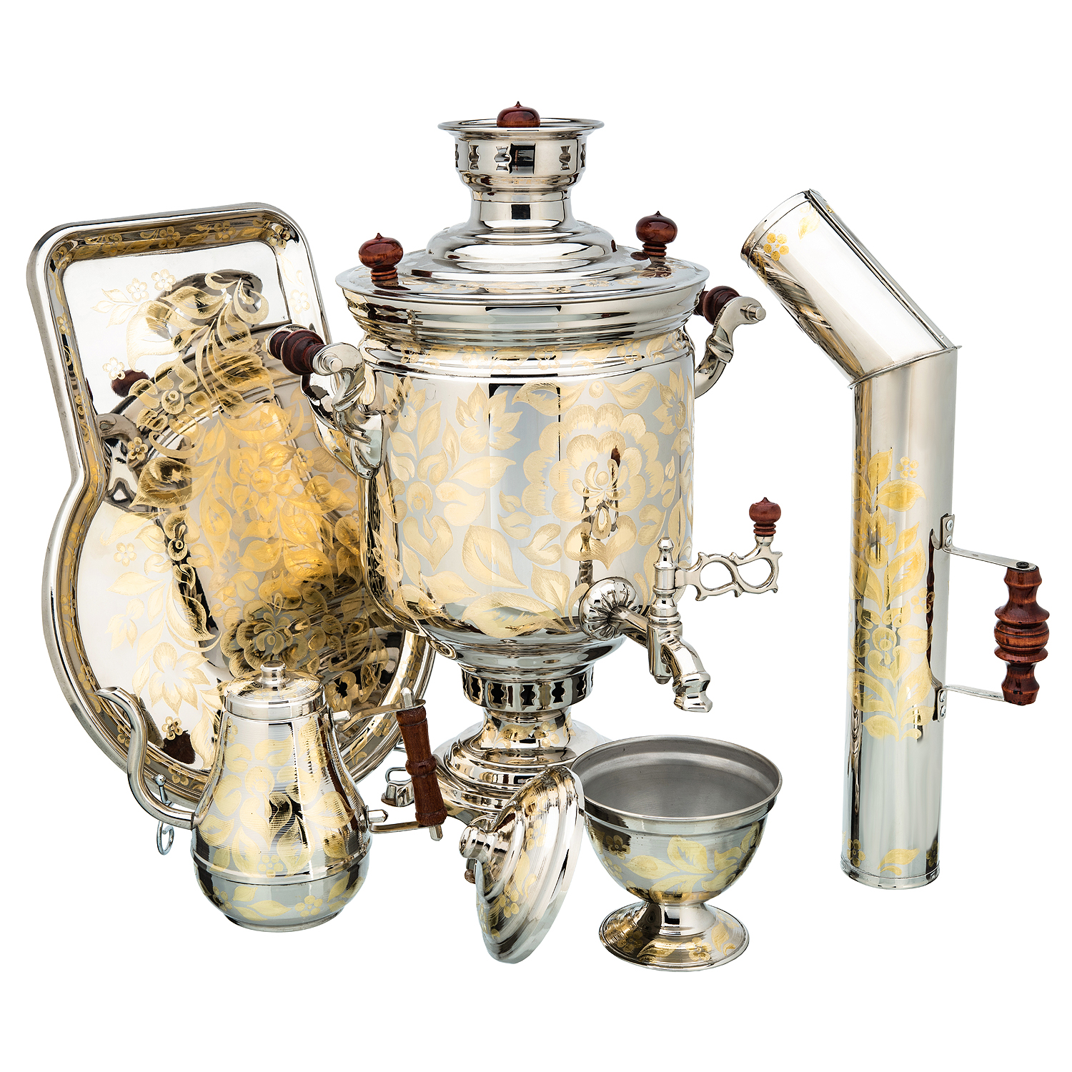 Самовар комбинированный 7 л с набором "Цветочный".Материалы: латунь.