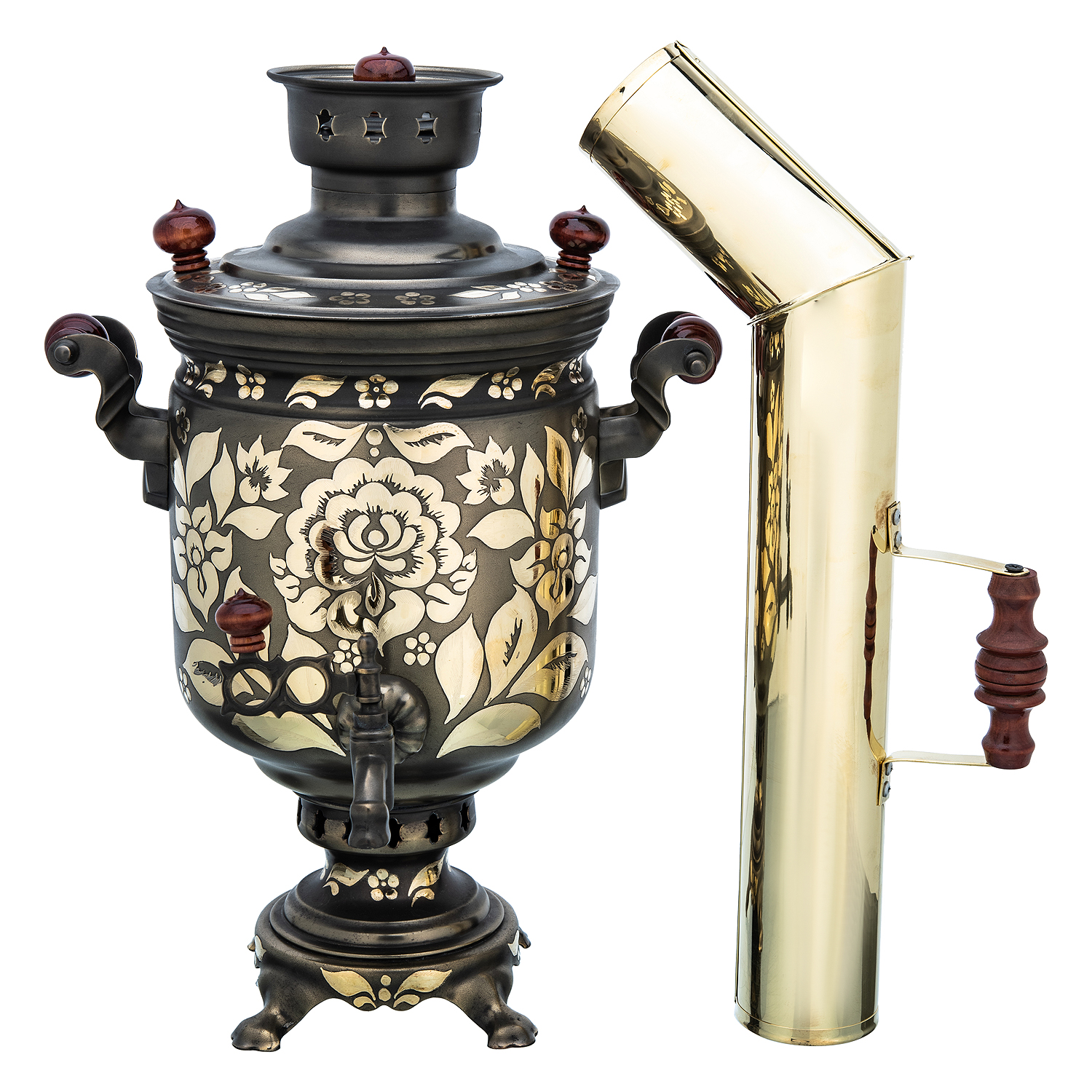 Самовар латунный комбинированный 5 л "Цветы"
