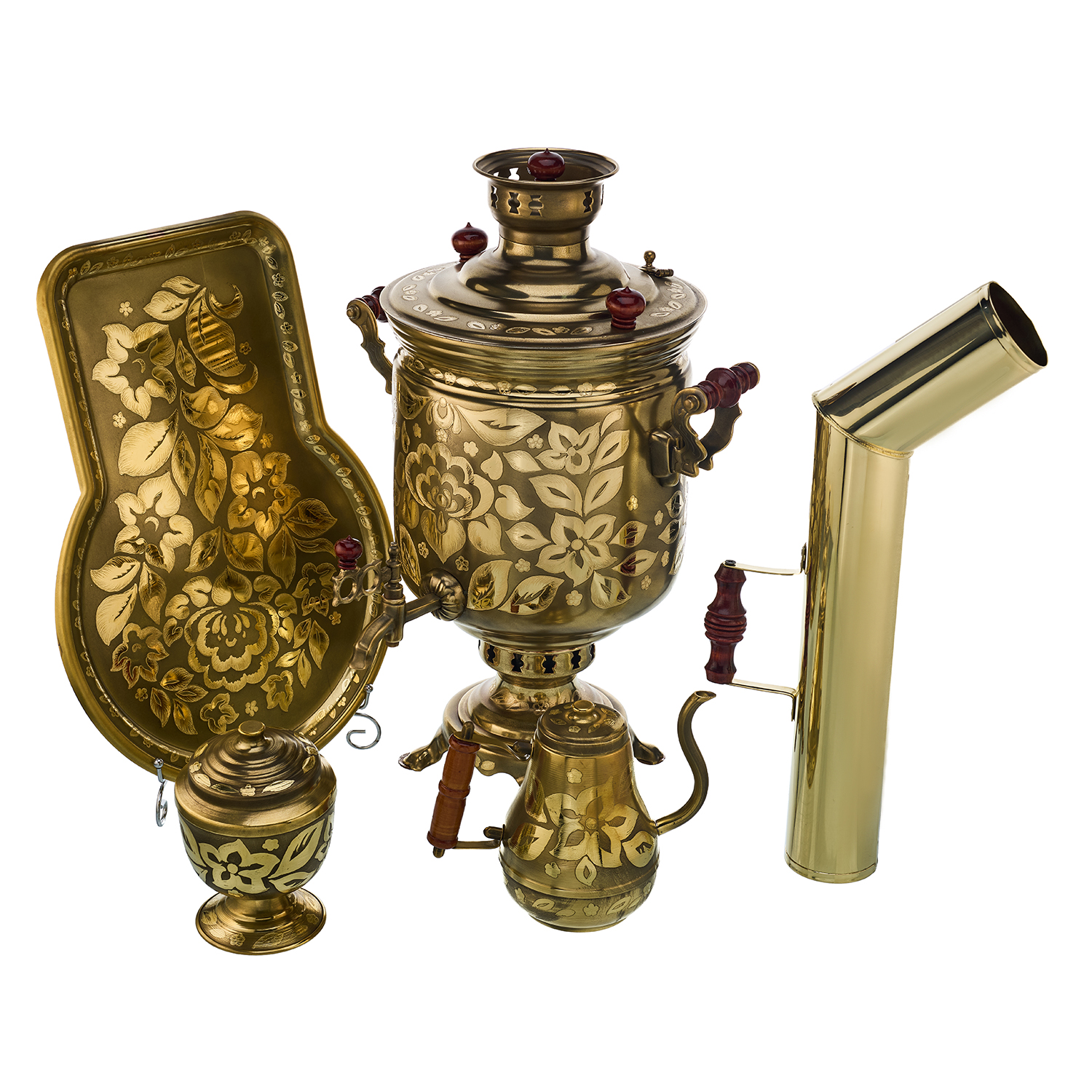 Самовар комбинированный 7 л с гравировкой "Цветочек".