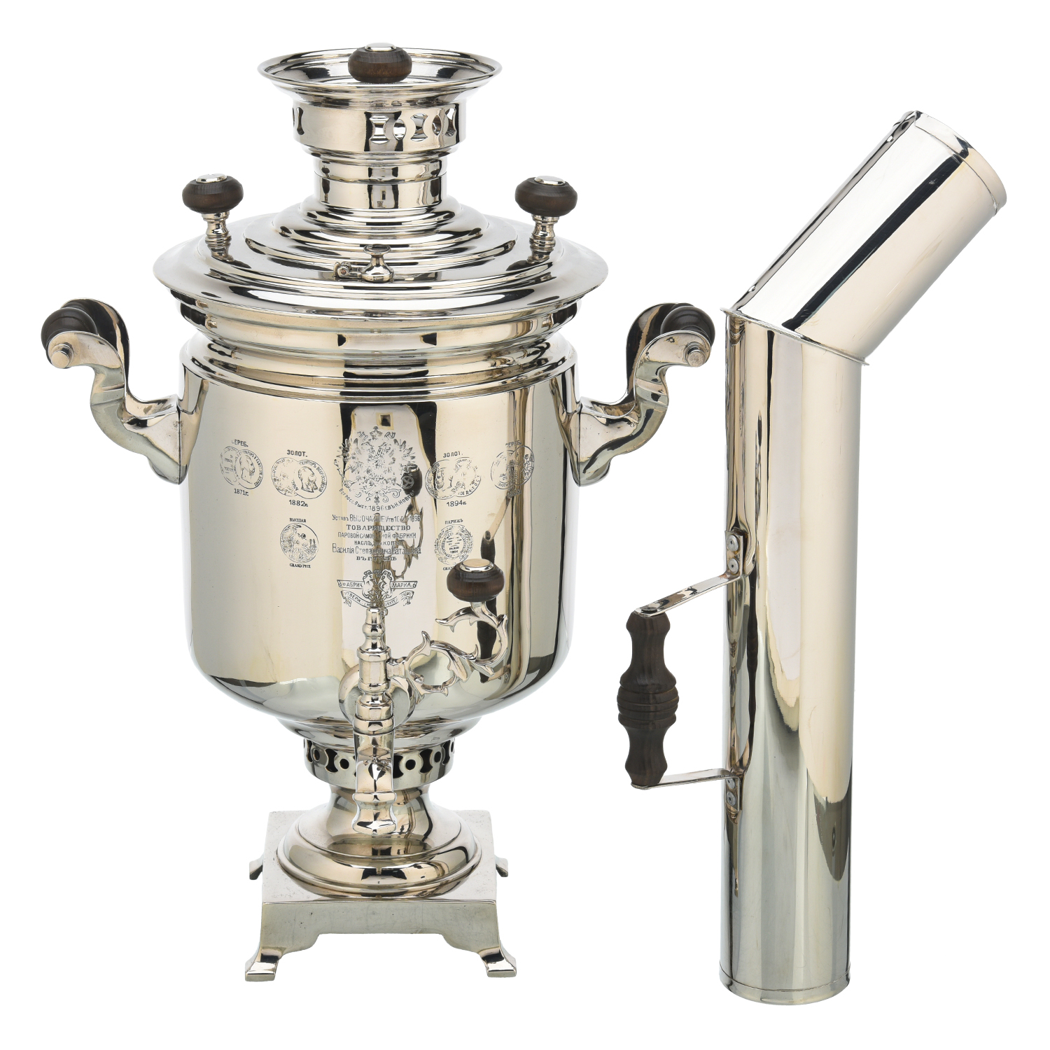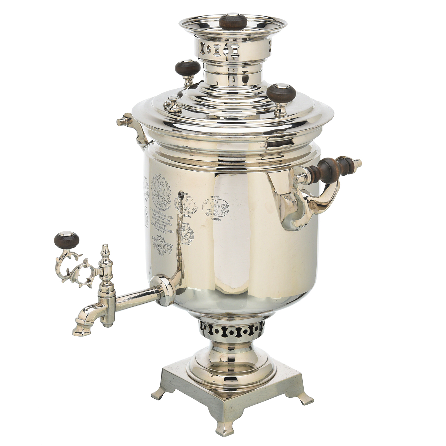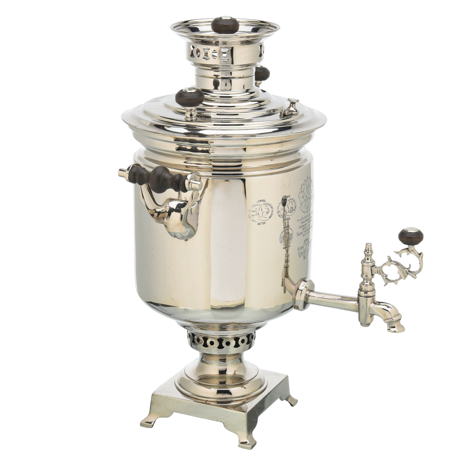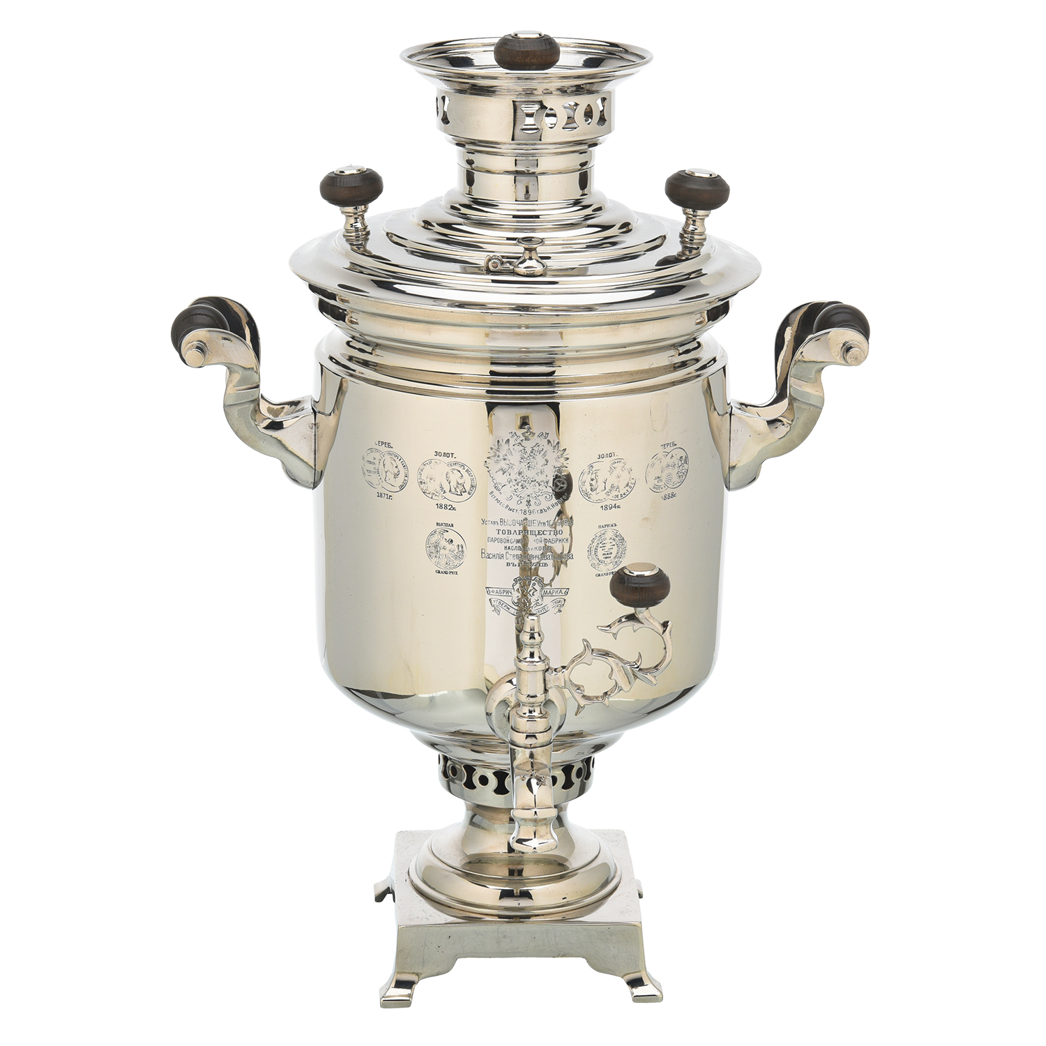 Самовар Баташева медальный жаровой 5 л. Форма Банка.Материалы: латунь, никель.
