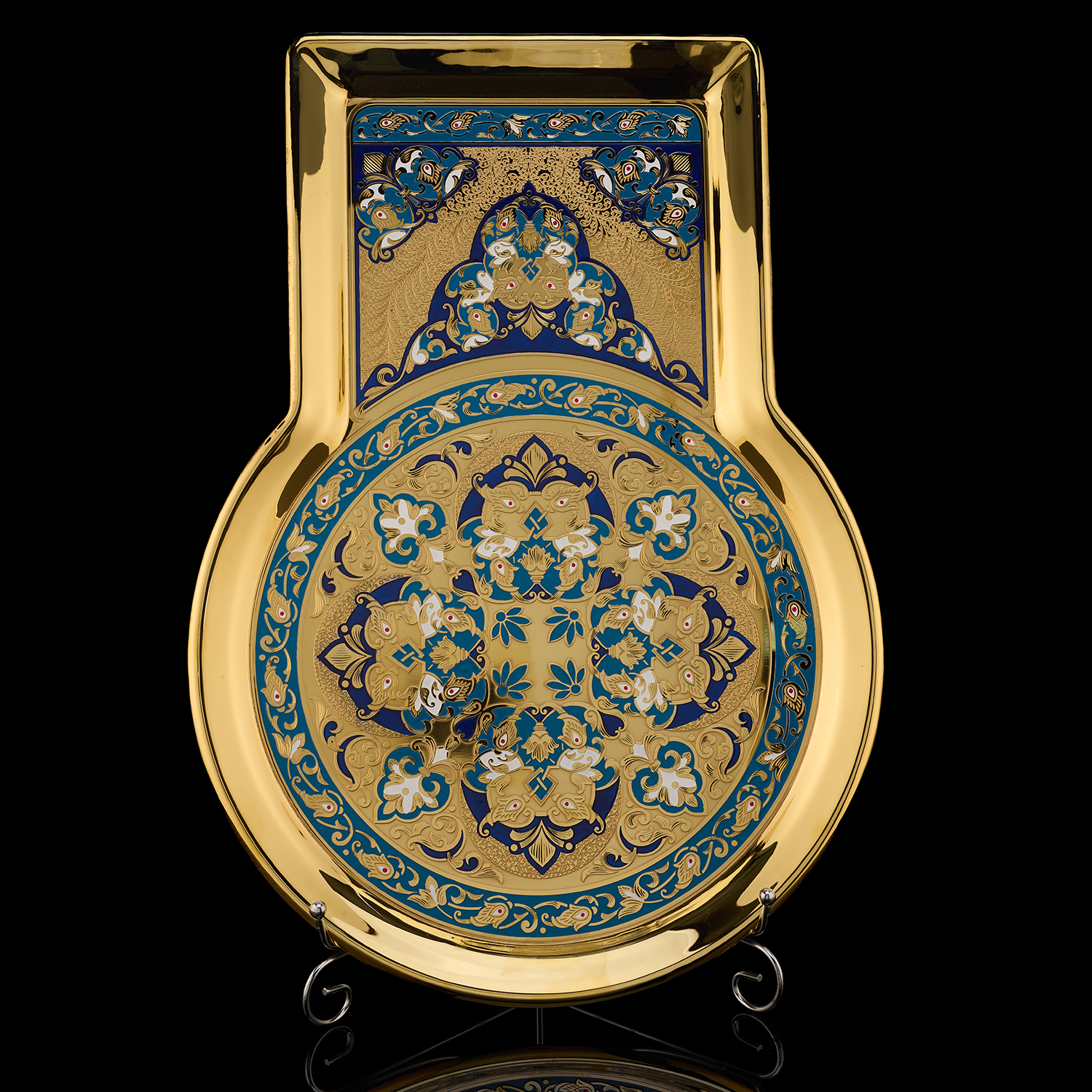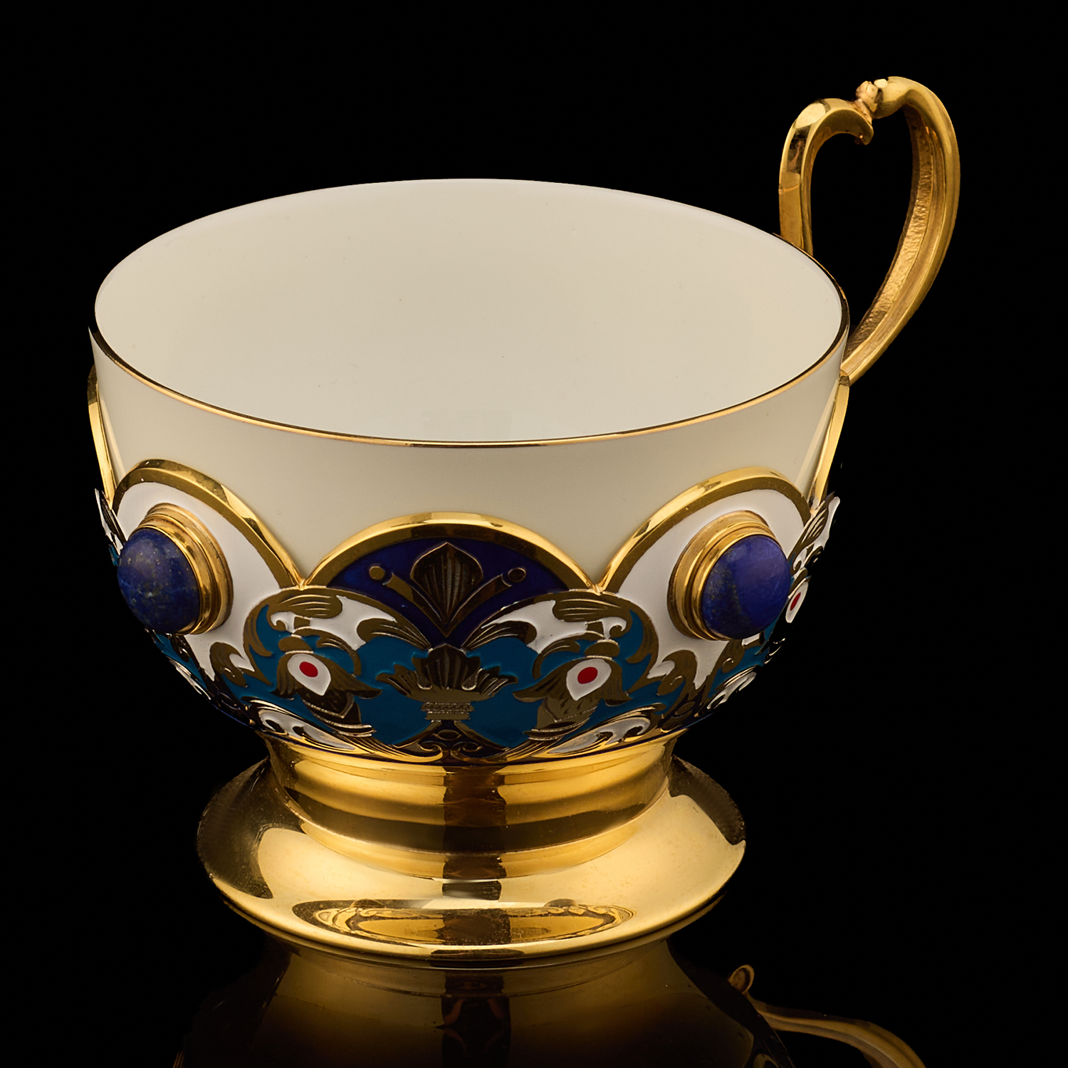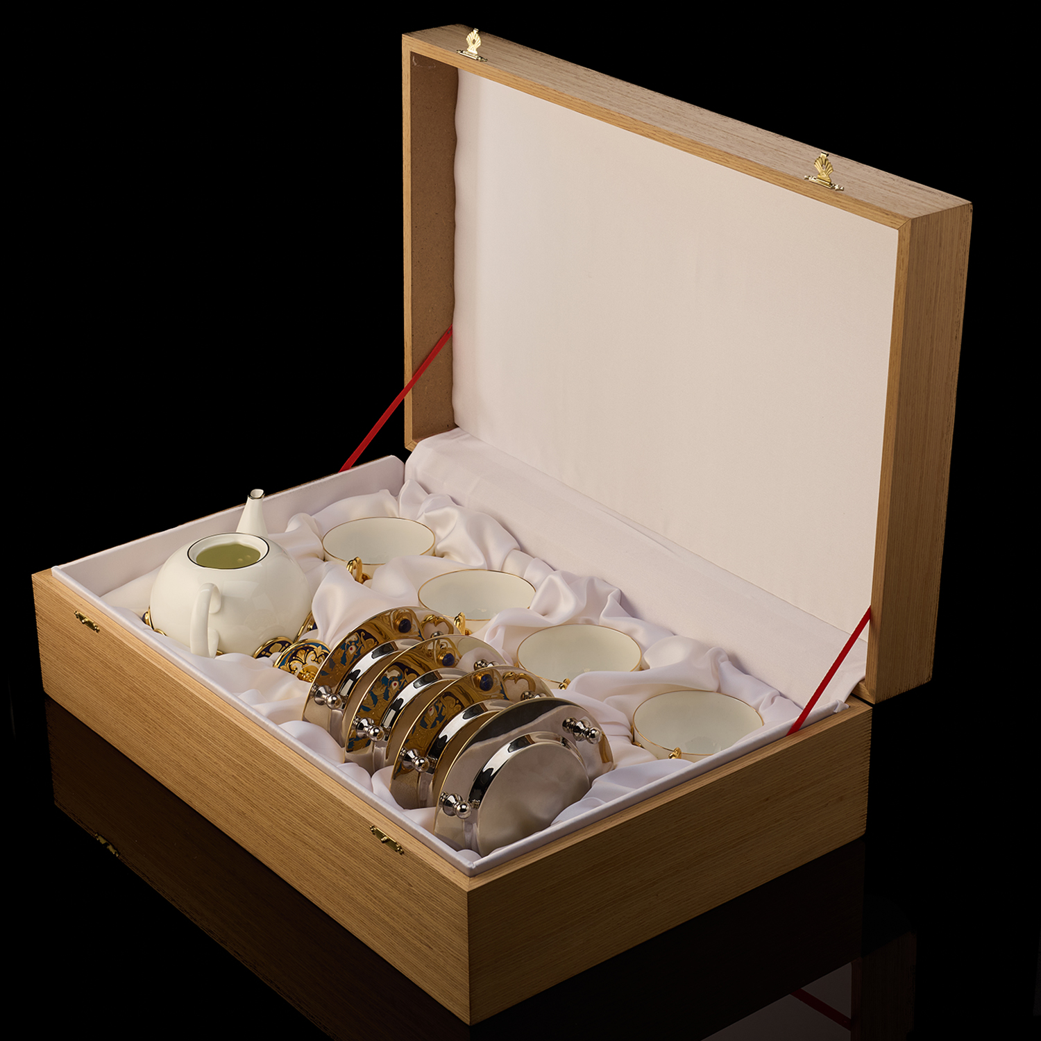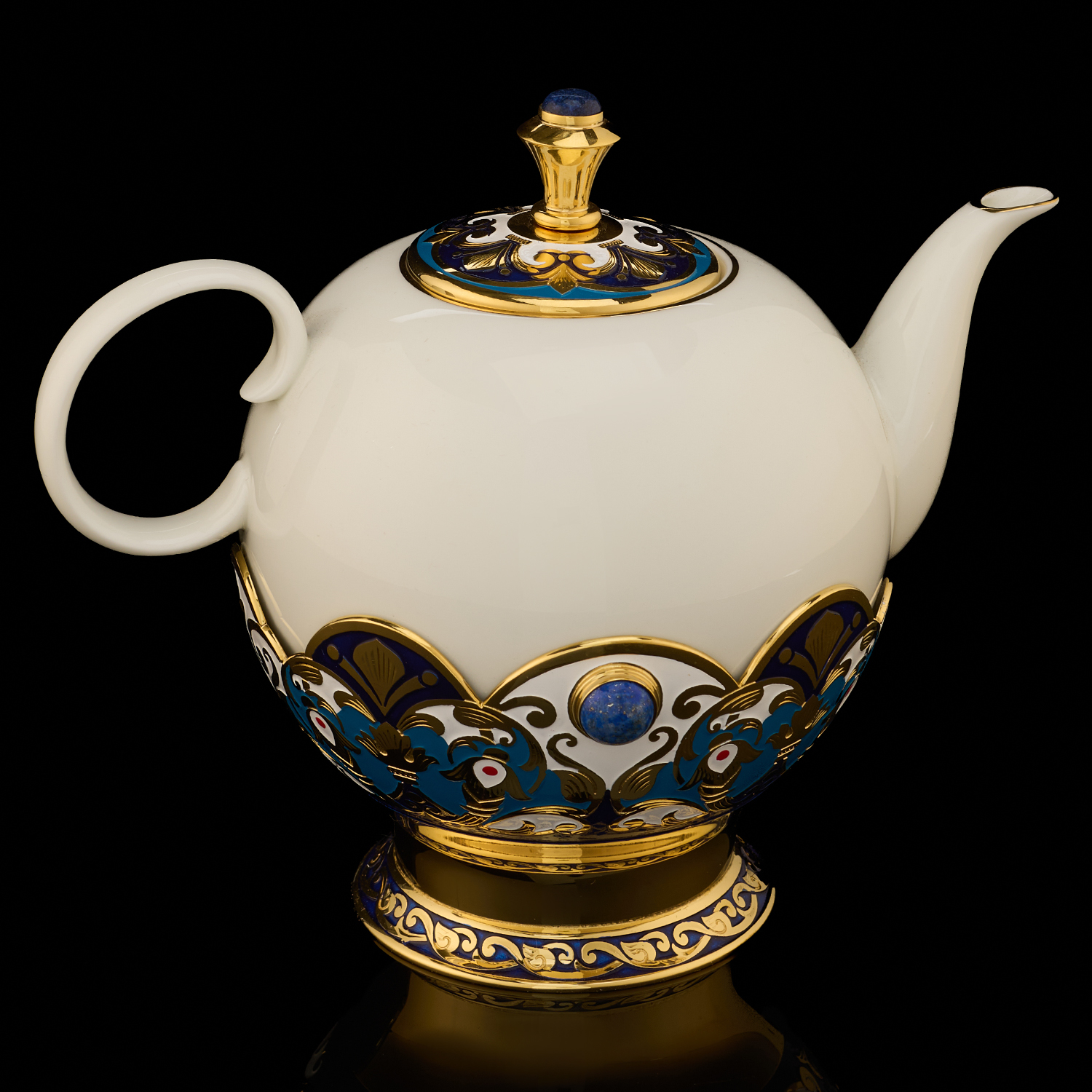 Самовар 3 л с сервизом на 4 персоны "Чаепитие". Златоуст.Материалы: латунь, никель, золото 999,9*, эмаль, лазурит, костяной фарфор.