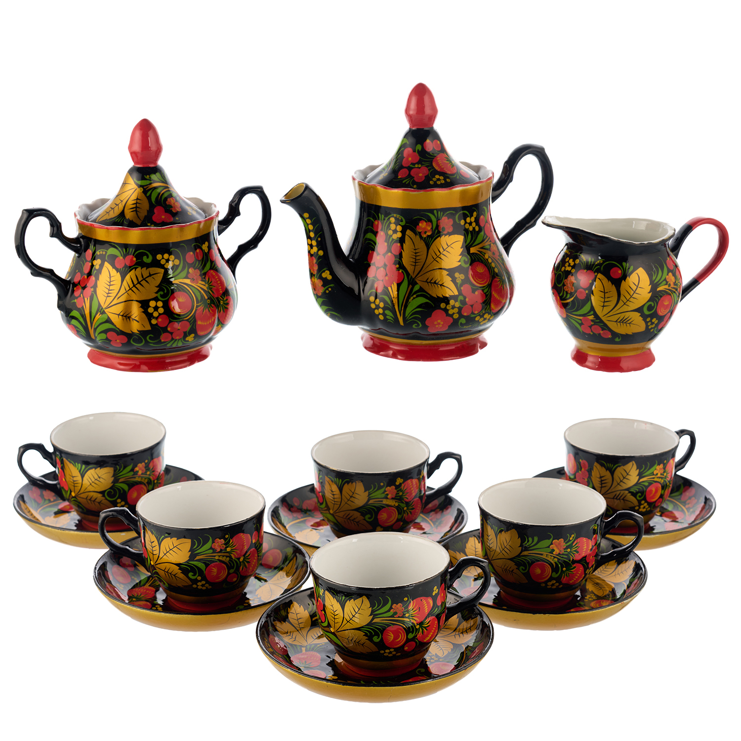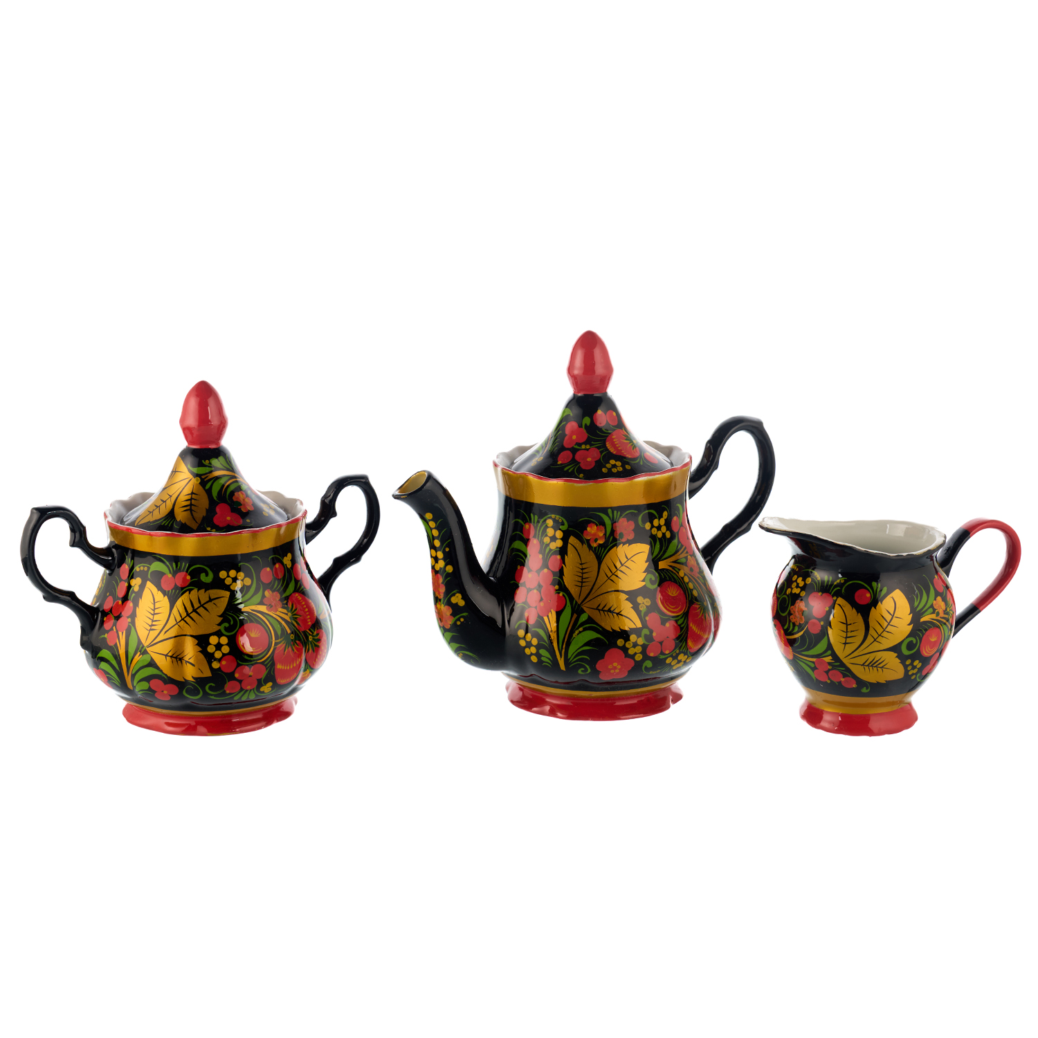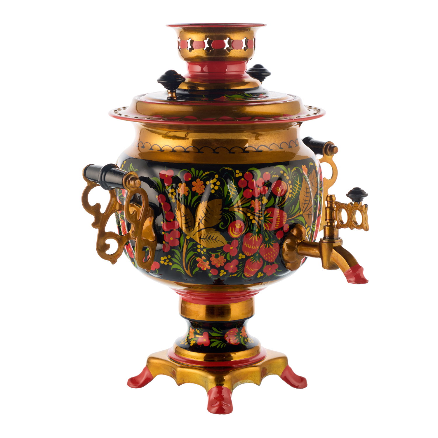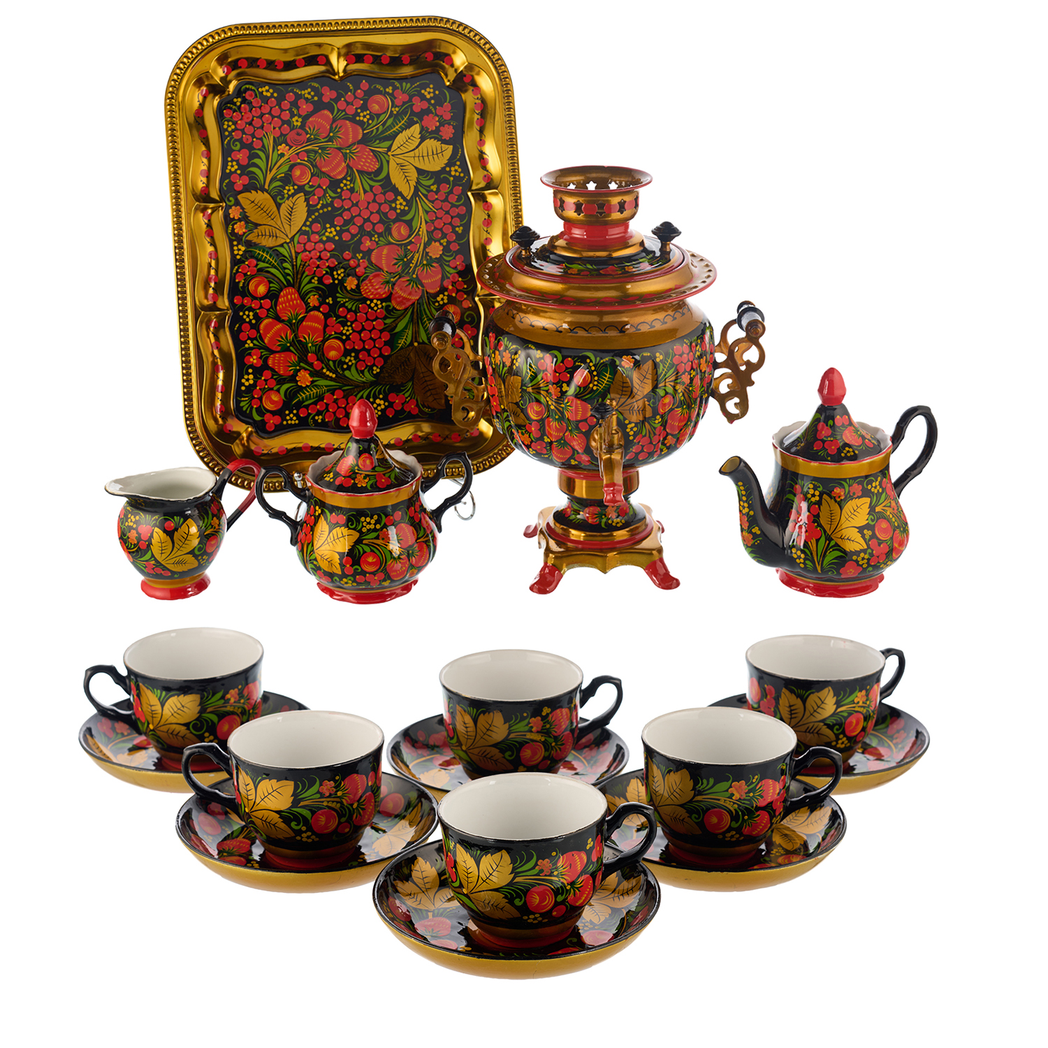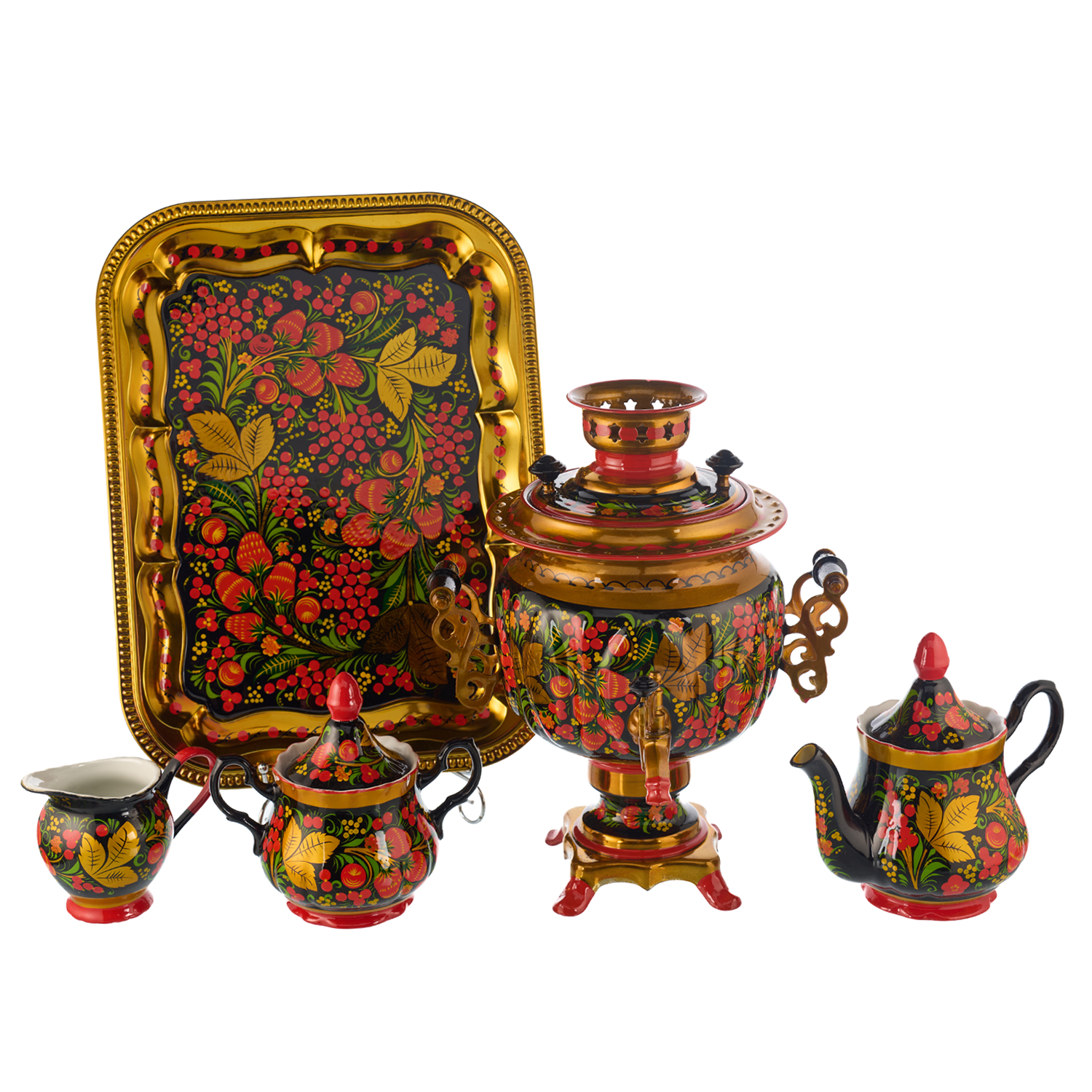 Самовар электрический 3 л с сервизом "Клубника". Хохлома.
