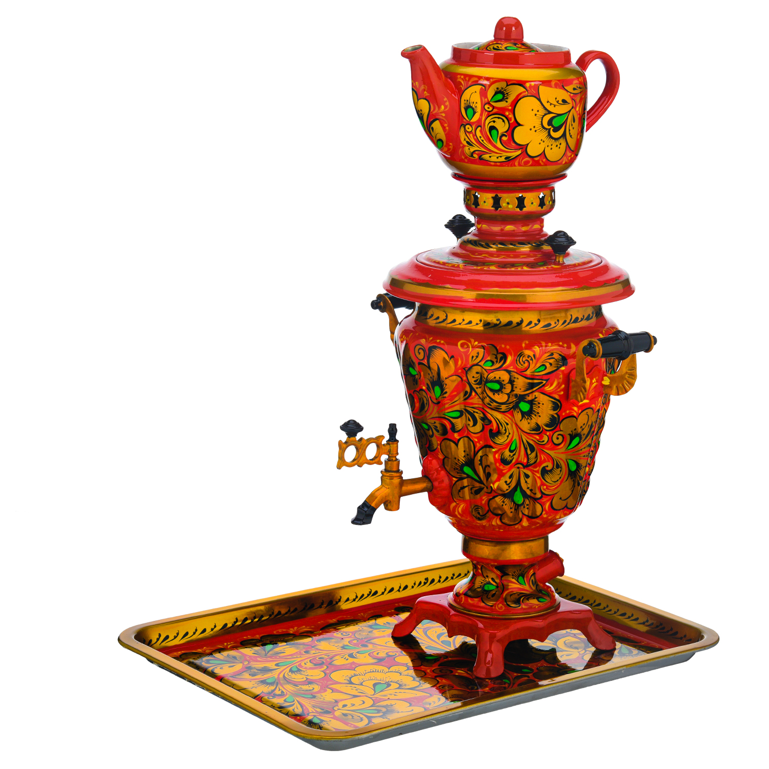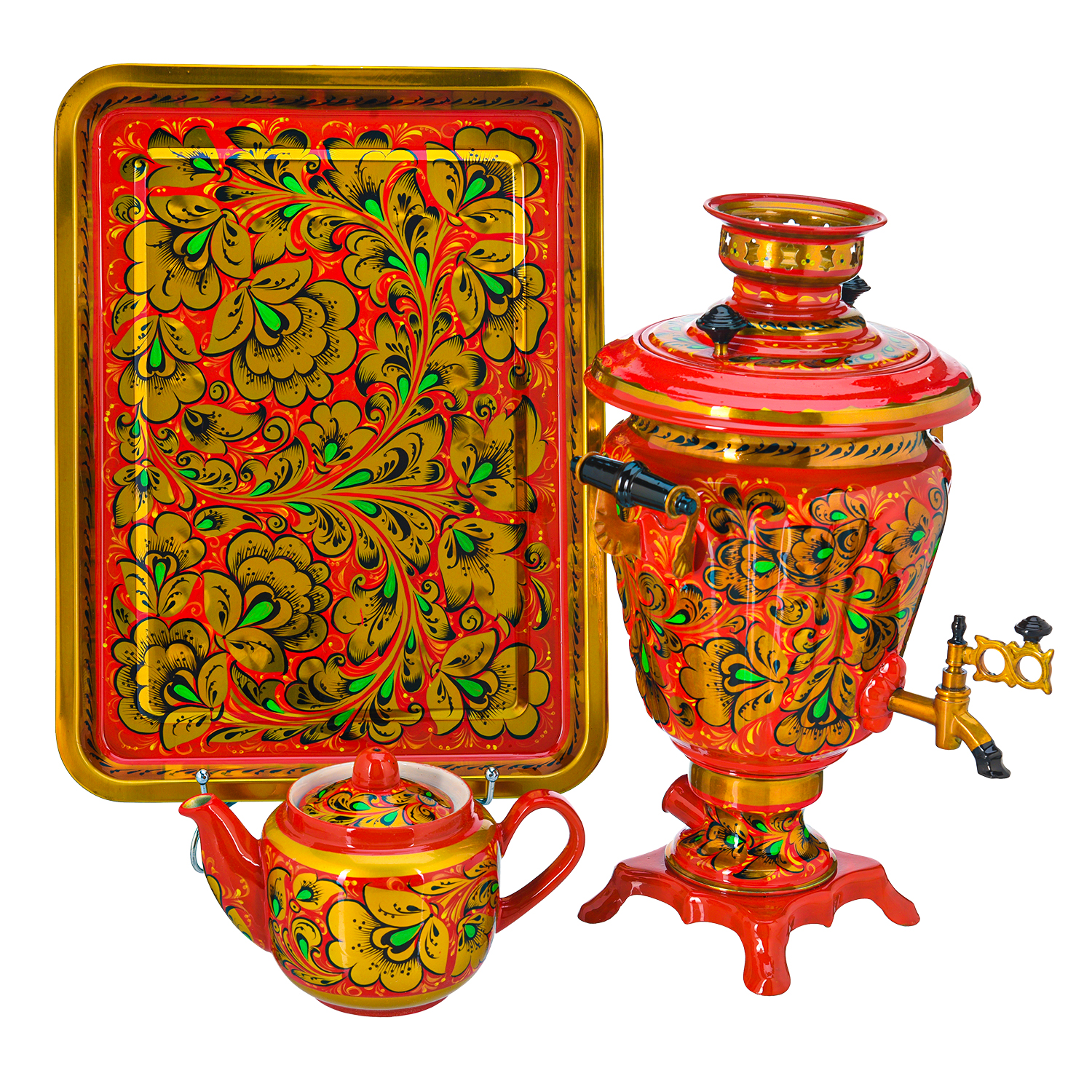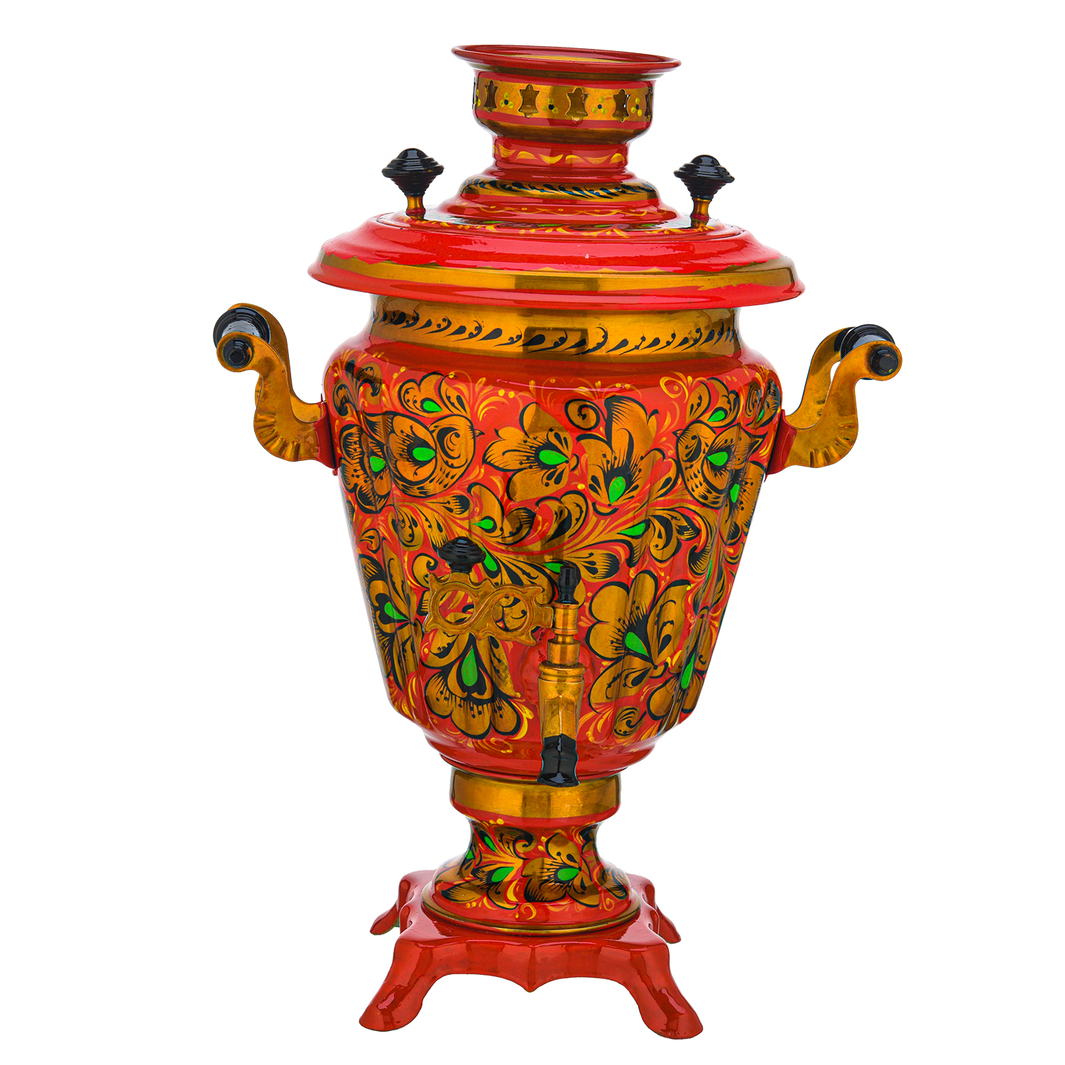 Самовар электрический 3 л "Кудрина". Хохлома.Материалы: латунь, фарфор, краски, лак.