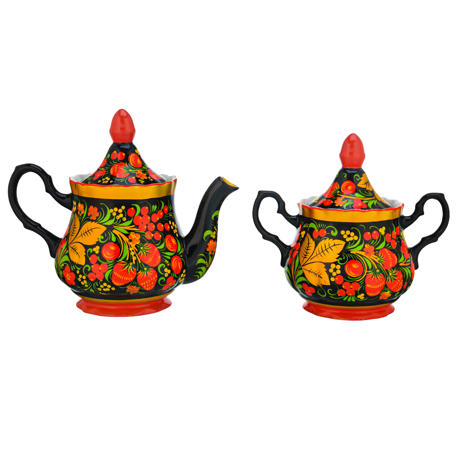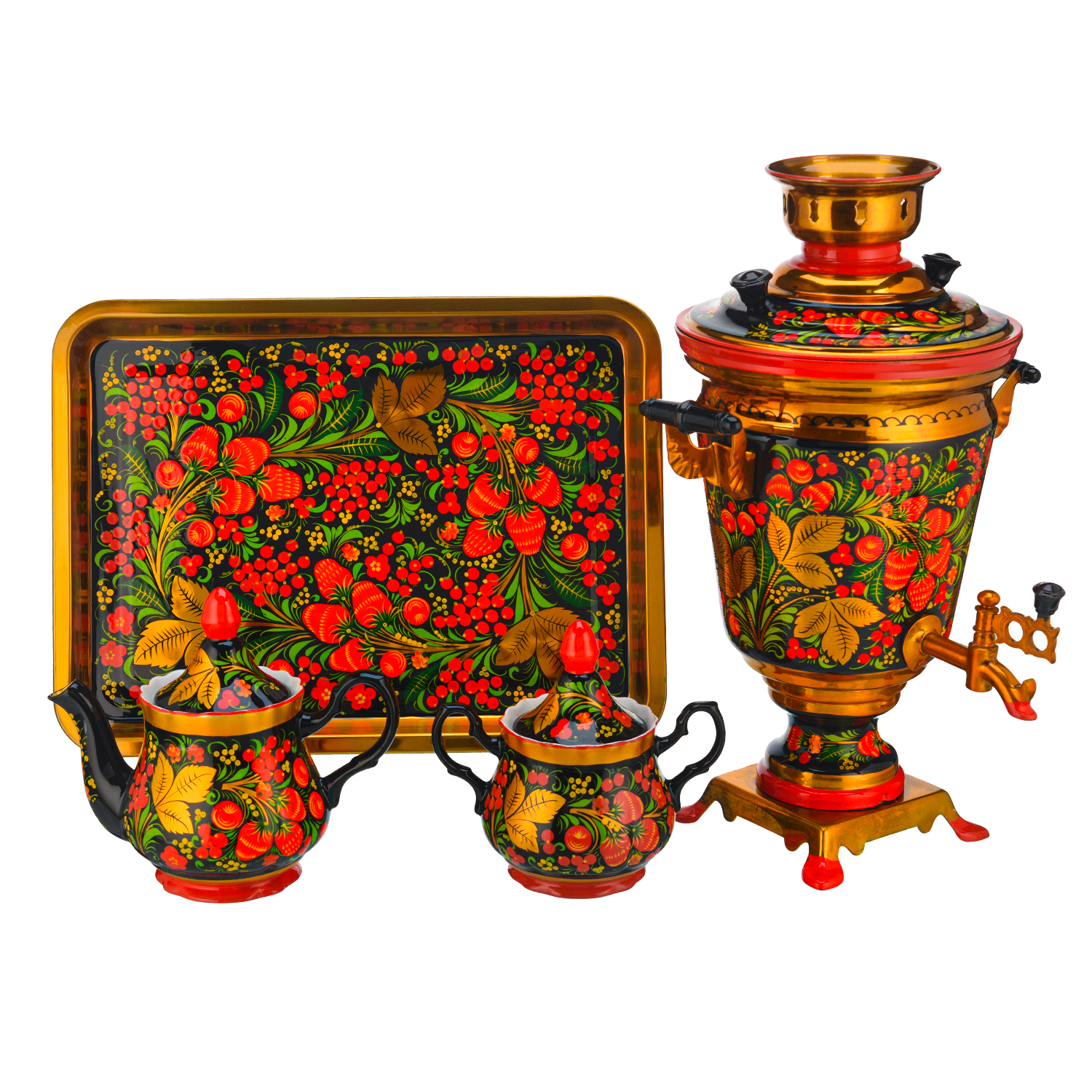 Самовар электрический 4 л с сервизом "Клубника". Хохлома