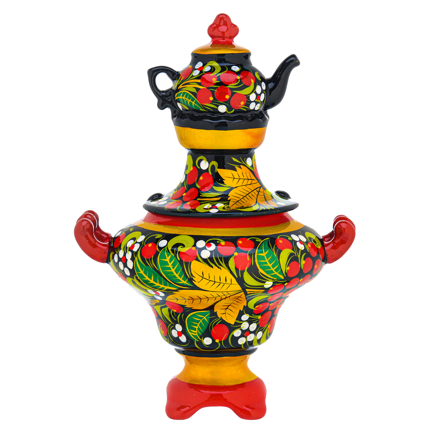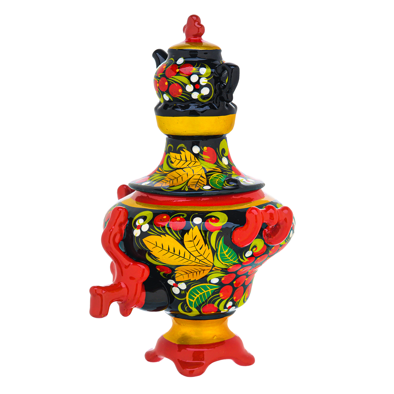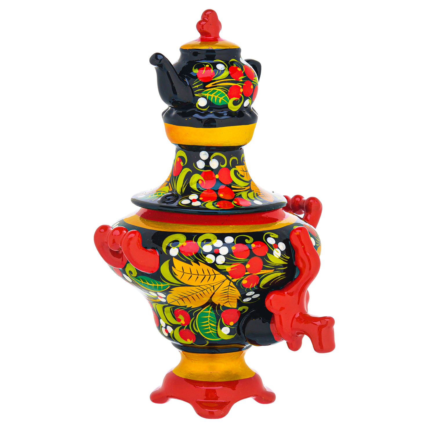 Сувенирный самовар-шкатулка "Рябина". Хохлома.Материалы: керамика, краски, лак.