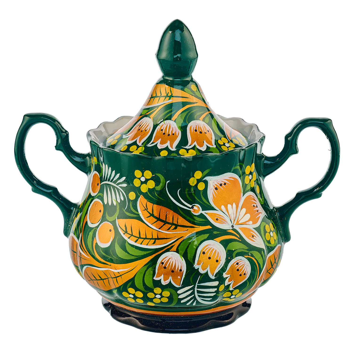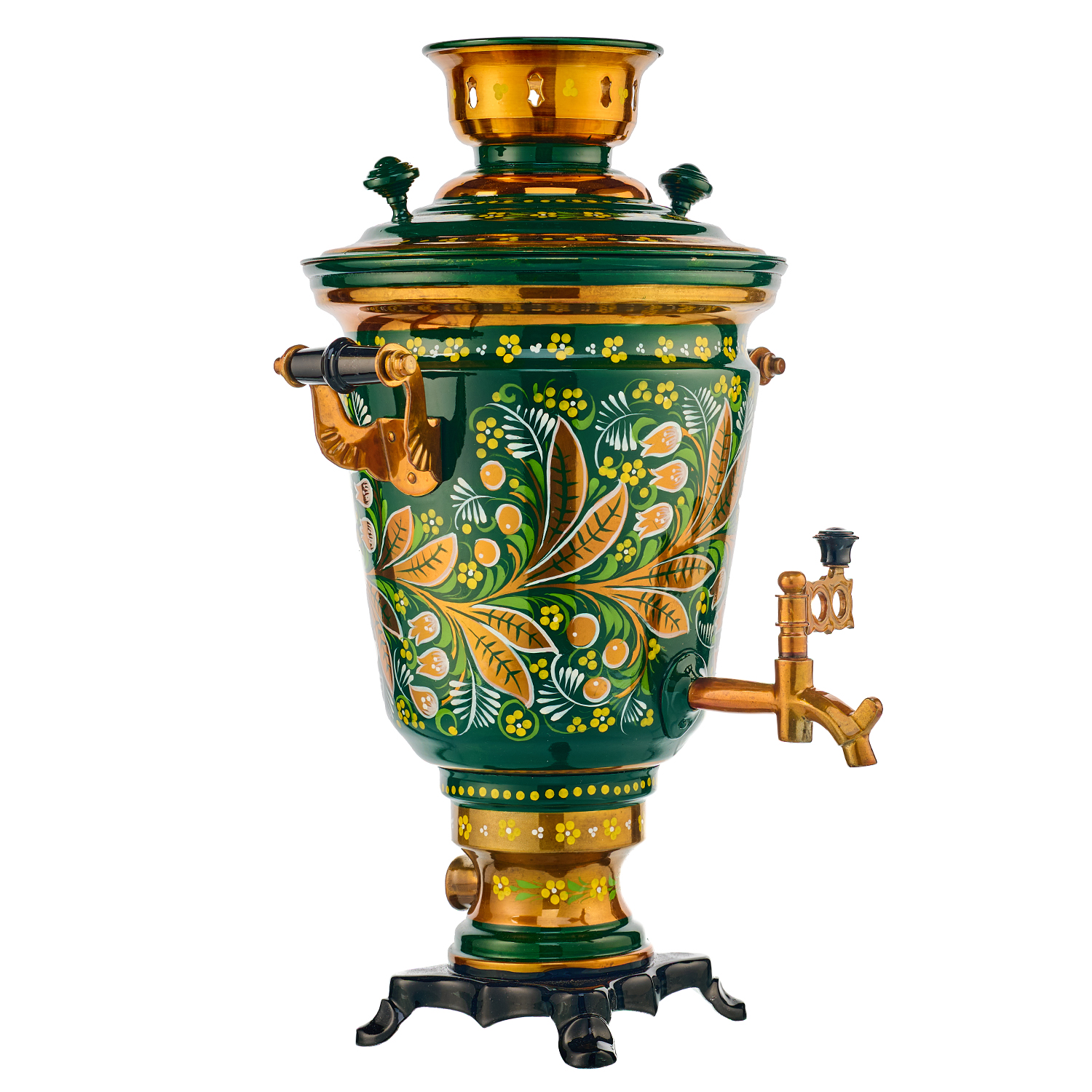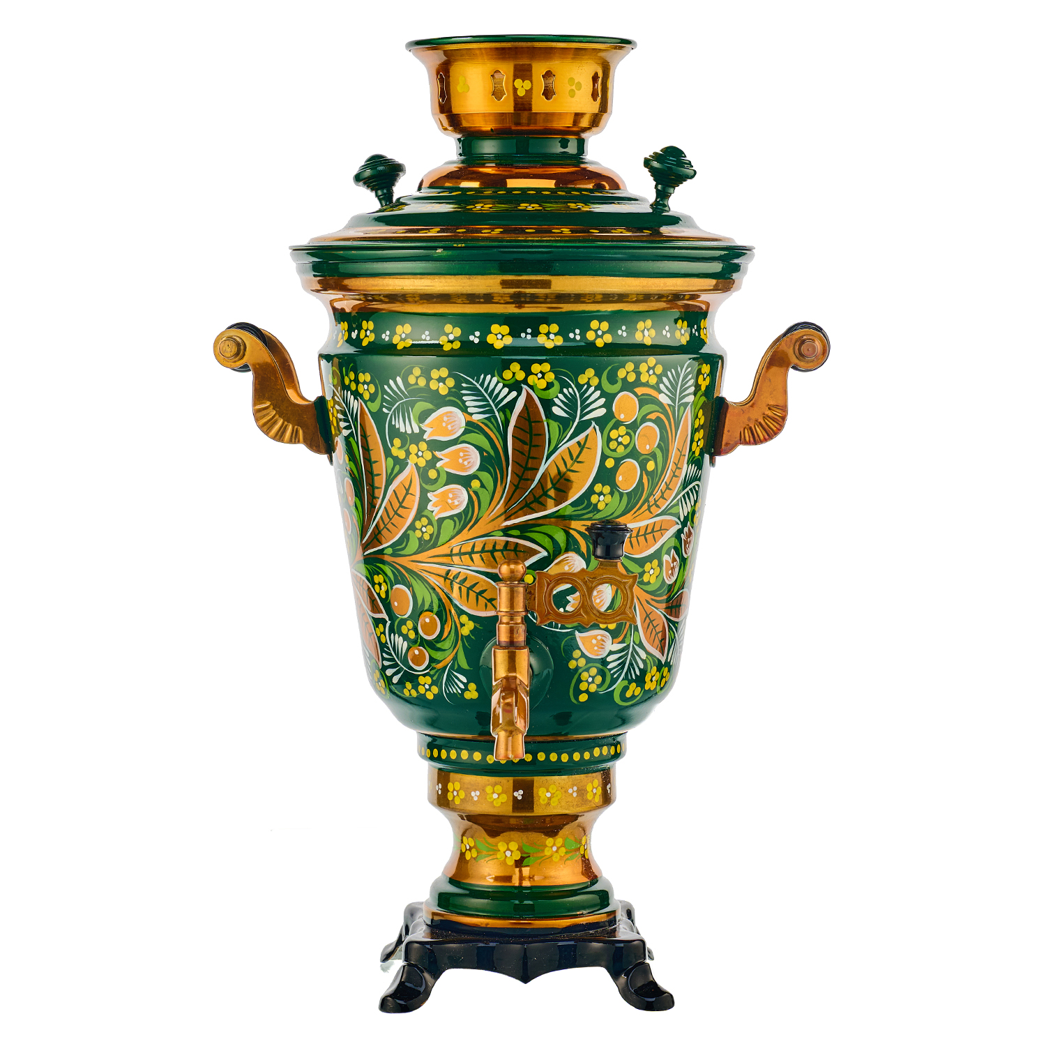 Самовар электрический 4 л с сервизом "Ландыш". Хохлома.Материалы: латунь, фарфор, краски, лак.