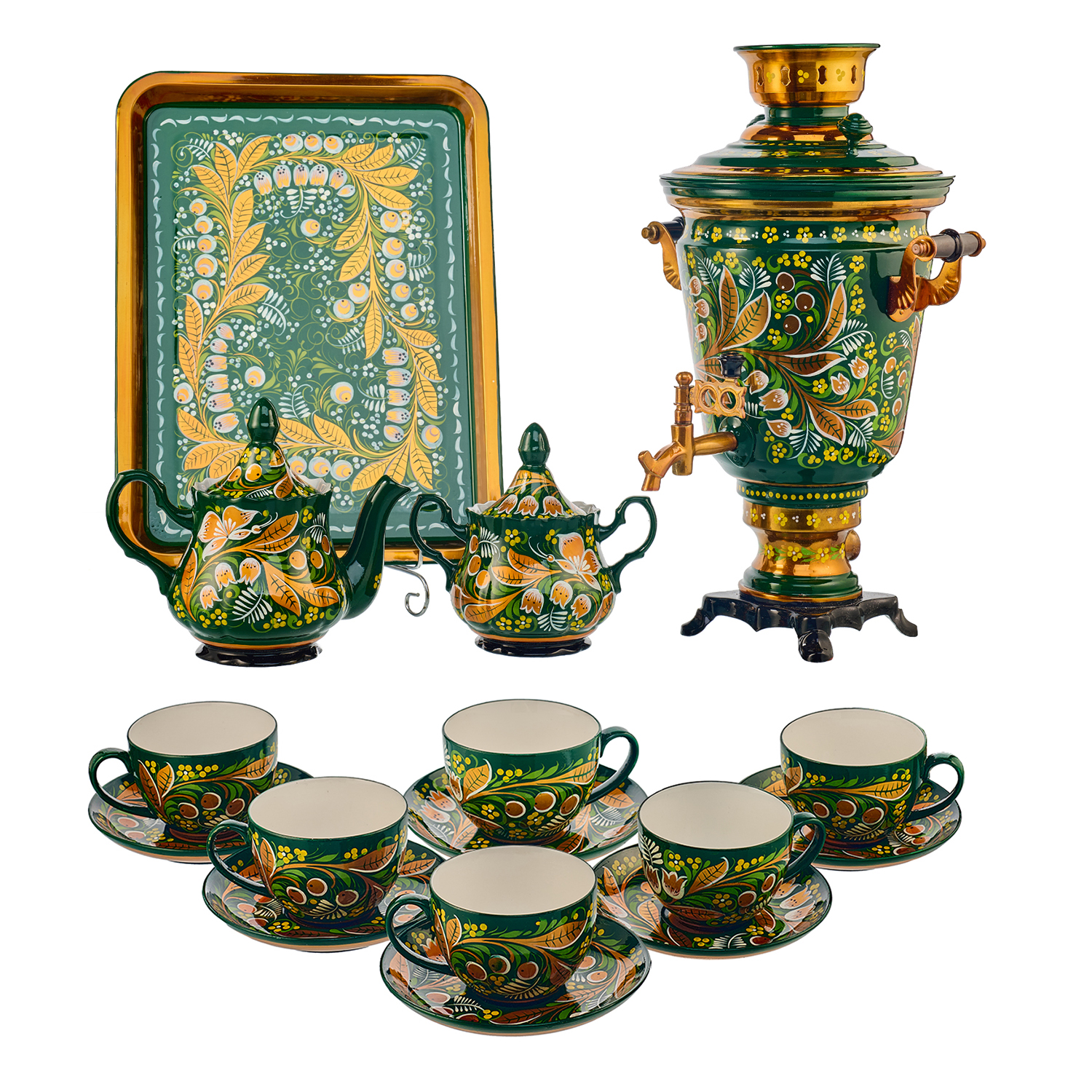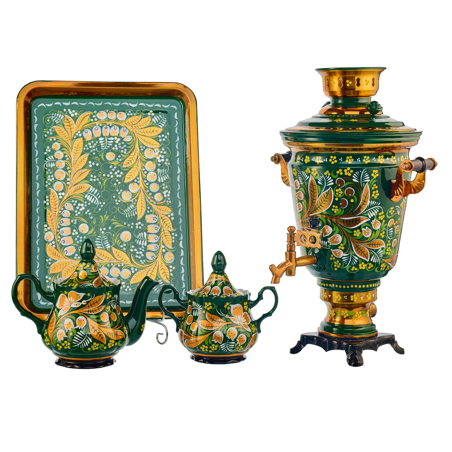 Самовар электрический 4 л с сервизом "Ландыш". Хохлома