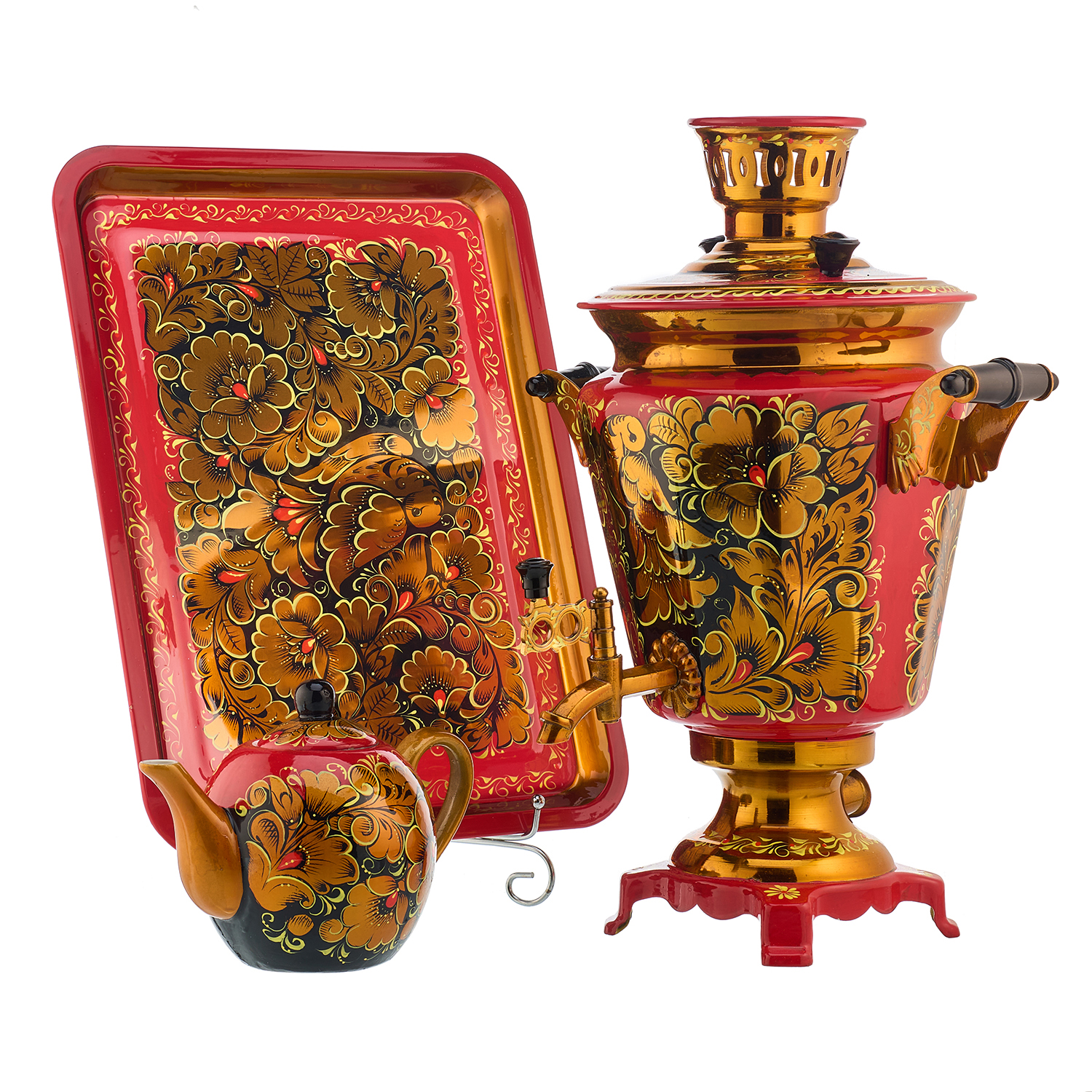 Самовар электрический 4 л "Кудрина". Хохлома