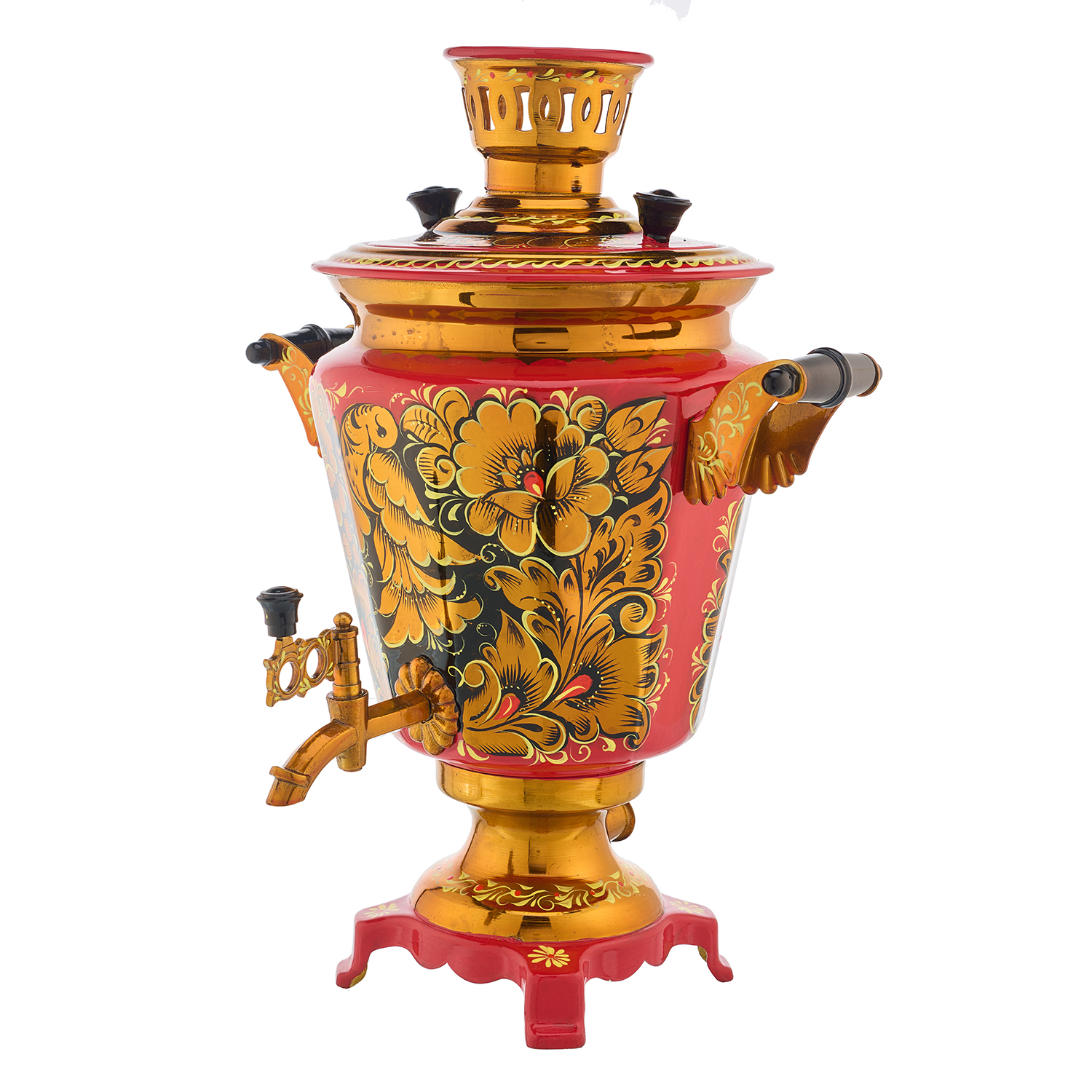 Самовар электрический 4 л "Кудрина". Хохлома.Материалы: латунь, краски, лак.